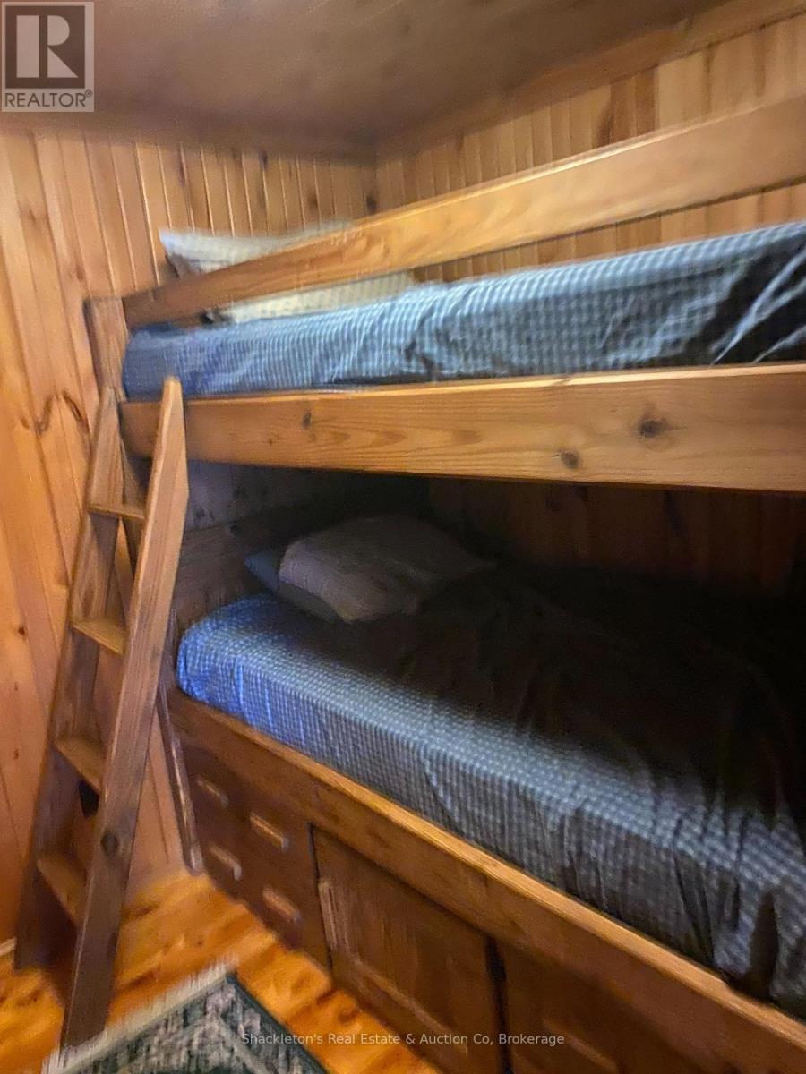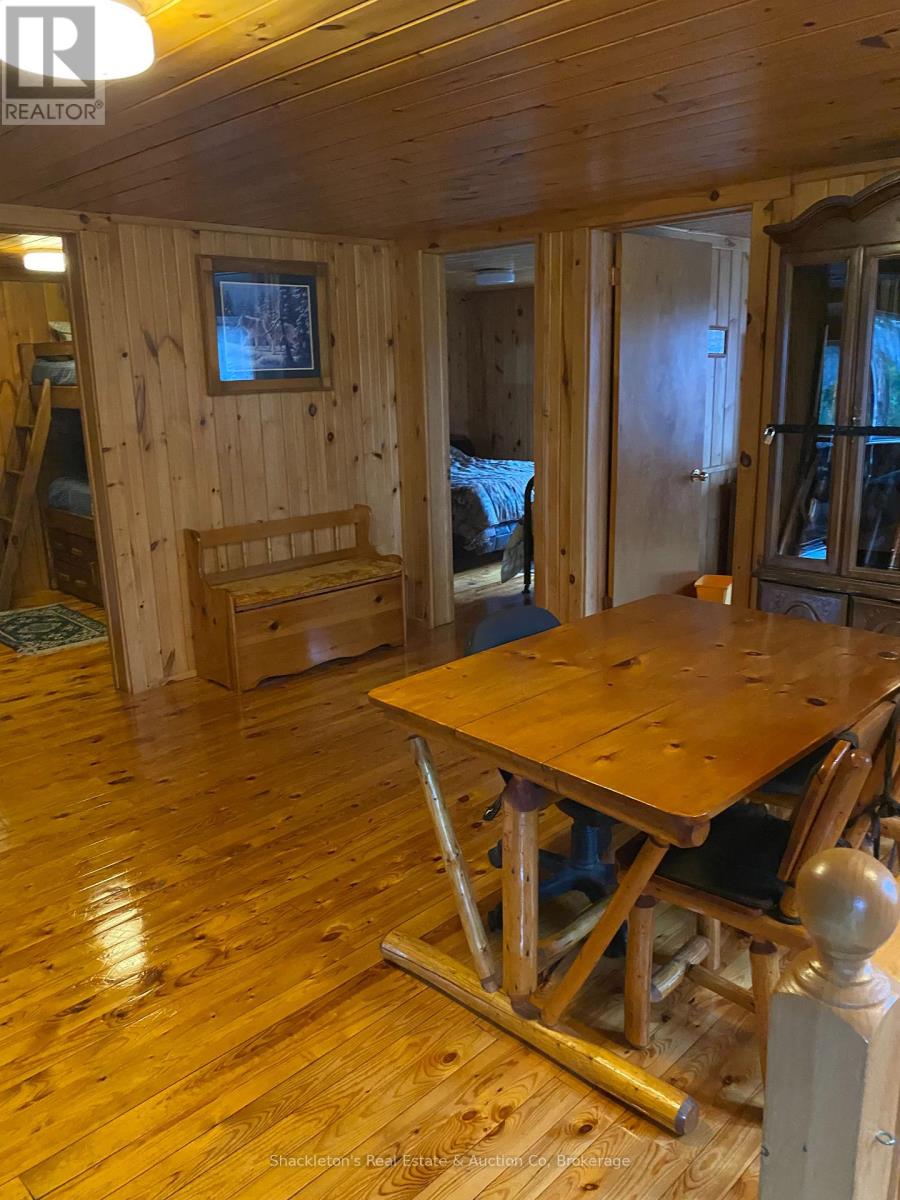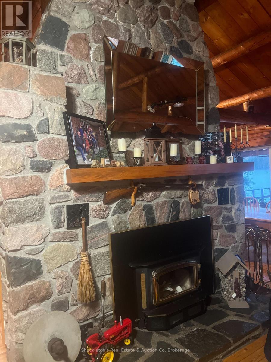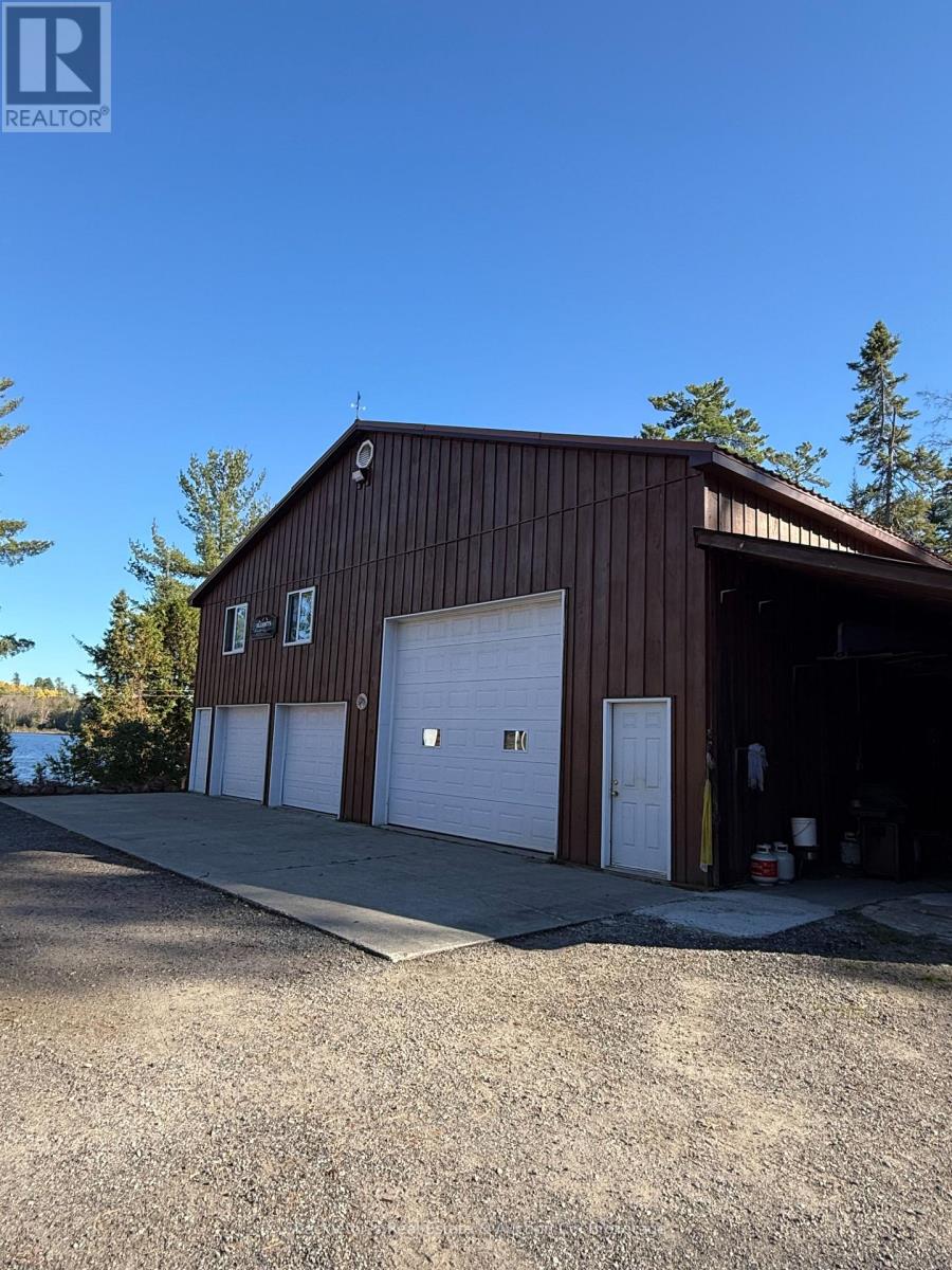 Stunning Log Home on Marten Lake! The Ultimate Northern Getaway. Welcome to your dream retreat on the crystal clear shores of Marten Lake. This beautifully crafted log home blends rustic charm with modern comfort and is the perfect setting for family escapes, entertaining, or a high demand Airbnb rental. The main log home features one spacious bedroom, beautiful stone wood fireplace and has been updated with all new appliances in 2025, offering modern convenience in a warm, rustic setting. Just steps away, a separate bunkie with six additional bedrooms provides exceptional guest accommodations and will be sold fully furnished, making it completely turn-key for rentals or extended family stays. A standout feature of this property is the impressive multi-bay garage, providing abundant storage for vehicles, ATVs, boats, and snowmobiles, plus extra space ideal for a greenhouse, workshop, or hobby area. Outside, you'll fall in love with the breathtaking lakefront setting. Enjoy peaceful mornings and golden sunsets from your private dock, complete with Adirondack chairs overlooking the water. After a day of exploring, unwind in your sauna and hot tub, the perfect way to relax in every season. With snowmobile trails nearby, this is a true four-season paradise: swim, boat, fish, hike, sled, and enjoy nature year round. Whether you're seeking a private family getaway, a retreat property, or a top tier short term rental investment, this Marten Lake gem offers unmatched charm, space, and lifestyle. (41687346)