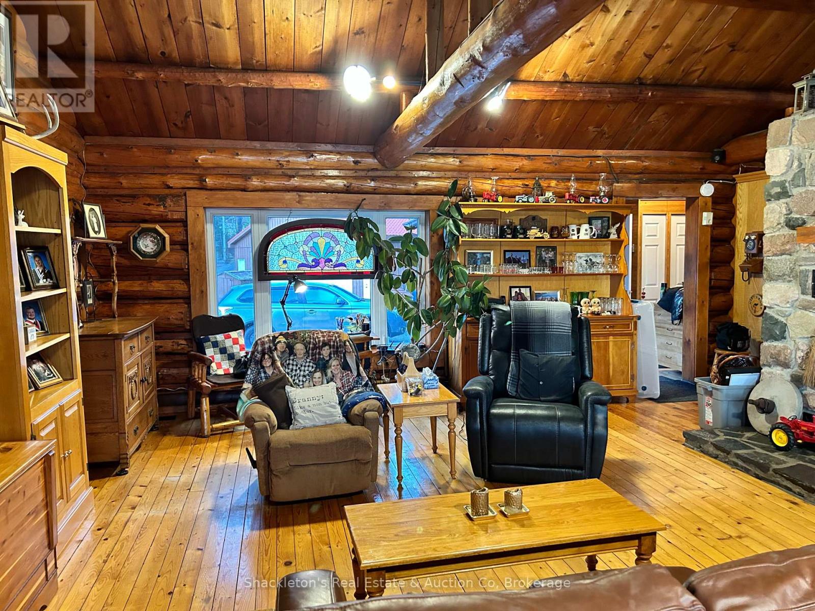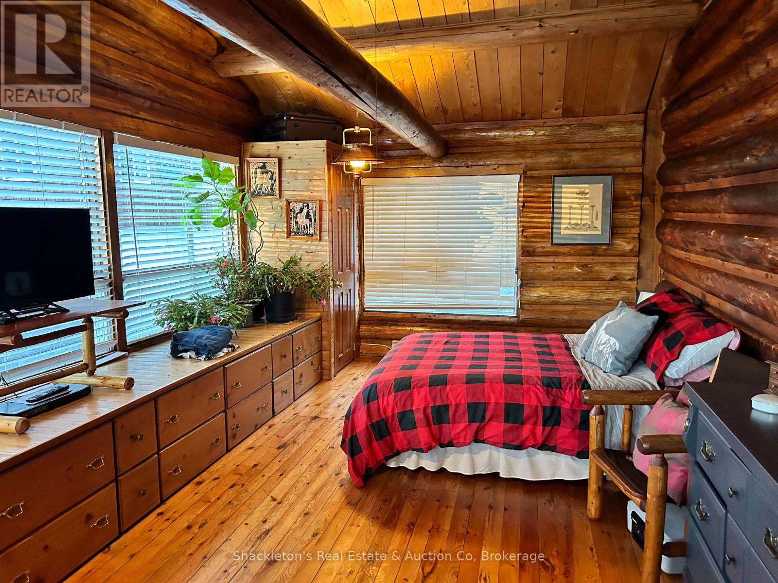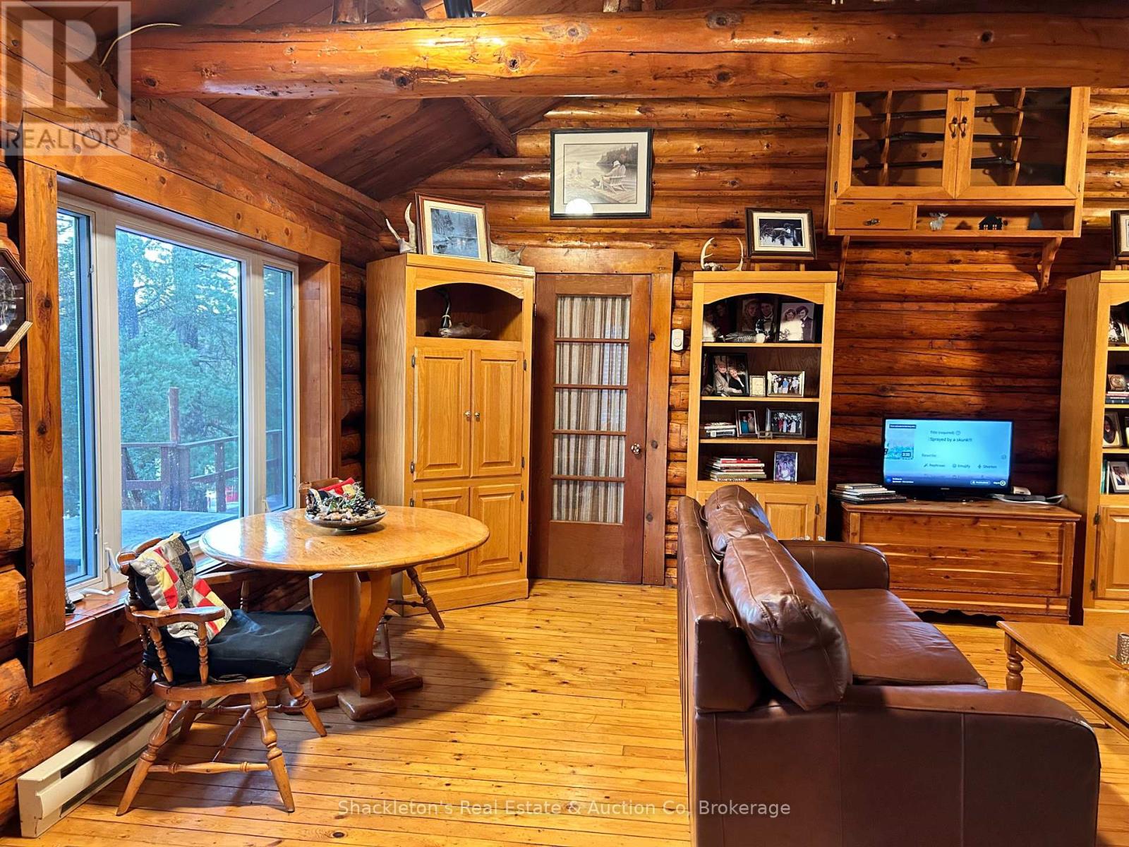 Stunning Log Home on Marten Lake! The Ultimate Northern Getaway. Welcome to your dream retreat on the crystal clear shores of Marten Lake. This beautifully crafted log home blends rustic charm with modern comfort and is the perfect setting for family escapes, entertaining, or a high demand Airbnb rental. The main log home features one spacious bedroom, beautiful stone wood fireplace and has been updated with all new appliances in 2025, offering modern convenience in a warm, rustic setting. Just steps away, a separate bunkie with six additional bedrooms provides exceptional guest accommodations and will be sold fully furnished, making it completely turn-key for rentals or extended family stays. A standout feature of this property is the impressive multi-bay garage, providing abundant storage for vehicles, ATVs, boats, and snowmobiles, plus extra space ideal for a greenhouse, workshop, or hobby area. Outside, you'll fall in love with the breathtaking lakefront setting. Enjoy peaceful mornings and golden sunsets from your private dock, complete with Adirondack chairs overlooking the water. After a day of exploring, unwind in your sauna and hot tub, the perfect way to relax in every season. With snowmobile trails nearby, this is a true four-season paradise: swim, boat, fish, hike, sled, and enjoy nature year round. Whether you're seeking a private family getaway, a retreat property, or a top tier short term rental investment, this Marten Lake gem offers unmatched charm, space, and lifestyle. (41687346)