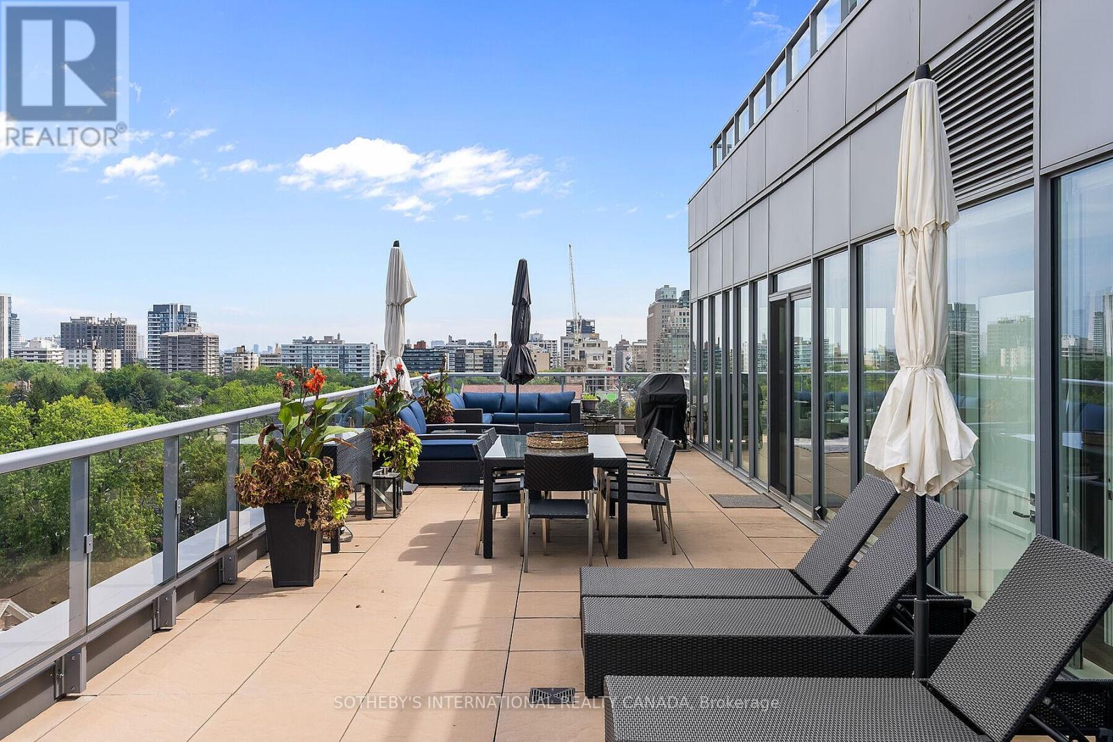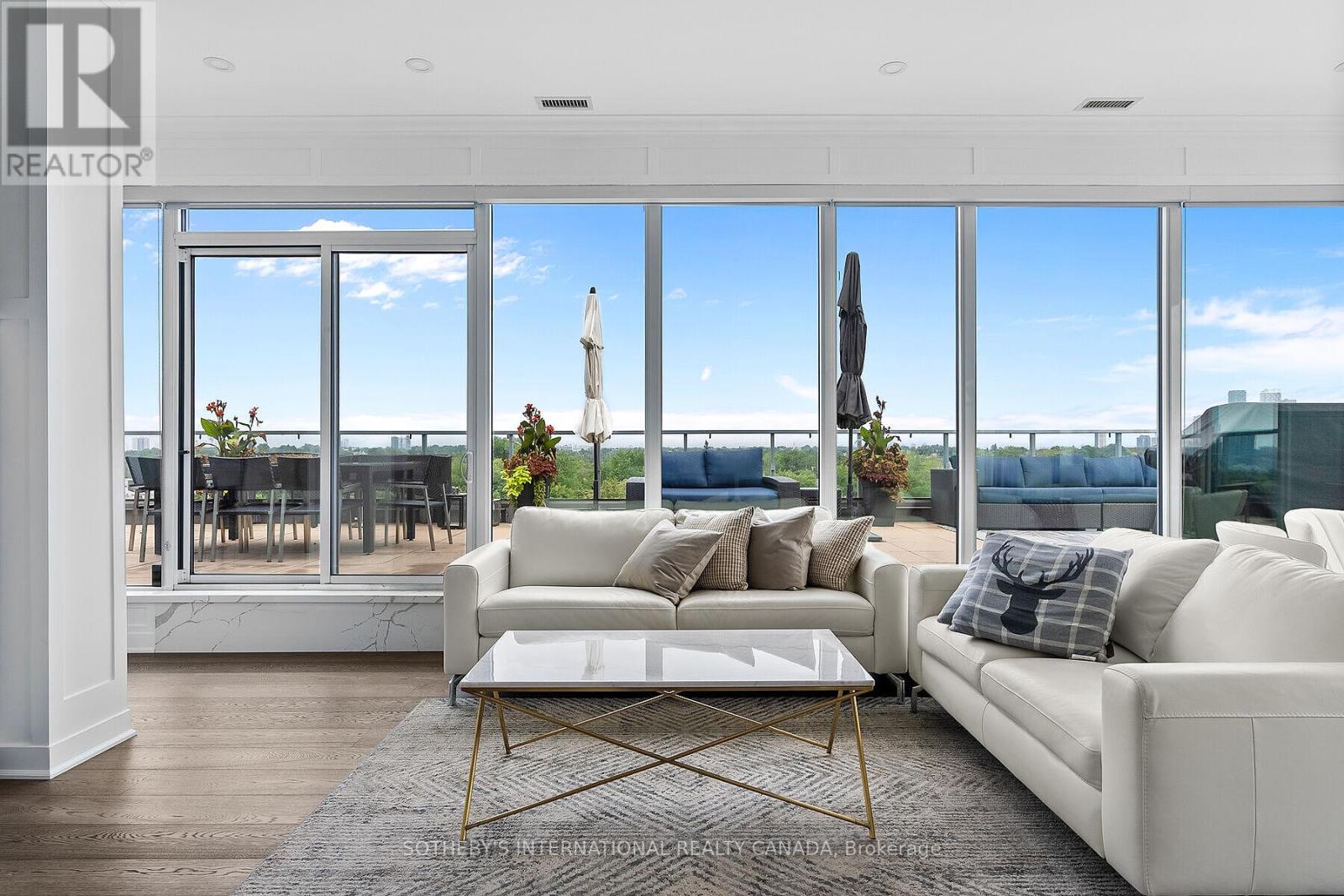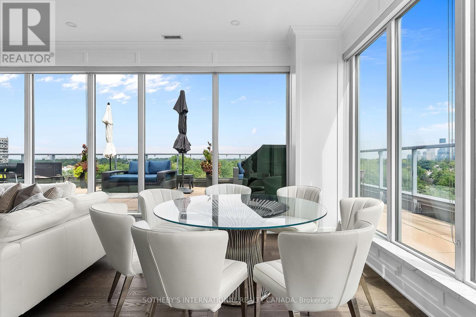 Truly one of the best terraces in Forest Hill. Welcome to the penthouse at 6 Parkwood Ave overlooking some of the most high end real estate in Toronto. This 2 bed 2 bath corner unit is flooded with natural light with 10ft ceilings and floor to ceiling windows. 1400 square feet of interior living space creates perfect flow due to the open concept living, dining, kitchen and split bedroom layout. Multiple walkouts bring you out to a jaw dropping 1400 terrace with multiple living/dining spaces, bbq, views of the CN tower and mansions of Forest Hill.Protected open views over the treetop makes for unparalelled privacy. The primary bedroom has a modern 5 pc ensuite and oversized walk-in closet. No need to lift a finger after moving in because this unit comes fully furnished! (41687593)