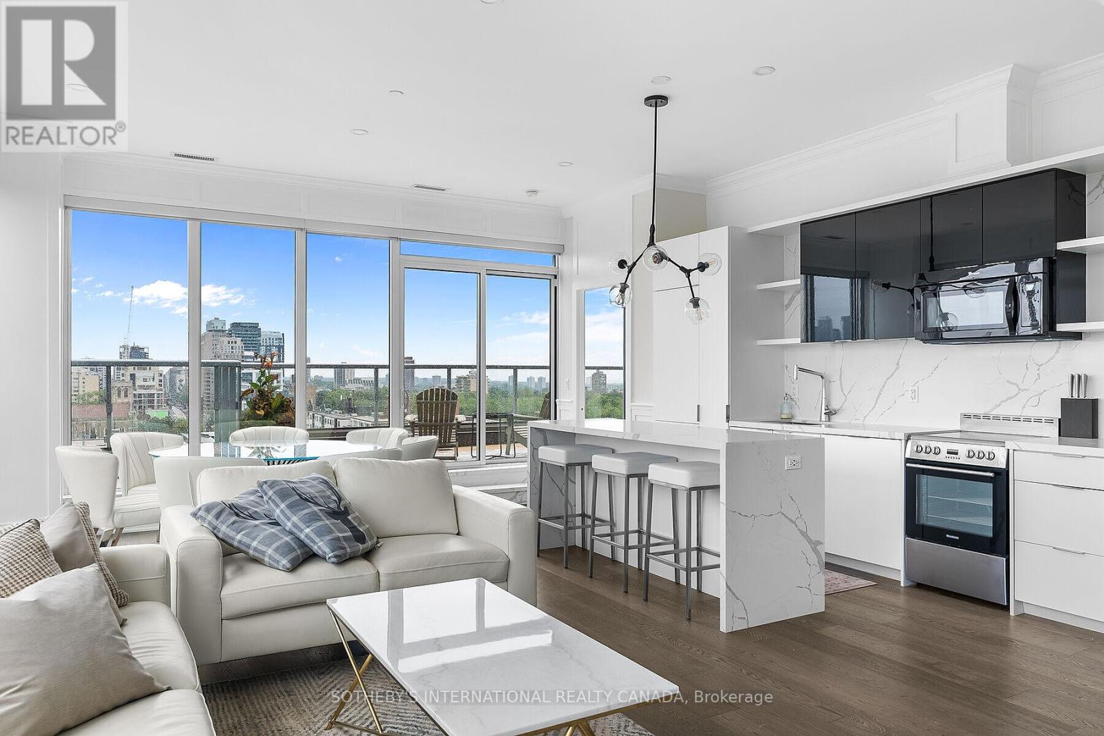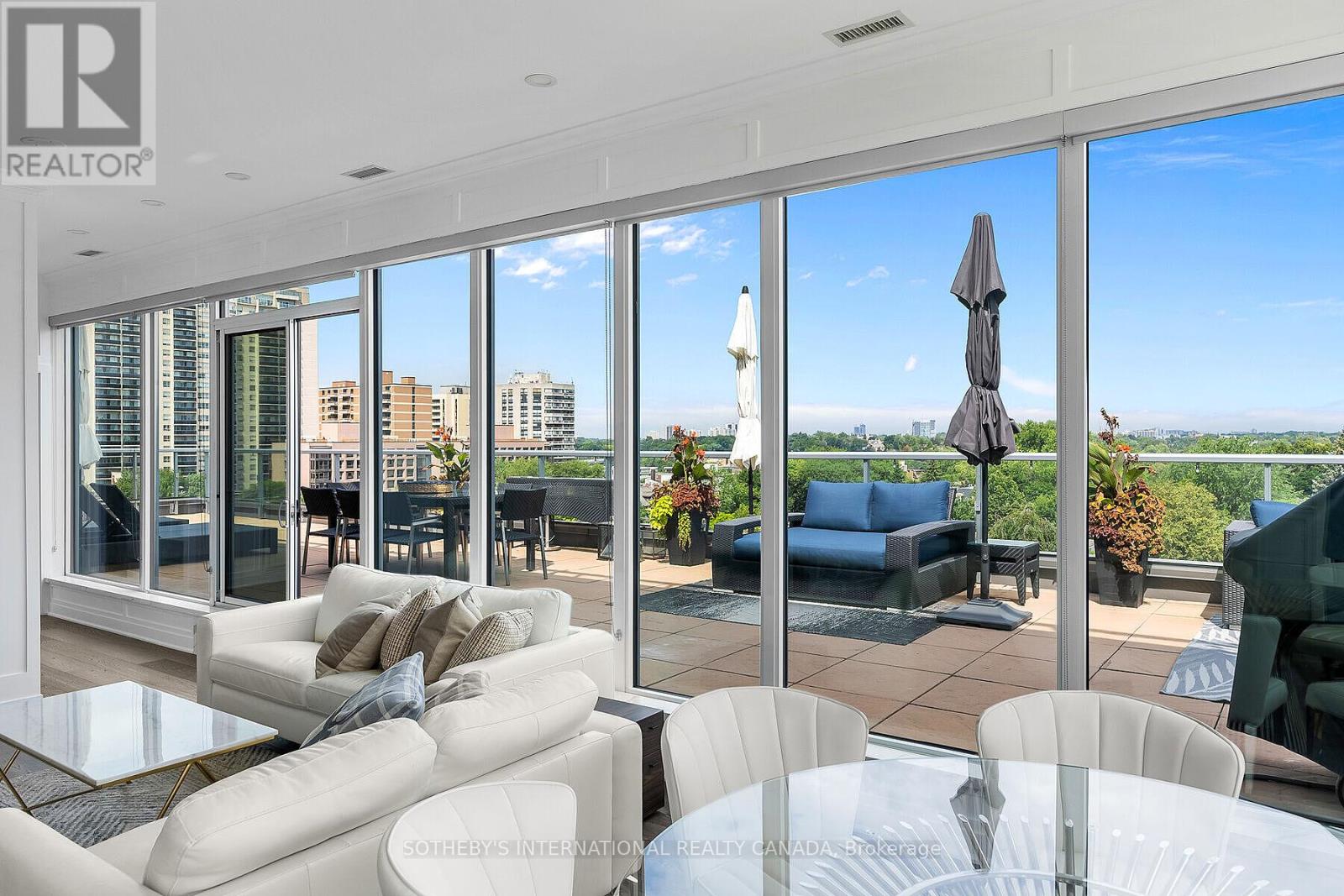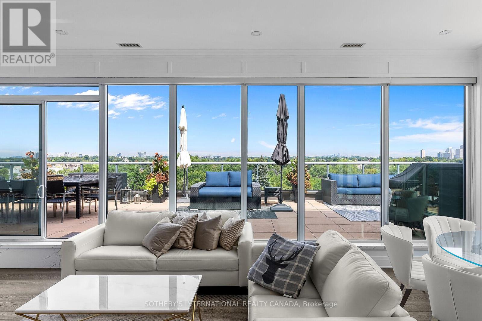 Truly one of the best terraces in Forest Hill. Welcome to the penthouse at 6 Parkwood Ave overlooking some of the most high end real estate in Toronto. This 2 bed 2 bath corner unit is flooded with natural light with 10ft ceilings and floor to ceiling windows. 1400 square feet of interior living space creates perfect flow due to the open concept living, dining, kitchen and split bedroom layout. Multiple walkouts bring you out to a jaw dropping 1400 terrace with multiple living/dining spaces, bbq, views of the CN tower and mansions of Forest Hill.Protected open views over the treetop makes for unparalelled privacy. The primary bedroom has a modern 5 pc ensuite and oversized walk-in closet. No need to lift a finger after moving in because this unit comes fully furnished! (41687593)