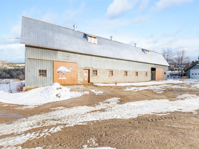 St-Urbain (Capitale-Nationale): Located on 23.77 acres of land bordered by the Gouffre River, this emu farm, unique in Quebec, offers an exceptional business opportunity. It includes a modern economuseum with a shop, terrace, and processing room, a large livestock building, a garage, pens, a cottage near the river, and a private sandpit. The land, which has been naturally enriched for 50 years, offers strong agricultural potential. Possibility of acquiring the neighboring house with guesthouse. (see listing 25069603). GST/QST must be added to the asking price (43170739)