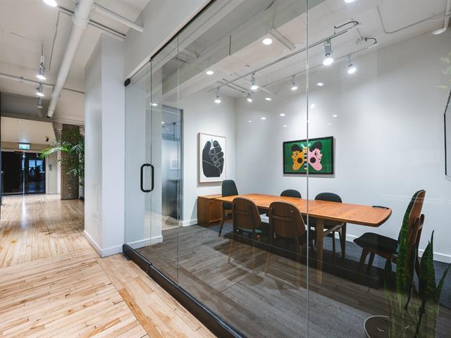 Turnkey office space for sublease, recently renovated with a large kitchen (including a range oven with ventilation), multiple meeting rooms and primarily open work stations. Featuring a modern build-out with extensive glass which allows natural light to permeate the space. Ideal for tech companies looking for a creative and innovative workplace. Located steps from Place-des- Arts and McGill metro stations, surrounded by a wide range of amenities, cafés, and restaurants. Lease expires November 30th, 2027. Furniture available for sale. 2 interior parking spots available at $295/stall/month. GST/QST must be added to the asking price (53101658)