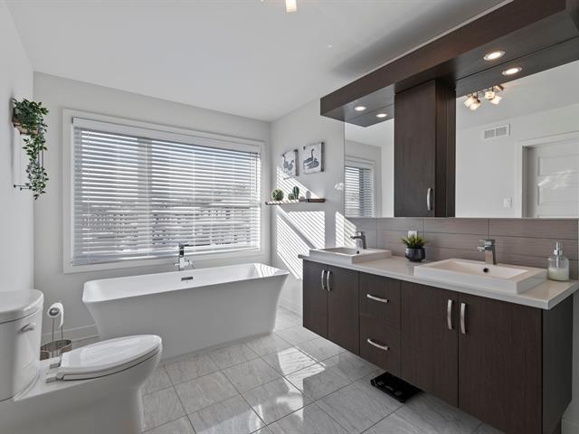 Modern 2018 townhouse in sought-after Notre-Dame-de-L'Île-Perrot, backing onto a beautiful forest with no rear neighbours. This bright 3-bed, 2.5-bath home features wood floors throughout, an inviting open concept layout, a finished basement, and a single garage. The fully fenced yard offers privacy and a peaceful natural setting. Ideally located near John Abbott College, golf courses, daycares, schools, parks, marinas, the commuter train, and outdoor trails. (41160644)