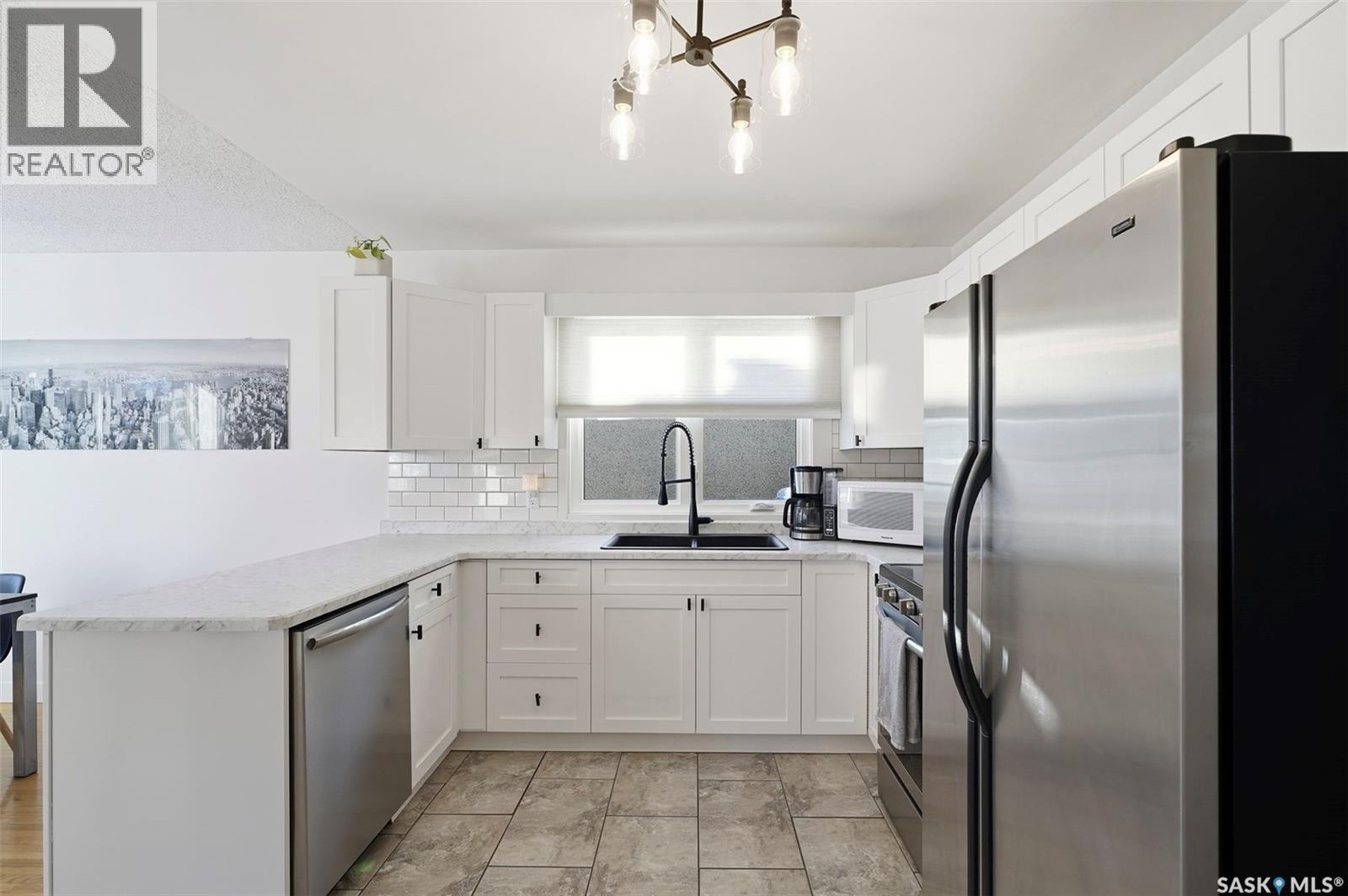 If you’ve been waiting for a bungalow with character, updates, space, and options, this Holliston home might be exactly what you’ve been hoping for. Set on a quiet crescent and sitting on a generous lot, this 1,230 square foot bungalow offers room to grow, room to work, and room to relax in one of Saskatoon’s most established neighbourhoods. Step inside and you’re welcomed by a bright, open living room where original hardwood floors and large windows make the space feel warm and inviting. The main floor windows were all replaced in 2023, so you get the charm without compromising efficiency. The refreshed kitchen, completed in 2024, brings a modern touch with new cabinet fronts, a new countertop, and updated appliances that make cooking feel easy and enjoyable. Down the hall, you’ll find three comfortable bedrooms and a beautifully redone bathroom completed in 2022. If you work from home or love a seamless indoor to outdoor flow, the third bedroom is a standout because it opens directly onto the new back deck added in 2024, complete with a hot tub that is ready for you at the end of a long day. If you’re someone who values flexibility, the two bedroom non conforming suite downstairs opens up endless possibilities. Renovated in 2018 and featuring a separate entrance and its own laundry, it’s perfect for extended family, guests, or rental income. You’ll also appreciate the single attached garage and the double detached garage, ideal for hobbyists, storage, or anyone who needs extra outdoor space. Recent upgrades such as the new hot water heater in 2023, new shingles in 2022, and new garage door in 2018 mean you can settle in with confidence. This is a home that has been cared for, improved over time, and designed to fit real life. If you’re looking for a place that offers comfort, versatility, and a location that truly feels like home, this bungalow is ready for you. (29150574)