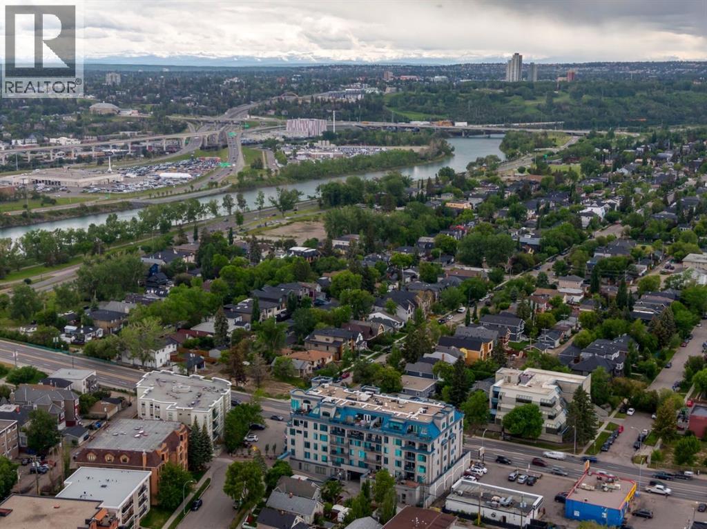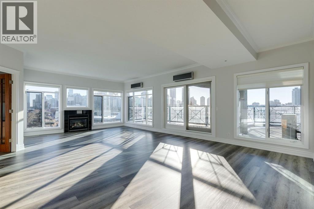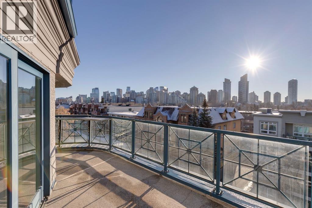 This is a rare opportunity to live in luxury on the quiet east side of the desirable Kensington Mews complex with panoramic DOWNTOWN VIEWS! Make your home in one of Calgary's trendiest communities - stroll the river pathways just outside your door and enjoy some of Calgary's best restaurants and locally owned businesses right in your neighbourhood! The 5th and 6th floors of Kensington Mews were built as the executive levels in this building with fewer units per floor, solid-core doors, 10' ceilings, air conditioning and luxury kitchens - unit 506 is the only true sub-penthouse unit with 1,900 square feet of living space and a wrap-around deck. Sunlight streams in through the wall-to-wall south & east windows, creating an energizing feeling in this high end unit. With brand new flooring & paint, this unit is fresh and move-in ready. Open concept living gives opportunity for multiple furniture layouts and plenty of space to entertain - go ahead and show off! The kitchen features solid wood cabinetry, thick granite, gas cooktop, wall oven, under-cabinet lighting and fantastic storage. The living & dining areas bask in natural light and have a gas fireplace to stay cozy all winter. The primary suite is a place to indulge - literally larger than some new-build condos today (!) and featuring custom built-ins in the walk-in closet, spacious full ensuite and enough space for any size of bedroom suite. Create a reading nook or home office beside the 2nd gas fireplace and enjoy direct access onto the balcony right from your bedroom. On the opposite site of the suite, you will find the 2nd bedroom and full bath along with a flexible space that could be a beautiful home office - but remove the built-ins and you would have a rare 3rd bedroom! One thing that is truly not lacking with this home is storage - not only is there an oversized laundry room/pantry with 2nd fridge, there is a back storage room with freezer as well as TWO STORAGE LOCKERS downstairs including one private ro om immediately adjacent to your TWO TITLED PARKING STALLS. This quiet CONCRETE building also offers visitor parking, secure bike storage room and optional gym access ($240/year). Pet-friendly with no weight restriction! The location of this building cannot be overstated with a 96 walk score and 99 bike score! Kensington offers groceries, cafes, restaurants, local movie theatre, boutique shopping as well as beautiful tree-lined residential streets and a quiet feel. Getting into downtown or west to the mountains is a breeze from this spot. (31400930)