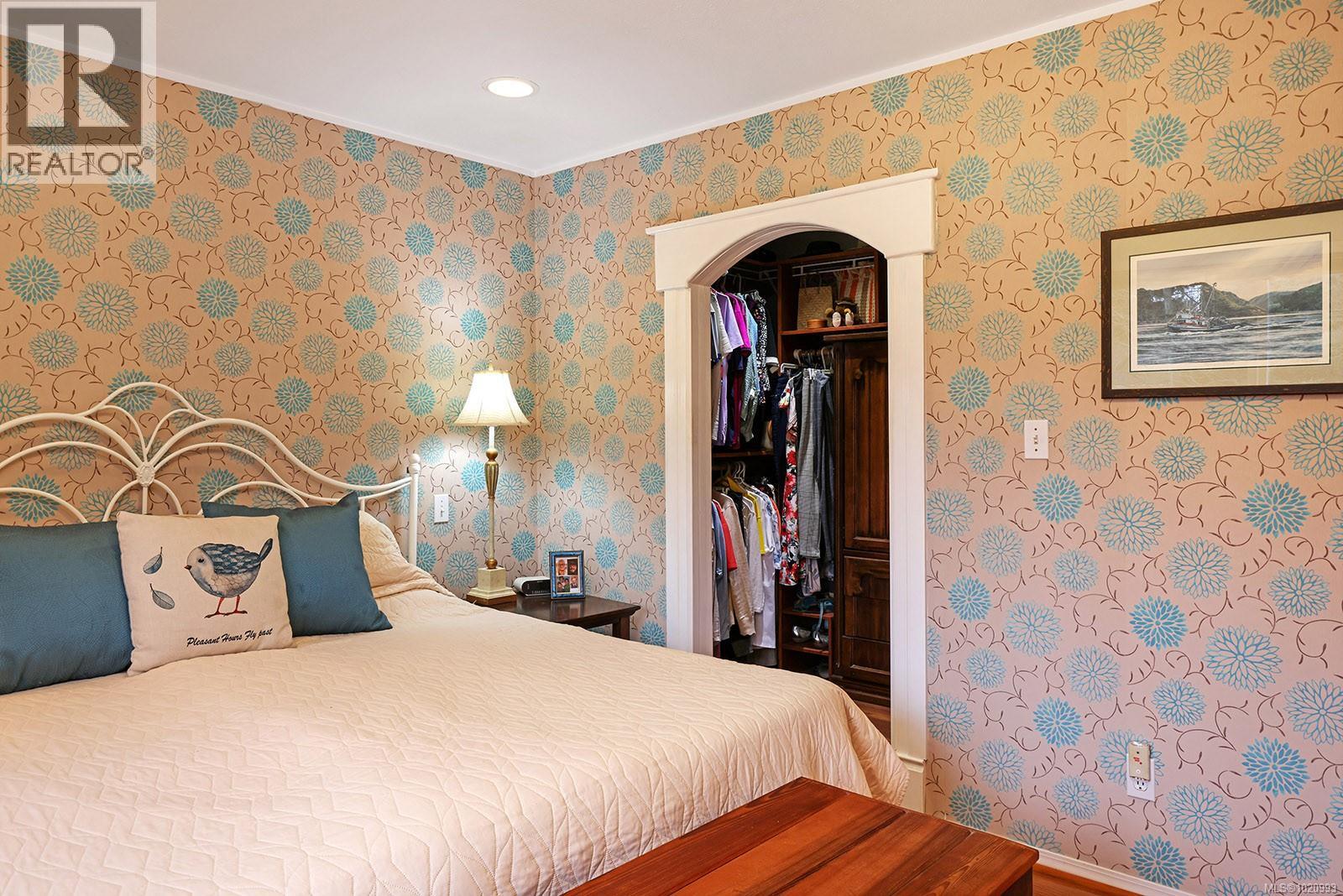 Expansive views of the Beaufort Mtn Range, and south to the Comox Harbour. A fantastic floor plan w/ main living on the upper level to capture the views, and a private in-law suite on the lower level. The Great room boasts a split heat pump for efficient heating & A/C, cozy gas fireplace, gleaming hardwood flooring, large picture windows, a slider w/ built-in blinds, a full width deck & 2 yr old electric awning. The kitchen renovation created a well-designed space w/ a full pantry, s/s appliances, gas range, live edge bar w/ seating, quartz counters, & fantastic views! The hardwood flooring extends into the 2 bedrooms on the upper-level, one with a Murphy bed, and the primary offers a walk-in closet & 4 pce ensuite. The lower level is ideal for a family in-law suite w/ a spacious family room, bedroom, 4 pce bath and kitchenette. Easy access to the covered patio, fenced yard, raised beds, shed, figs, plums & hazelnuts! Fabulous water feature & low maintenance river rock landscaping. (30150788)