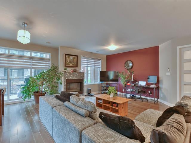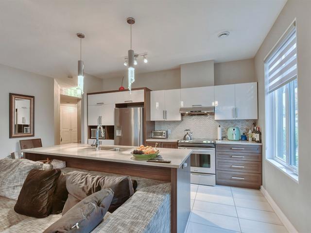 Splendide condo situé au 1er étage et aménagé avec un style contemporain et moderne dans le quartier Chambéry à Blainville. À seulement cinq minutes de l'autoroute 15 et de tous les services, son emplacement est exceptionnel. L'unité offre une cuisine fonctionnelle à aire ouverte avec îlot en quartz, un salon spacieux avec foyer au gaz et deux portes-patio doubles, deux chambres dont une principale avec walk-in, salle de bain attenante et porte-patio, une deuxième salle de bain complète ainsi qu'une salle de lavage. Plafonds de neuf pieds, deux stationnements intérieurs, rangement et grand balcon vitré. (57415009)