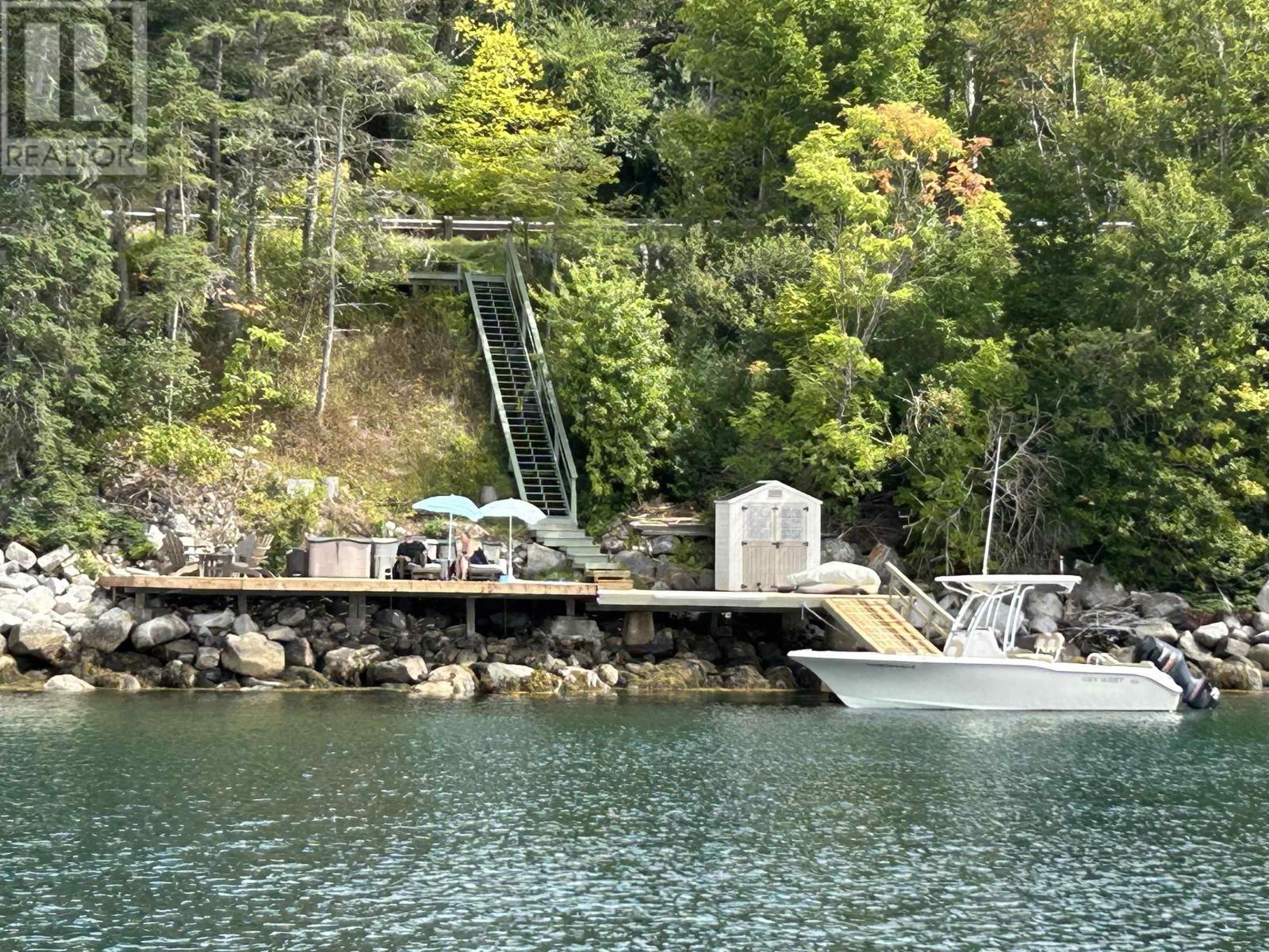 Cedar home, breathtaking water view, and enviable water access with fully developed waterfront. Massive 65x25' deck (rebuilt June 2025) (accessible by landing and stairs) has ramp, float, and deep mooring for 10,000lbs plus three storage containers, shed, and natural stone fireplace. Landscaped, move-in-ready, 3-bedroom with den, 2-bath home (paved driveway) is 2000 sq ft finished inside with approx 1800 sq ft of outdoor living (main L-shaped 41x35 deck); imposing custom-built fireplace/patio-stone lounge area. Upstairs, vaulted ceilings throughout, open-concept living room/dining room/kitchen, two bedrooms (one used as den), full bath, 16 ft floor-to-ceiling living-room water view (heat pump),16 ft sun scoop, and patio door off sunken living room (handrail) (Hunter Douglas blinds). Fully renovated kitchen has soft close custom-built cabinets, crown moulding, large pantry (currently a closet), and granite countertop/glass tile backsplash. Hardwood floors throughout with waterproof vinyl planking in large bathroom with skylight, linen closet, two-sink granite countertop vanity, walk-in shower (seat, body jets, regular and handheld shower heads). Principle bedroom has vaulted ceiling, heat pump, ceiling fan, generous closet (not walk-in). Zero-clearance wood-burning fireplace (WETT certified) with blower redirects excess heat to lower level. Solid-oak stairs with handrail to lower level walkout and 15x20' deck. Unique large sunken living room, two bedrooms (one with murphy bed), large storage room, vinyl plank flooring, full bath (shower) with washer/dryer hook up and under-stair storage. New shower & flush 2025. Screened wooden casement windows original to house; vinyl screened dining room and bathroom windows and exterior doors 2025. Upstairs Hunter Douglas blinds 2025. Watershed water treatment systems 2025. Asphalt roof 2012. Unheated 20x16' cedar shed, dry, ample shelving, epoxy flooring. White resin shed. Firman dual-flow 10,000W generator, 100ft cable, & shed. (231659791)