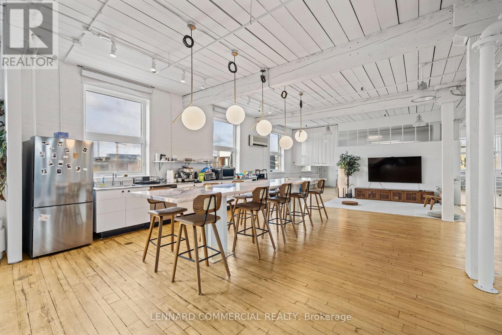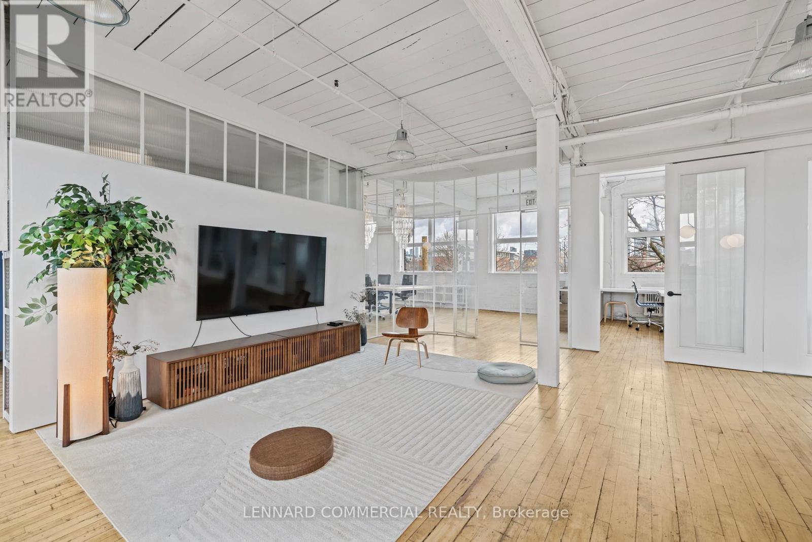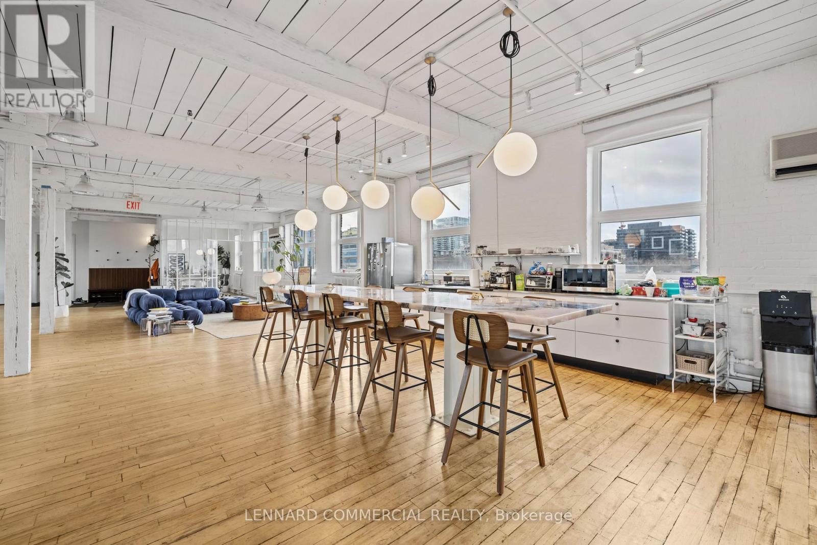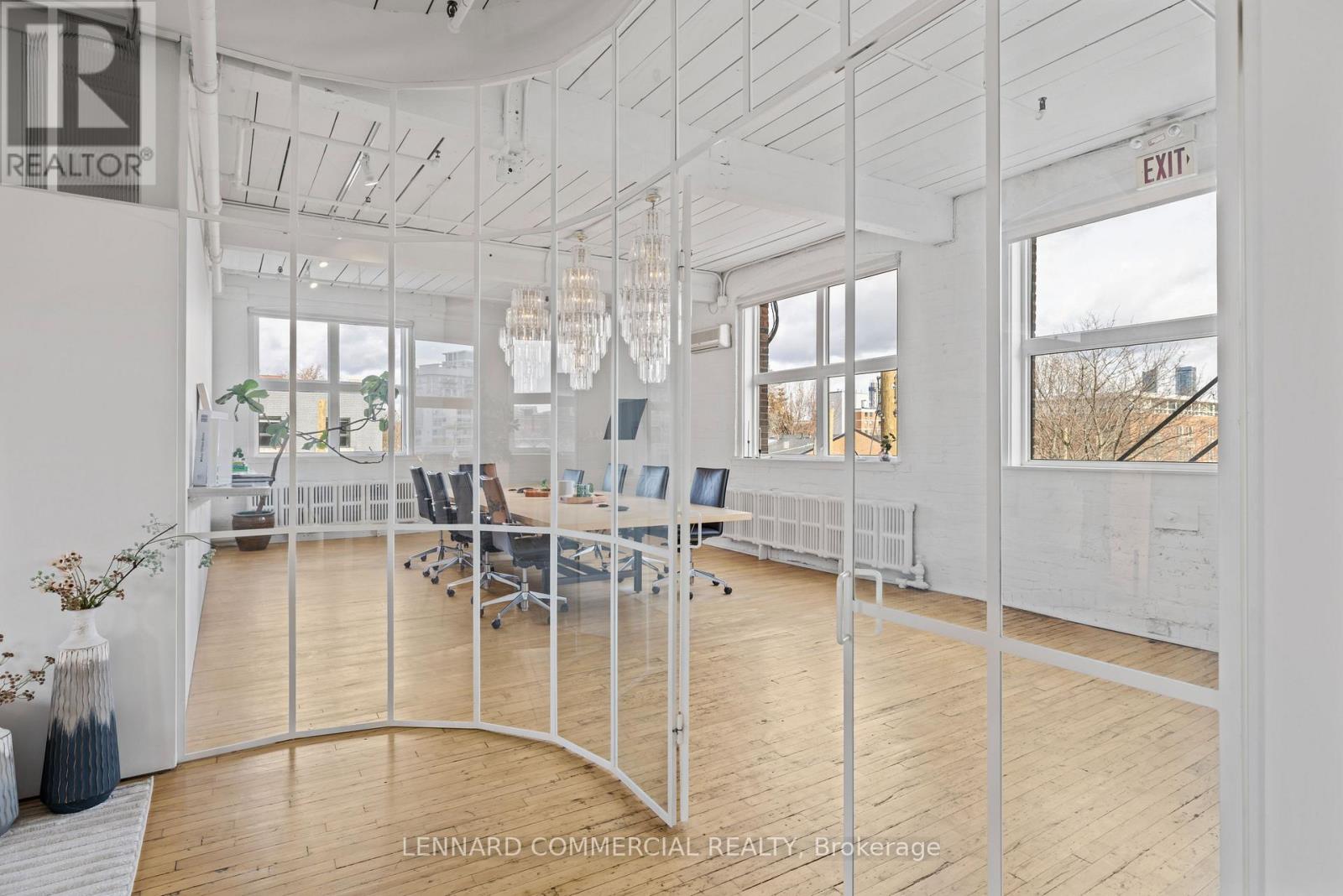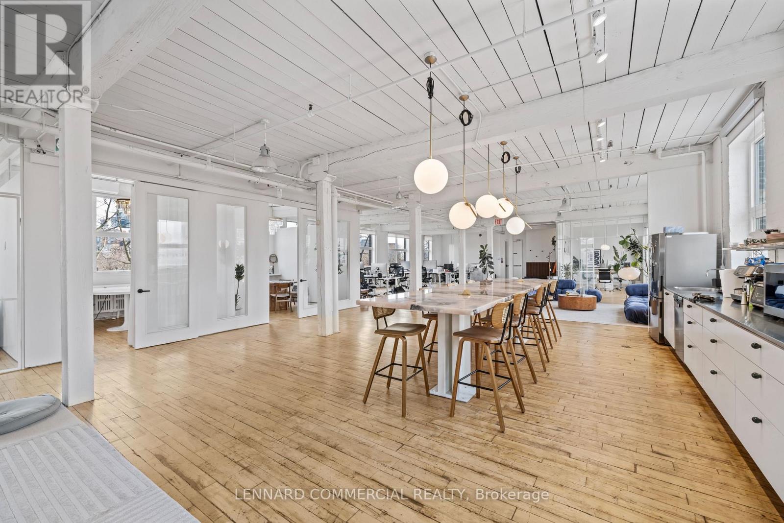 Stunning top floor! Full floor with exposed brick, wood columns and wood floors. Extremely bright space, built out with 4 meeting rooms/offices, kitchenette, private washrooms and open area. Furniture available. Available immediately, Flexible term. Steps from King Streetcar. (41703652)