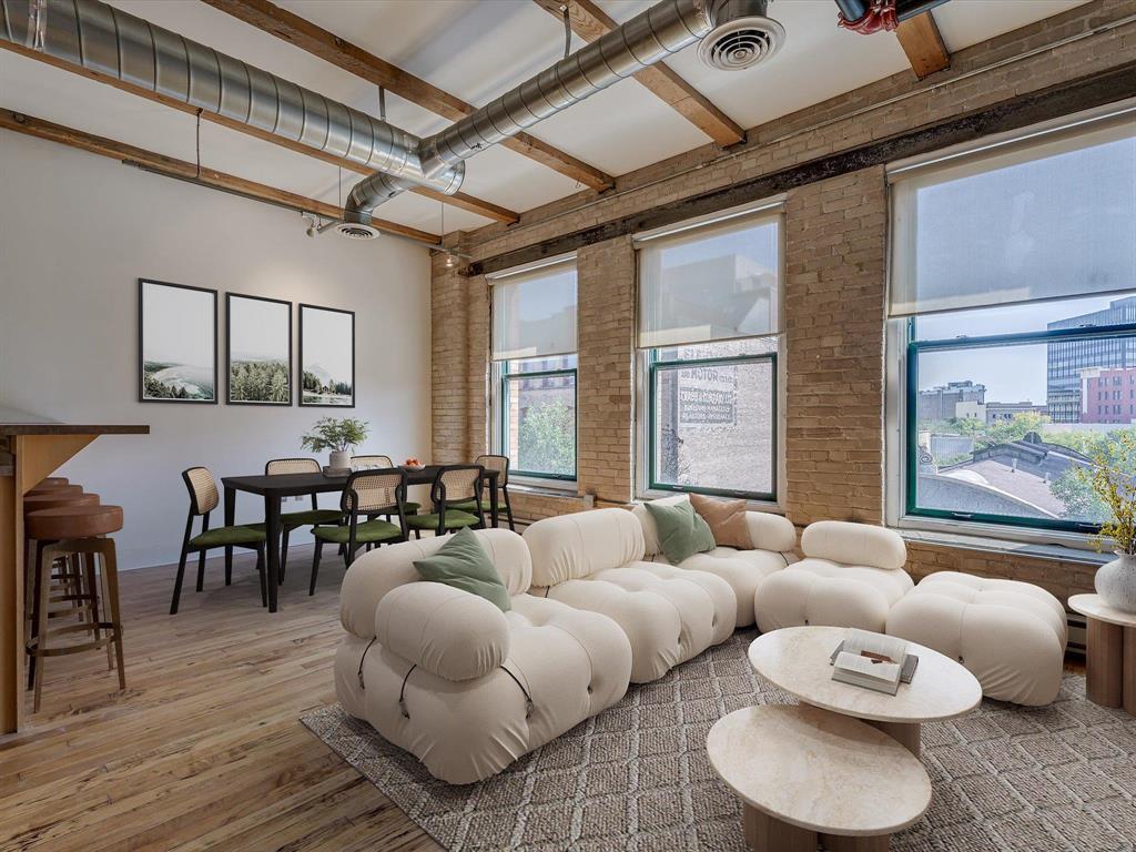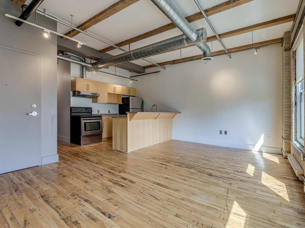9A//Winnipeg/OPEN HOUSE SAT NOV 29 1-2:30PM ll Your opportunity to live in the heart and soul of Winnipeg the lively West EXCHANGE DISTRICT! You ll appreciate all of the original character elements found within this Heritage building while enjoying the modern updates that make it livable by todays standards. This functional one bedroom condo has large windows that greet you when you first open the door and light up the open concept living area. Meal prep will be a breeze with the great counter space, bar top seating and storage found in the kitchen with included appliances (BRAND NEW STOVE + RANGE FAN). Enjoy the convenience of insuite laundry and central air conditioning! Fairchild Lofts is an amenity rich building including FITNESS ROOM, communal West facing PATIO with BBQs, indoor bike storage, storage lockers (one comes with the suite), 2 elevators and the original wood staircase! Pet friendly building (1 cat/dog or birds). This suite currently rents a TRANSFERRABLE GATED PARKING SPOT in the Indigo lot right behind for $233.10/mo. Come see why 110 Princess St is exactly where you want to be! Flexible possession available. SELLER MOTIVATED! (231660821)