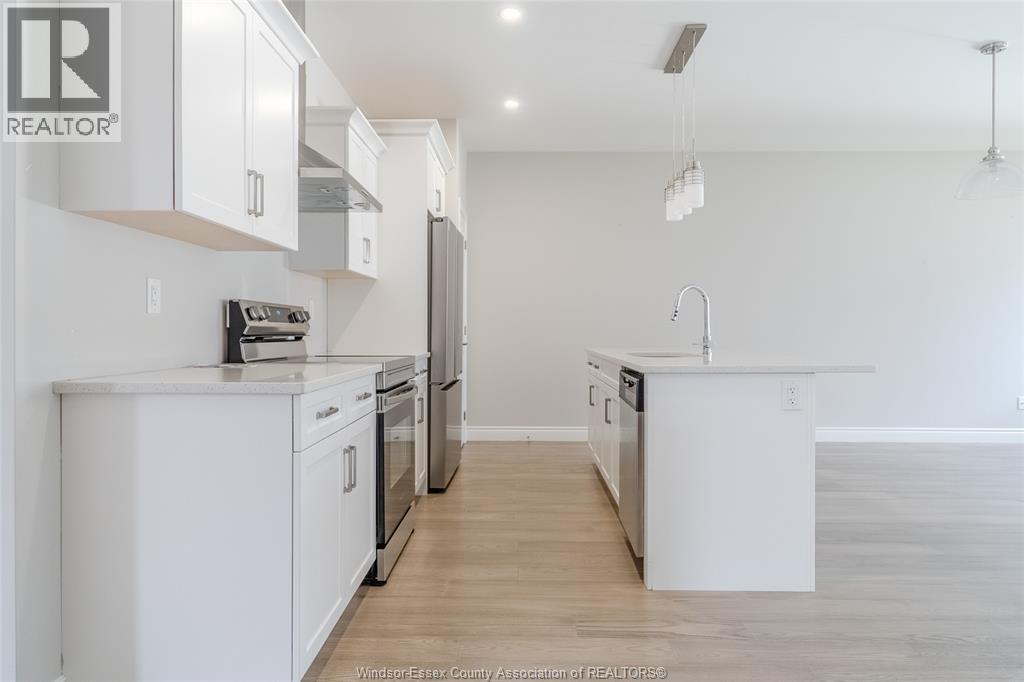 Modern Ranch-Style Freehold Townhome with Nearly 2,400 Sq Ft of Comfortable Living! Welcome to this beautifully crafted 2+2 bedroom, 3 full bathroom townhome offering a warm and inviting layout perfect for family living. Designed with a modern open-concept feel, the main floor features soaring ceilings, elegant flooring, and beautiful countertops throughout. The stylish kitchen is a true centrepiece—complete with built-in stainless steel appliances and plenty of space for cooking and entertaining. The spacious primary suite includes a walk-in closet and a spa-like ensuite. Large windows and patio doors fill the space with natural light and lead out to your covered rear porch—ideal for relaxing with family or enjoying a morning coffee. The fully finished basement offers even more space with two additional bedrooms, a full bathroom, and a versatile open-concept area perfect for a home office, guest suite, or kids’ playroom. Located in a welcoming, family-friendly neighborhood near a playground and golf course, and just a short drive from downtown Amherstburg with its charming shops, restaurants, waterfront, and entertainment. Only 20 minutes to Windsor and the U.S. border! (54162574)