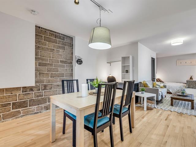 IMPECCABLE appartement en copropriété indivise de style loft offrant un coin chambre ouvert sur un vaste salon, grand walk-in, salle à manger, coin bureau et espace dînette/café. Cuisine fonctionnelle avec espace pour lave-vaisselle. Rénové récemment : portes, fenêtres, planchers, céramique, murs de pierre, salle de bains, armoires, électricité et plomberie. Unité en rez-de-jardin avec accès direct ou par l'entrée principale, stationnement à la porte, rangement, laveuse-sécheuse dans l'unité et intercom. Frais communs incluant taxes, assurances, chauffage, entretien, gros travaux, déneigement et ménage des aires communes. (56985624)