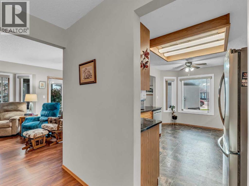 Spacious and inviting, this 1,324 sq. ft. half-duplex is located in the highly desirable, executive 55+ bareland condominium community of Park Meadows Estates. This well-kept bungalow offers a walk-out basement and backs onto the gorgeous park, providing beautiful views and a serene setting. A double attached heated garage, updated windows throughout, a newer hot water tank, a brand-new high-efficiency furnace, comfort-height toilets, and new taps allow you to simply move in and enjoy. Inside, a large front entry welcomes you into the home. To your left sits the generous primary bedroom complete with a 3-piece ensuite and walk-in shower. The kitchen features granite countertops, a newer stainless steel appliance package, and a charming nook perfect for an eat-in area, coffee bar, or bistro table. Adjacent to the kitchen is the spacious formal dining room and living room, with access to a partially enclosed, partially open deck ideal for relaxing or BBQing. Down the hall you’ll find a 4-piece main bathroom, convenient main-floor laundry, and an additional well-sized bedroom. The bright walk-out basement offers abundant natural light, a cozy gas fireplace, a wet bar, and access to a lovely covered patio area. A versatile room with a closet—perfect for a den, office, or craft room—a 3-piece bathroom, and ample storage complete the lower level. This beautifully maintained home offers comfort, convenience, and an unbeatable location. (31406330)