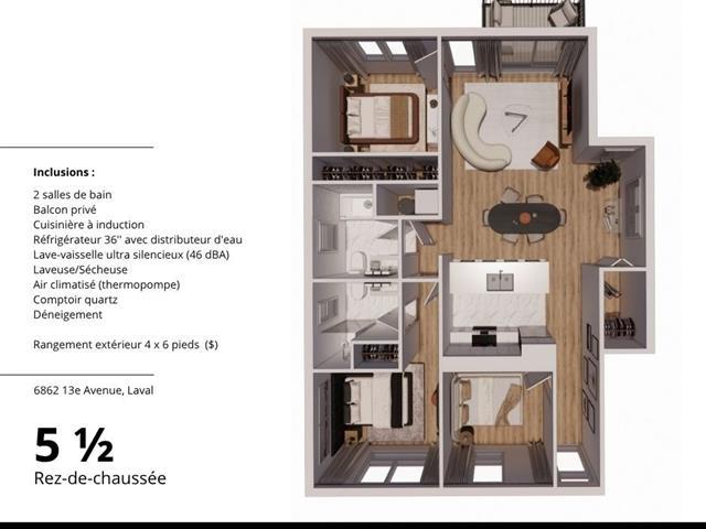 Superbe 5½ neuf dans un projet haut de gamme à Laval-Ouest. Offrant 3 chambres, 2 SDB, plafonds de 9 pi, grande fenestration, comptoirs de cuisine en quartz et électroménagers inclus (5): laveuse, sécheuse, lave-vaisselle, réfrigérateur, cuisinière. Terrasse privée, climatisation, insonorisation béton, stationnement extérieur et cabanon. À proximité de la Berge aux Quatre-Vents, des sentiers, du REM Grand-Moulin et Ste-Dorothée, ainsi que de plusieurs services. Non-fumeur, pas d'animaux. (55377609)