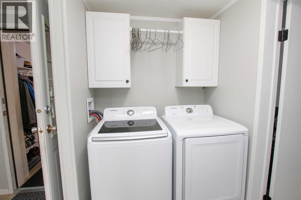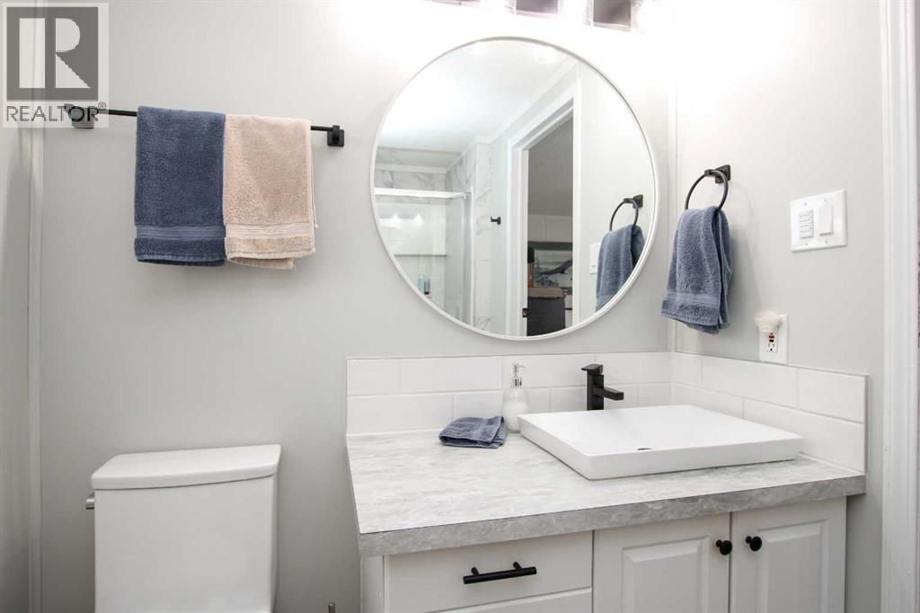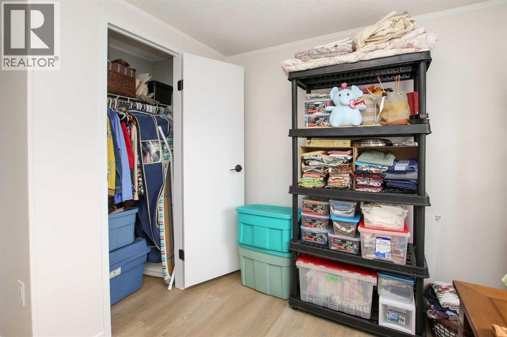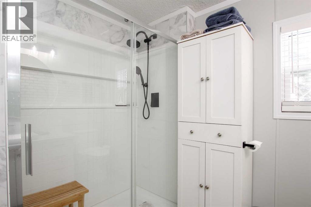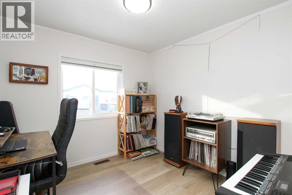 BEAUTIFULLY RENOVATED THROUGHOUT ~ 3 BEDROOMS, 2 BATHROOMS & A BONUS ROOM ~ HEATED DOUBLE ATTACHED GARAGE ~ Pride of ownership shines in this like-new home loaded with renovations including; new furnace, PEX plumbing, central air conditioning, vinyl plank flooring throughout, paint throughout, baseboards, bathrooms (toilets, sinks, faucets, tile, counter tops, shower & tub), kitchen (appliances, backsplash, faucet, sink, painted cabinets, countertops), LED lighting, ceiling fans, insulated overhead garage door, garage heater, bonus room heater, storm door, insulated skirting, heat tape and gutter (completed in 2025), shingles, 50 gallon hot water tank (2020) ~ Open concept main floor layout complemented by vaulted ceilings, vinyl plank flooring and tons of natural light creating a feeling of spaciousness ~ The living room features large windows offering natural light and overlooking the deck ~ The updated kitchen offers tons of cabinet and counter space including a large island, full tile backsplash, window above the sink, brand new stainless steel appliances, wall pantry, and a separate entry with access to the large newly built deck ~ Easily host large gatherings in the dining room with a wall of floor to ceiling windows that fill the space with natural light ~ The primary bedroom can easily accommodate a king size bed plus furniture, has a spacious walk in closet, and a spa like ensuite featuring a walk in shower with a glass door ~ 2 additional bedrooms are separated by the 4 piece main bathroom ~ Conveniently located laundry is just off the bedrooms and has built in cabinets for storage ~ The large bonus room has vinyl plank flooring, high ceilings and offers tons of space and flexibility to suit your needs (home gym, office, media room, craft/hobby room) ~ Separate entry from the bonus room (w/new storm door) leads to the fully fenced backyard with a storage shed, raised garden beds, fruit trees, and a 16' x 12' patio with a gazebo, all backing onto mature tr ees ~ Heated double attached garage has built in shelving, and an extra large driveway offering tons of parking space (snow blower included with the sale) ~ Located in the 40+ section, with awesome neighbours, and easy access to the Clubhouse with regularly scheduled activities and events ~ Secure gated RV storage available ~ Monthly lot fees are $505.00 ~ Situated minutes south of Red Deer, this home offers unbeatable convenience with a walking trail to Gasoline Alley, where you'll find a wide range of amenities, including the popular Gasoline Alley Farmers' Market, Costco, Cineplex and transit to Red Deer, with easy access to highway 2, making it an ideal location for families and commuters alike ~ Move in Ready! (31406568)