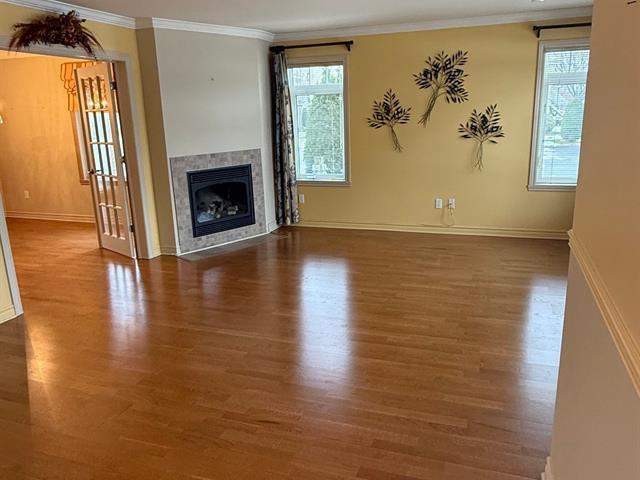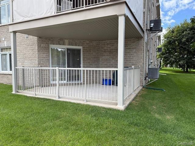 Condo rez-de-jardin, sans aucune marche à descendre, offrant un accès facile et un grand balcon/terrasse idéal pour profiter des beaux jours. Deux stationnements inclus. Vous apprécierez sa luminosité abondante, sa climatisation centrale, ainsi que le salon doté d'un foyer au gaz naturel pour un confort absolu. Deux portes françaises mènent vers la salle à manger et la cuisine adjacente, créant une transition élégante et ouverte entre les pièces.Le condo comprend 2 chambres, dont la chambre principale avec un walk-in. La salle de bain est équipée d'une douche vitrée, d'un bain néo-angulaire et d'une vanité offrant du rangement. (42334940)