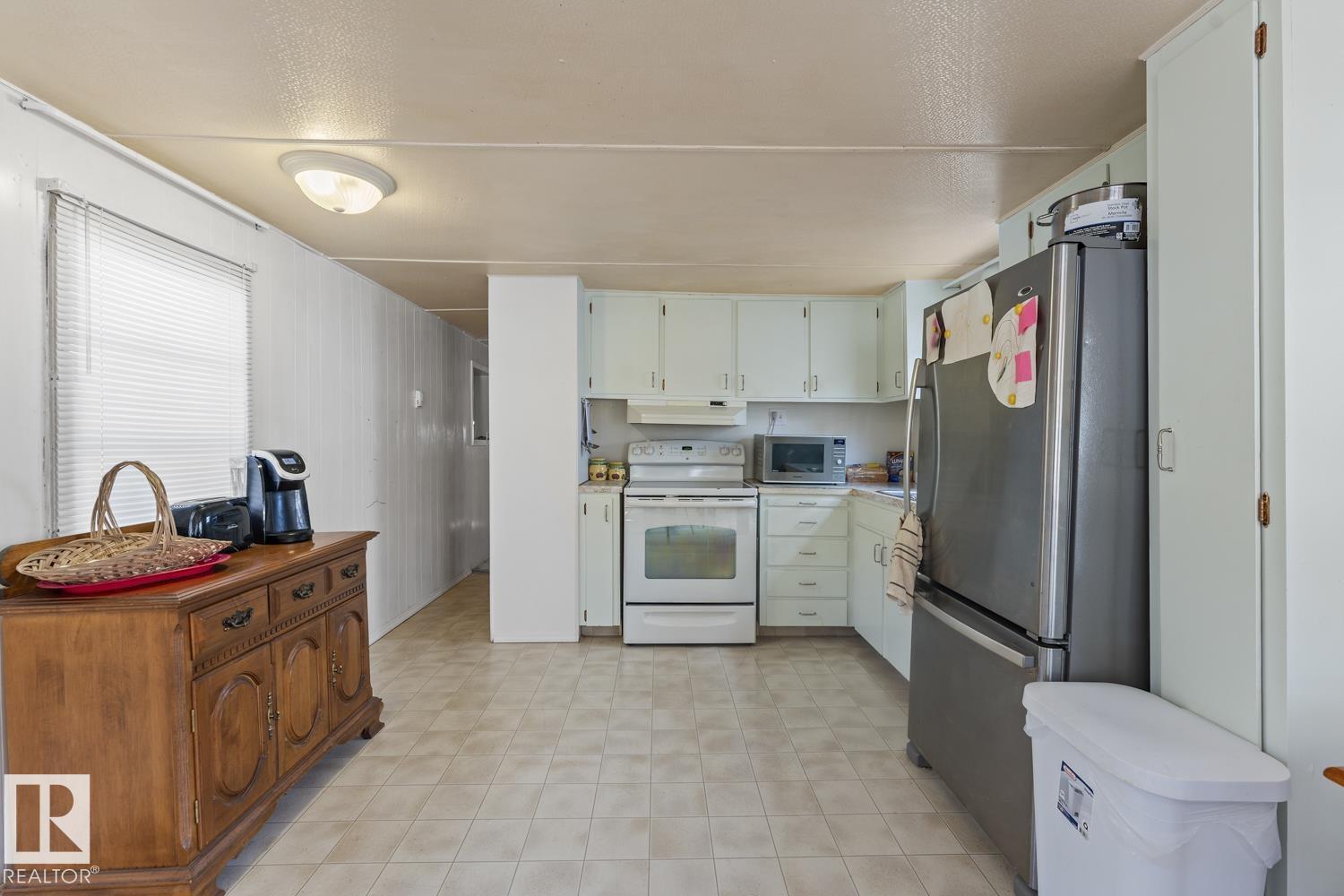 Cute and affordable home on a large lot in Cold Lake South with an oversized heated single car garage. This mobile features 2 bedrooms (with a sitting area that could be a 3rd bedroom), living room, full bathroom and spacious kitchen and dining room. There is also a gazebo off the dining room for outside entertaining. mobile has had plumbing insulated and heat traced for added comfort. Age of trailer is 1969 but can not be confirmed and no CSA sticker can be located. (33602317)