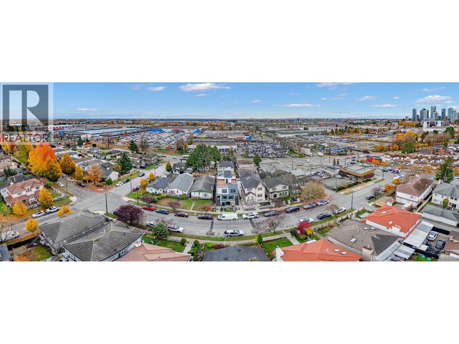 Modern 3 BDRM/2.5 BATH unit in a premier 4-plex, combining style, comfort & convenience. Only 1 min walk to bus stop w/direct access to Skytrain & Vancouver waterfront, 5 mins walk to restaurants & Canadian Superstore. Contemporary design features clean lines, open-concept layout, triple-glazed metal frame windows & energy-efficient systems. Enjoy private yard, alarm, sprinkler & security cameras with back lane access open parking with EV Charging. Inside: gas stove, heat pump (heating/cooling) & 450sqft rooftop patio with unobstructed city & mountain views. No Strata Fee! (32205760)