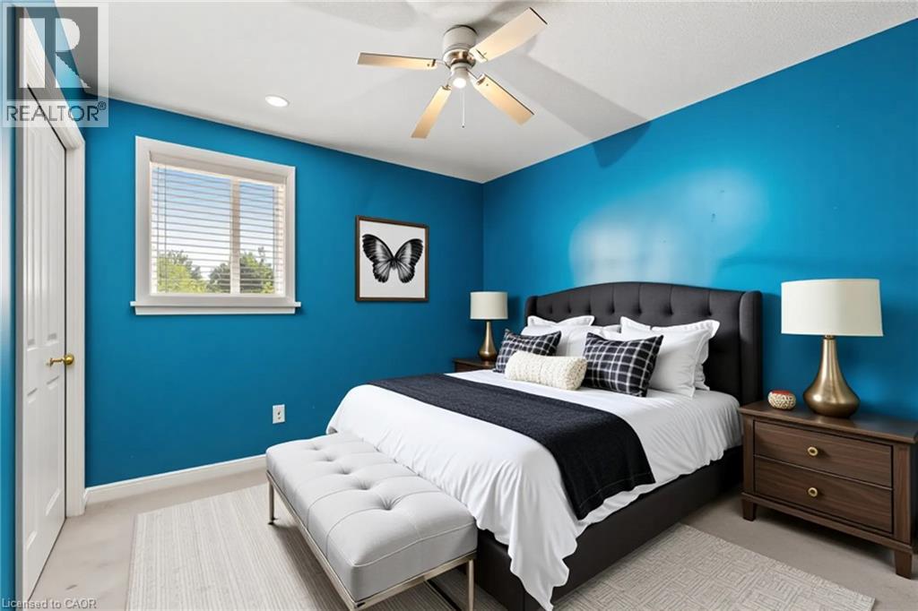 Bedroom featuring a ceiling fan and carpet flooring