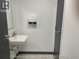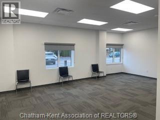 Main Floor Office suite available in Wellington Centre in Chatham. Central locale close to hospital and downtown core, ideal for doctors and professionals. Suite is comprised of two private offices (larger office could be divided), open area w/kitchenette plus washroom. Zoning permits a variety of uses attached in documents. Ample on site parking available with security card access to parking and building, plus video surveillance. Asking $1,750/month (included gas, water, property taxes and HST) plus separately metered hydro and separate insurance. (54165300)