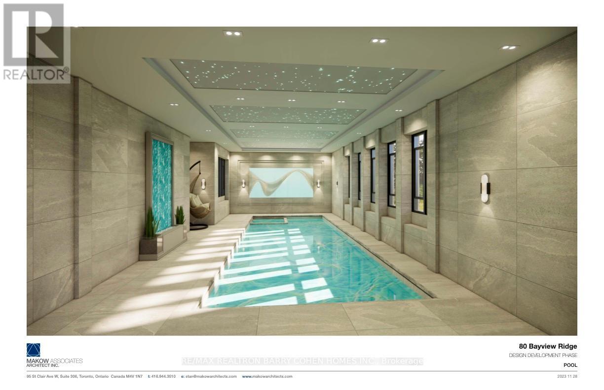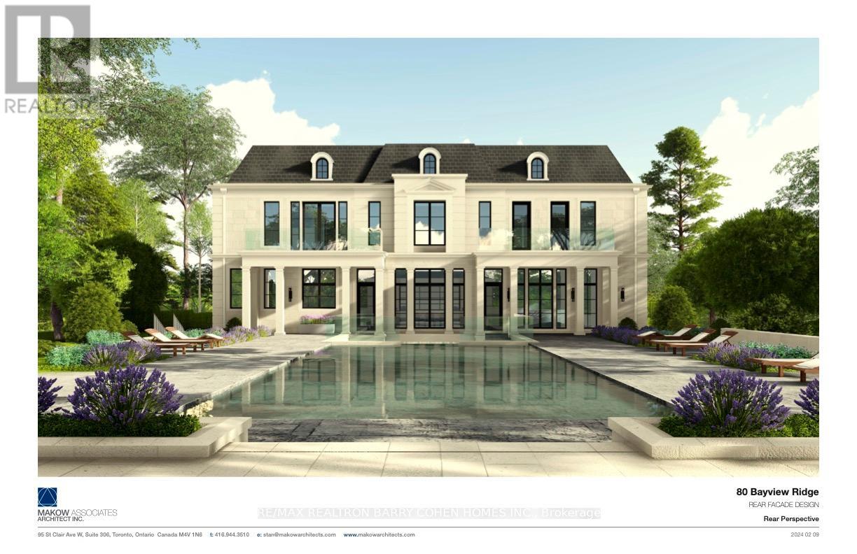 Prestige. Privacy. Possibility. 80 Bayview Ridge - A Signature Estate Opportunity In One Of Toronto's Most Coveted Enclaves.Set On An Extraordinary 100 X 250 Ft Estate-Style Lot, This Remarkable Property Offers Exceptional Scale, Mature Greenery, And A Beautifully Maintained In-Ground Pool Framed By Lush Perennial Gardens-An Oasis Of Complete Privacy In The Heart Of Bayview Ridge.The Existing Residence, Measuring 7,715 Sq. Ft., Is Warm, Inviting, And Comfortably Livable. Sunlit Interiors Feature Multiple Skylights And Five Fireplaces, Enhancing Both Charm And Ambiance. Generous Principal Rooms Include A Richly Appointed Wood-Panelled Library With Fireplace, A Classic Living Room, A Formal Dining Room Adorned With Luxurious Silk Wall Finishes, And A Grand Family Room With Skylight, Fireplace, And Walk-Out To The Serene Backyard.The Walk-Out Lower Level Elevates Everyday Living With A Dedicated Theatre Room, Spacious Recreation And Entertainment Areas, And Flexible Spaces Ideal For Hosting, Relaxing, Or Accommodating Extended Family. A Three-Car Garage And The Estate's Exceptional Lot Size Complete This Distinguished Offering. While The Home Is Perfectly Enjoyable As-Is, The Value Lies In The Land And Redevelopment Potential. Architectural Plans By Makow Architects For A New Luxury Residence Of Over 18,000 Sq. Ft. Are Available, And The Building Permit Is Already Approved And Ready, Making This A Truly Turnkey Opportunity For A Future Signature Estate. An Exceptional Bayview Ridge Address Where Privacy, Timeless Elegance, And Limitless Opportunity Converge-Whether You Choose To Live, Enhance, Or Build New. (41711911)