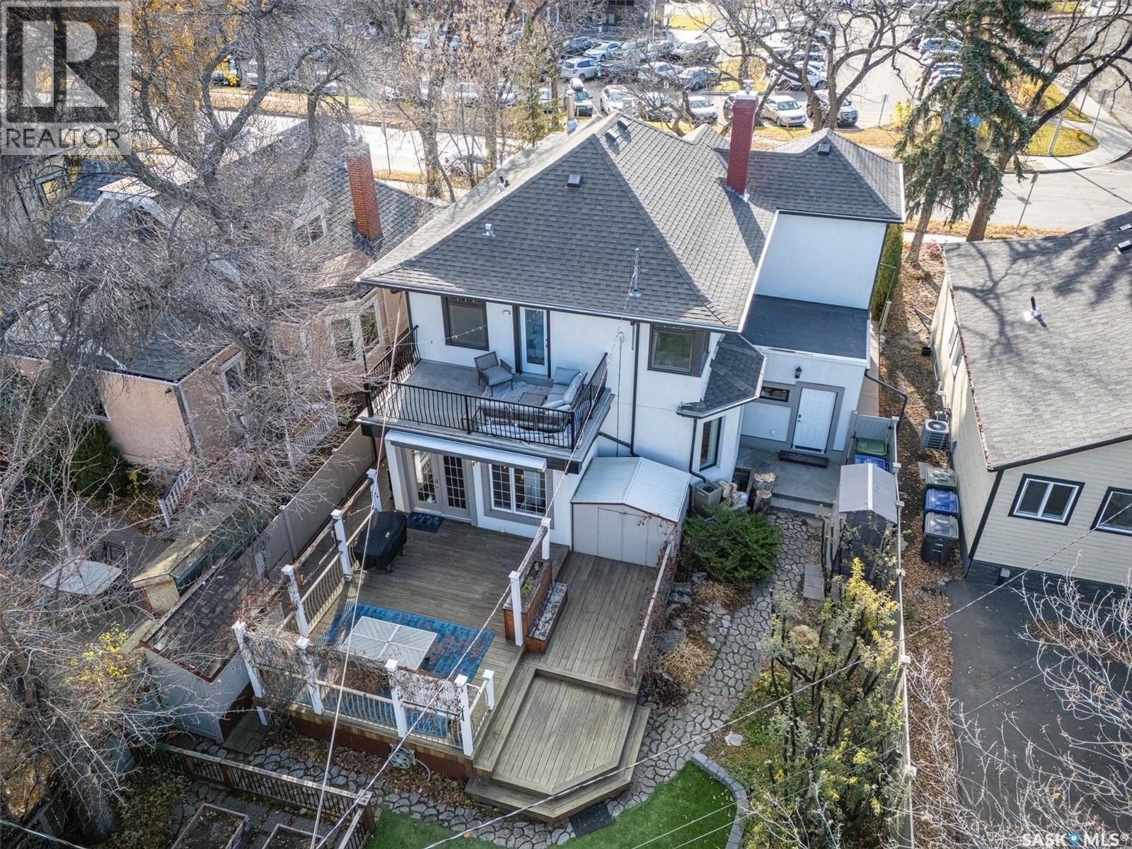Don’t miss this INCREDIBLE character home in one of Saskatoon’s most desirable neighbourhoods! A stately family home with a modern income generating suite / AIRBNB!! This property exudes pride of ownership with charm and professional updates throughout. Enter into the main floor to find a welcoming sunroom and lrg foyer, living room with wood burning fireplace, and a formal dining with a bay window. At the heart of the home is a chef’s DREAM KITCHEN- spacious and beautifully appointed with quartz countertops, stainless appliances, and a sit-up eating area that opens onto a sitting room, overlooking a large deck and private yard. A 2-pc bath completes the main. Upstairs, you’ll find 3 bedrooms: a primary suite with an ensuite and a charming private deck of the master. Two additional lrg bedrooms and a newly renovated 3-piece bathroom complete 2nd flr. Large windows flood every room with natural light, highlighting the significant character. Extensive renovations and upgrades have been meticulously completed recently, blending heritage with modern class. The unique dev basement offers a modern 1 bed suite / AIRBNB income generator with a sep entrance, 4-pc bath, 2 x laundry, kitchen, and a family room w/ gas fireplace — ideal for additional cash flow. The oversized, heated att garage includes a large attic storage area above. The front yard is low maintenance with a stamped concrete driveway providing parking 3 vehicles. The private backyard will impress w/manicured grounds: a two-tiered deck, garden boxes, artificial turf, curbing, and climbing vines. In total, there are three decks, including a covered front deck and the private balcony of the master. Upgrades include: furnace, hot water heater, shingles, garage, decks, kitchen, two bathrooms, basement development, many new windows, updated exterior, and driveway — the list goes on! This gem is ideally situated within walking distance to the river, downtown, U of S, and all hospitals, the location is unbeatable! (29160958)