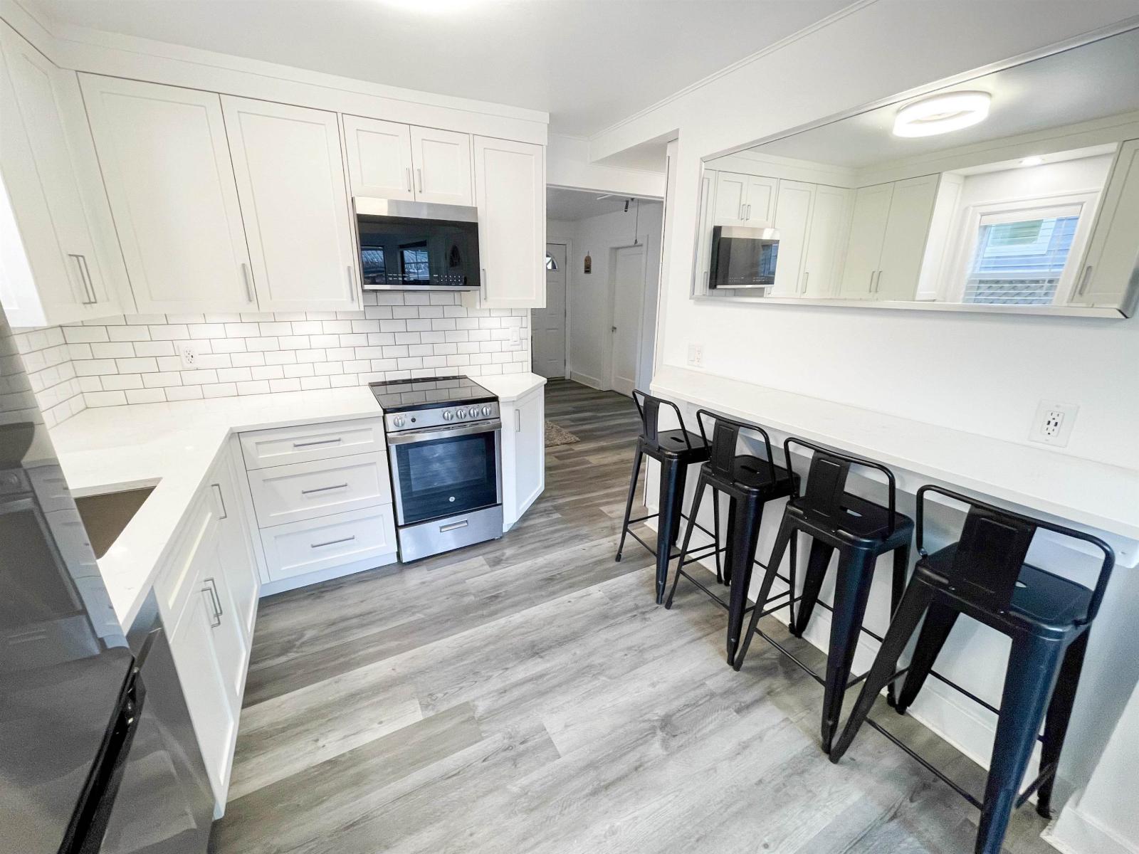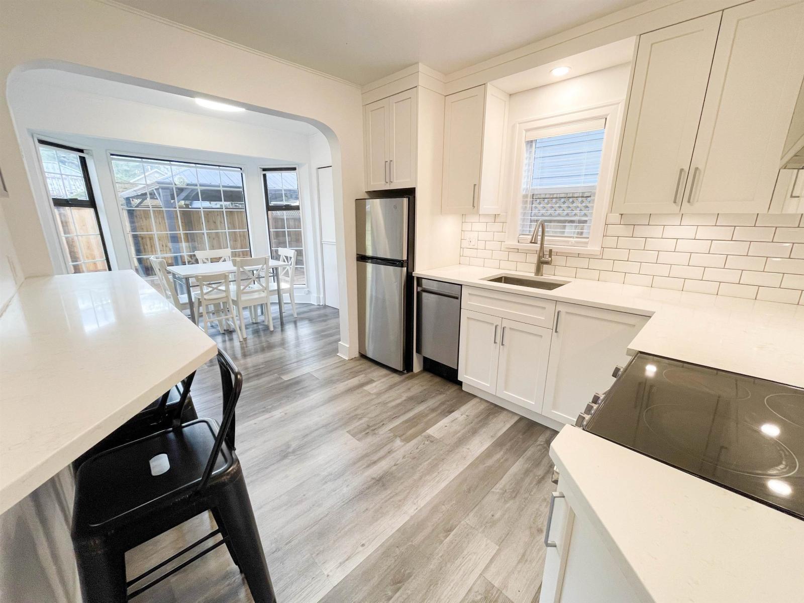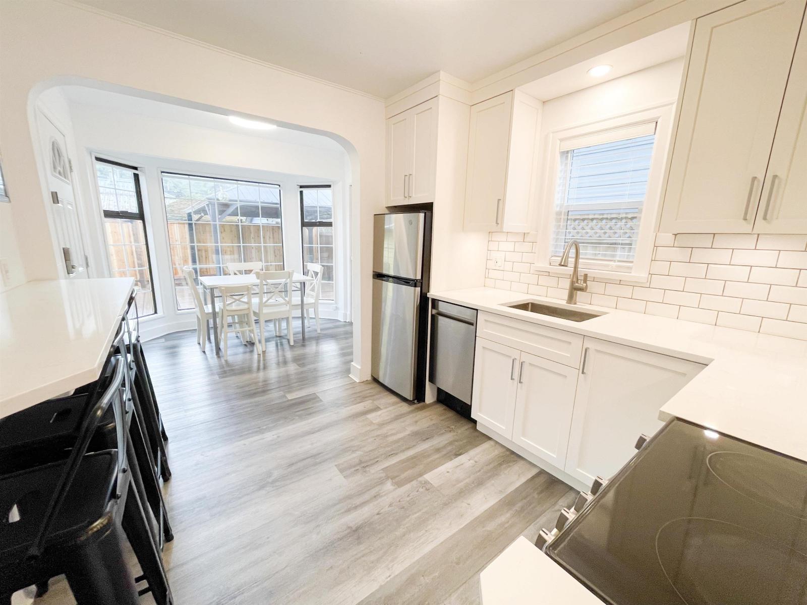 Ultra-clean and beautifully updated detached home featuring a new kitchen, appliances, bathroom, flooring, double-pane windows, washer/dryer, and on-demand hot water. Mini split heating/cooling system, Roof approx. 10 yrs old. Fresh paint inside/out. Enjoy a newer cedar deck, new cedar fencing, and a covered gazebo, perfect for outdoor living. Parking for 3 vehicles plus 4 additional passes along with lane access. Move-in ready and steps to the lake and amenities. (32206425)