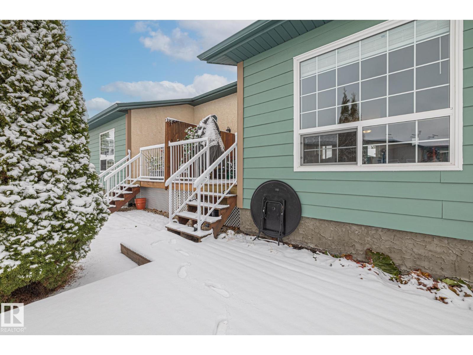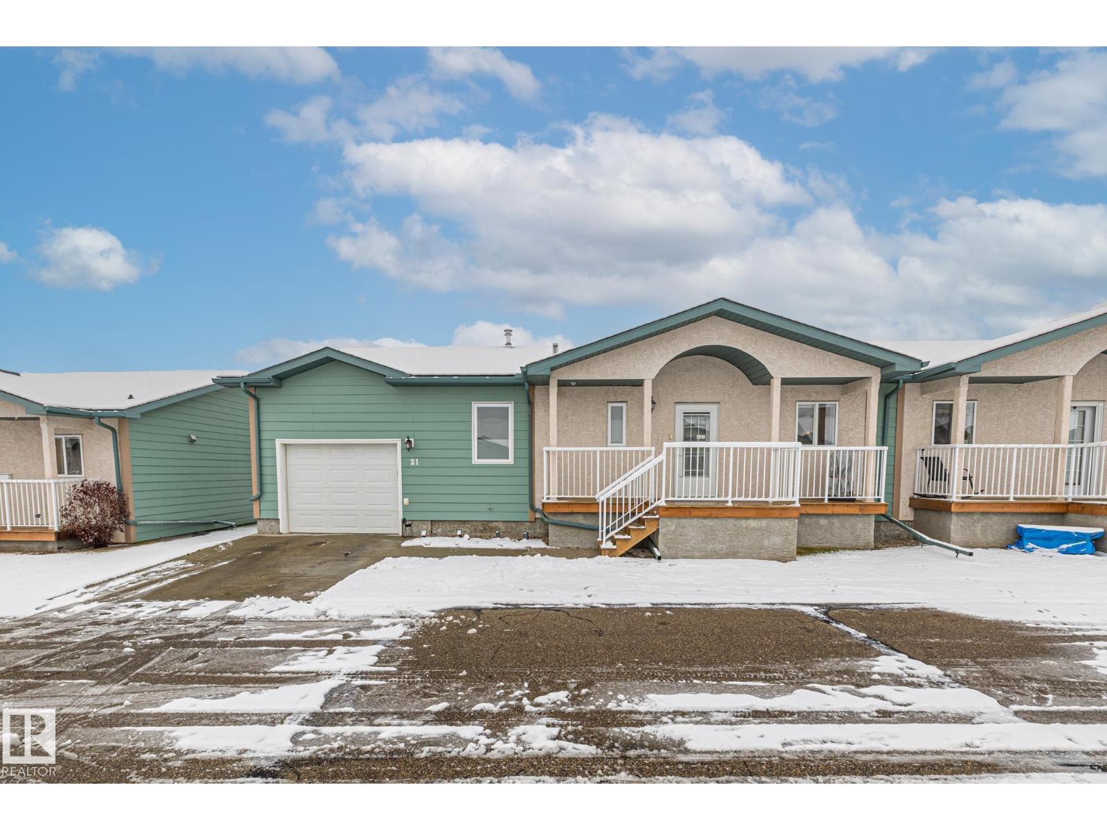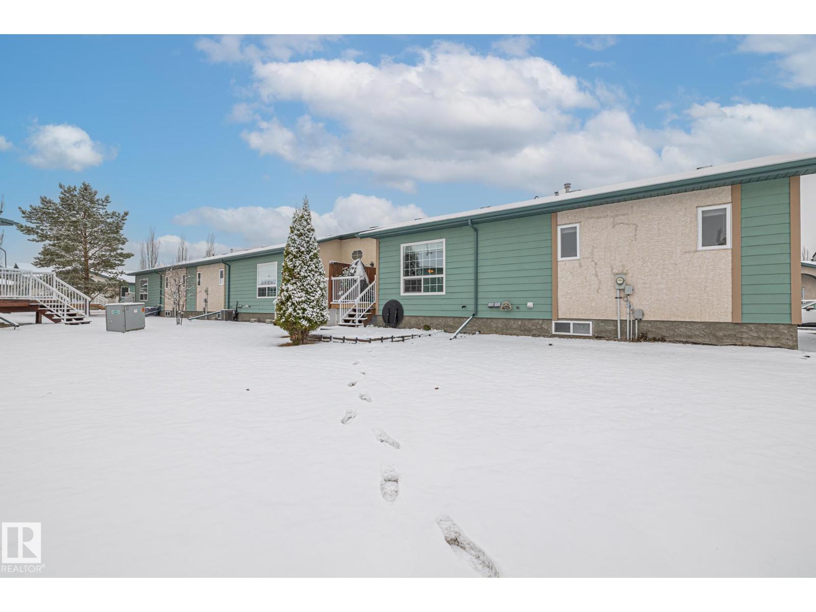 Welcome to Spruce Ridge Villas, a 40+ adult community. This low-maintenance bungalow-style townhome is ideal for downsizing or the next stage of life. The open-concept main floor features vaulted ceilings, hardwood floors, and a gas fireplace, plus a kitchen with ample counter and cupboard space and a large island. The main floor includes two bedrooms, with a primary suite offering a walk-in closet, additional floor-to-ceiling closets, and 4-piece ensuite. The laundry area is combined with the 3-piece main floor bathroom. The fully finished basement provides a large living area, a 3-piece bathroom, and a generous sized storage room. Outside, enjoy an extended deck and a gas BBQ hookup. The complex offers a clubhouse with activities, visitor parking, and is close to shopping, parks, paths, and the Tri-Leisure Centre. (33603270)