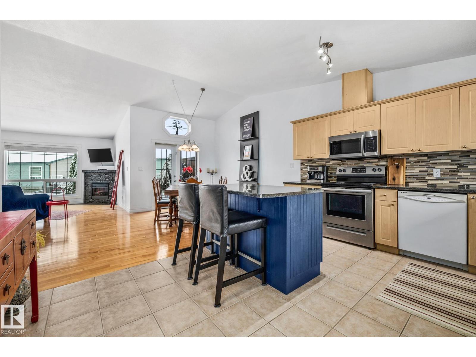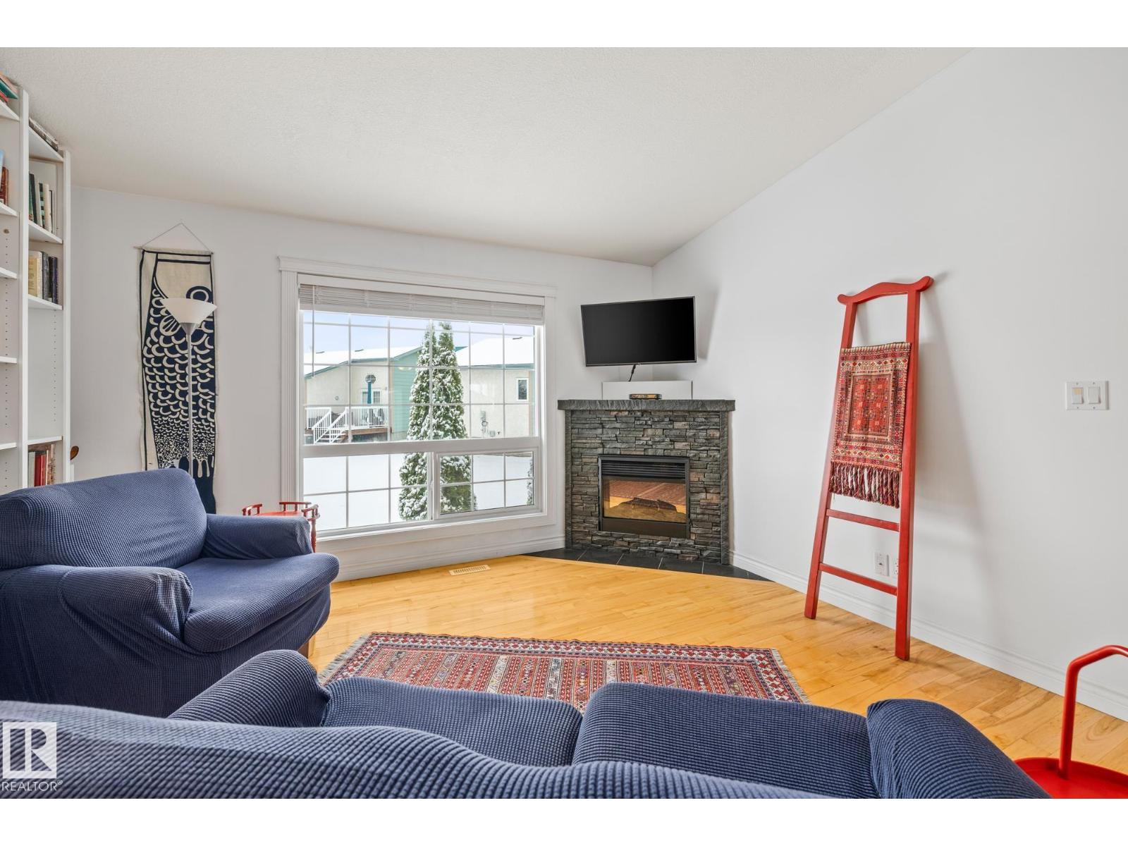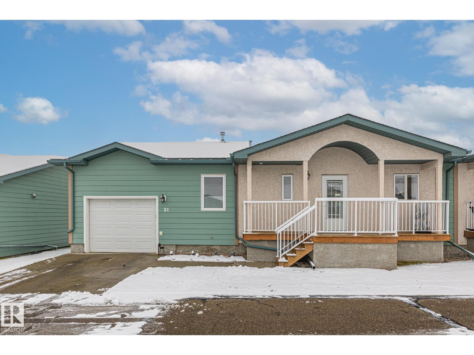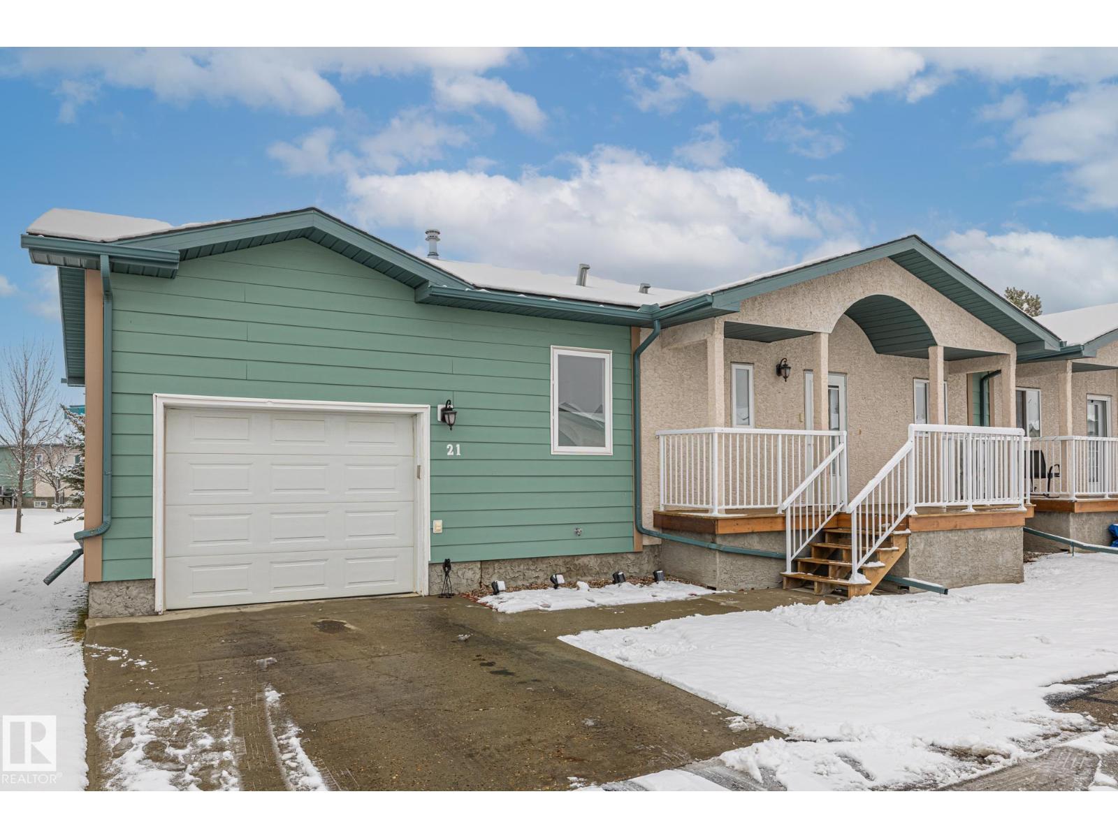 Welcome to Spruce Ridge Villas, a 40+ adult community. This low-maintenance bungalow-style townhome is ideal for downsizing or the next stage of life. The open-concept main floor features vaulted ceilings, hardwood floors, and a gas fireplace, plus a kitchen with ample counter and cupboard space and a large island. The main floor includes two bedrooms, with a primary suite offering a walk-in closet, additional floor-to-ceiling closets, and 4-piece ensuite. The laundry area is combined with the 3-piece main floor bathroom. The fully finished basement provides a large living area, a 3-piece bathroom, and a generous sized storage room. Outside, enjoy an extended deck and a gas BBQ hookup. The complex offers a clubhouse with activities, visitor parking, and is close to shopping, parks, paths, and the Tri-Leisure Centre. (33603270)