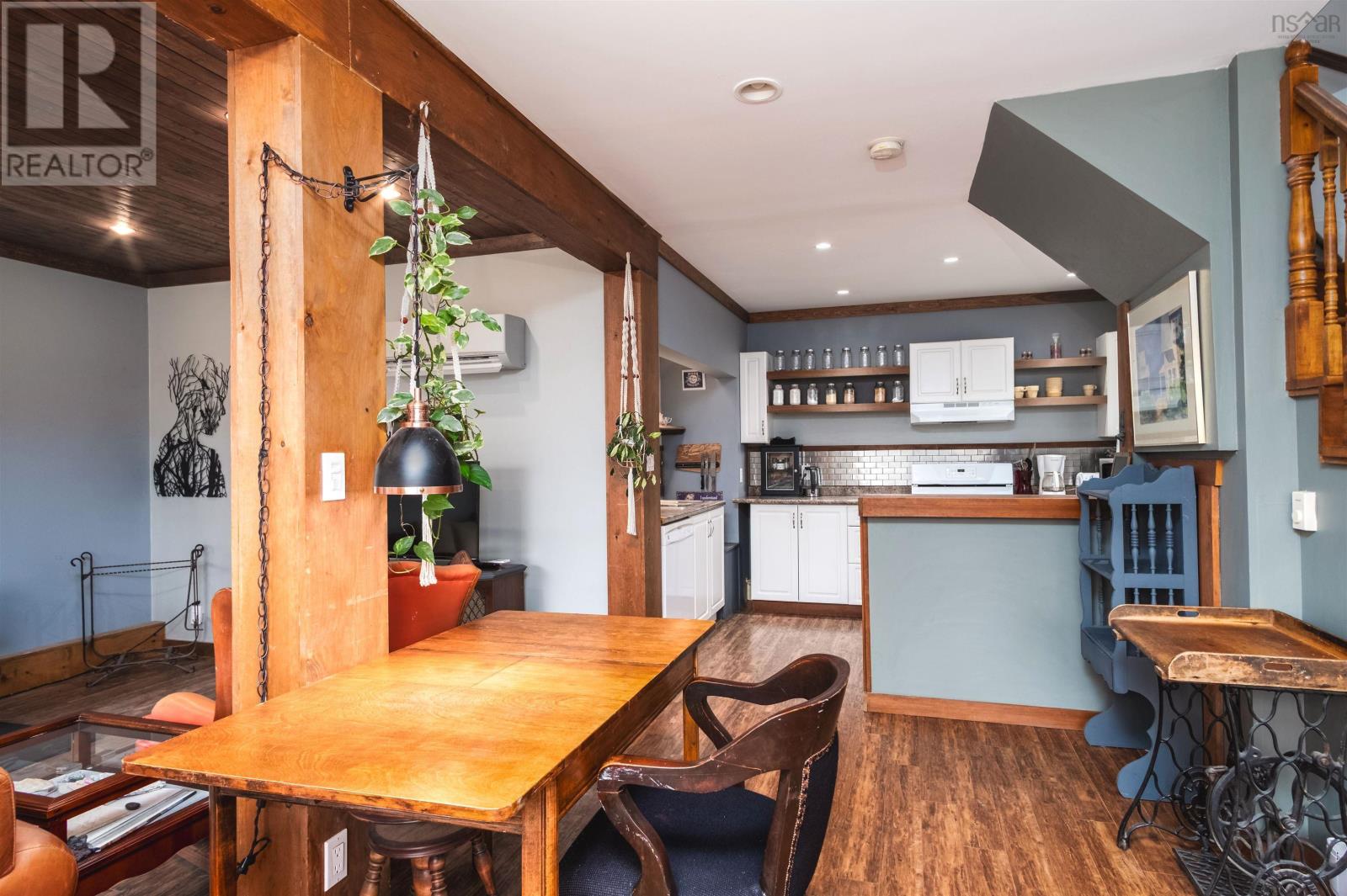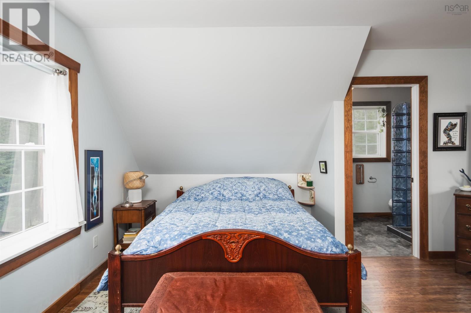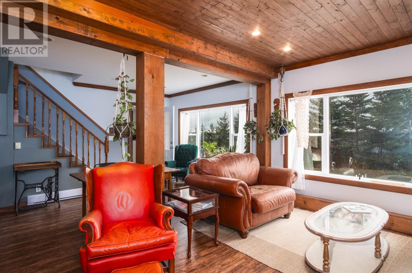 Whether youre watching the sun rise over the beautiful Bras DOr from the front porch, or winding down your day in your spacious living room where a crackling fire creates the most inviting atmosphere, you will fall in love with this property again and again. Perched atop a hillside in the quaint costal town of St. Peters, the home truly feels like a retreat from the noise of daily life. The front entrance welcomes you in with an enclosed mudroom housing a new, attractively rustic wood floor, then flows into a cozy open-concept living and dining area featuring large windows, engineered hardwood flooring, and a wood stove. Just beside is an absolutely charming kitchen home to new appliances - including a propane stove - and open shelving to showcase your culinary wares. Follow the staircase up to a spacious and cheerful primary bedroom filled with light thanks to a newly installed large window. A gorgeous ensuite bathroom boasting a high-end glass block-encased shower offers not only convenience but an unexpectedly artful space. An ample additional bedroom completes the second level. Head outside to the massive, 900 s.f. heated, wired, and insulated garage with room for three vehicles and a raised area that provides for a ton of storage. Recent improvements to the property include a half-bathroom with laundry on the main level; an additional external door on the main level and some new siding; a heat pump for the house and one for the garage; rain gutters on both the house and the garage; and more. Used previously as a highly sought-after Airbnb with excellent reviews and rebooking rates, this is your opportunity to own this exceptional property and determine its future. The property allows for two buildings, residential or commercial, and the garage was given approval to be developed into a living space with the addition of water and sewer. The land is just shy of 3/4 of an acre and is cleared. So much beauty and opportunity await! (231665110)