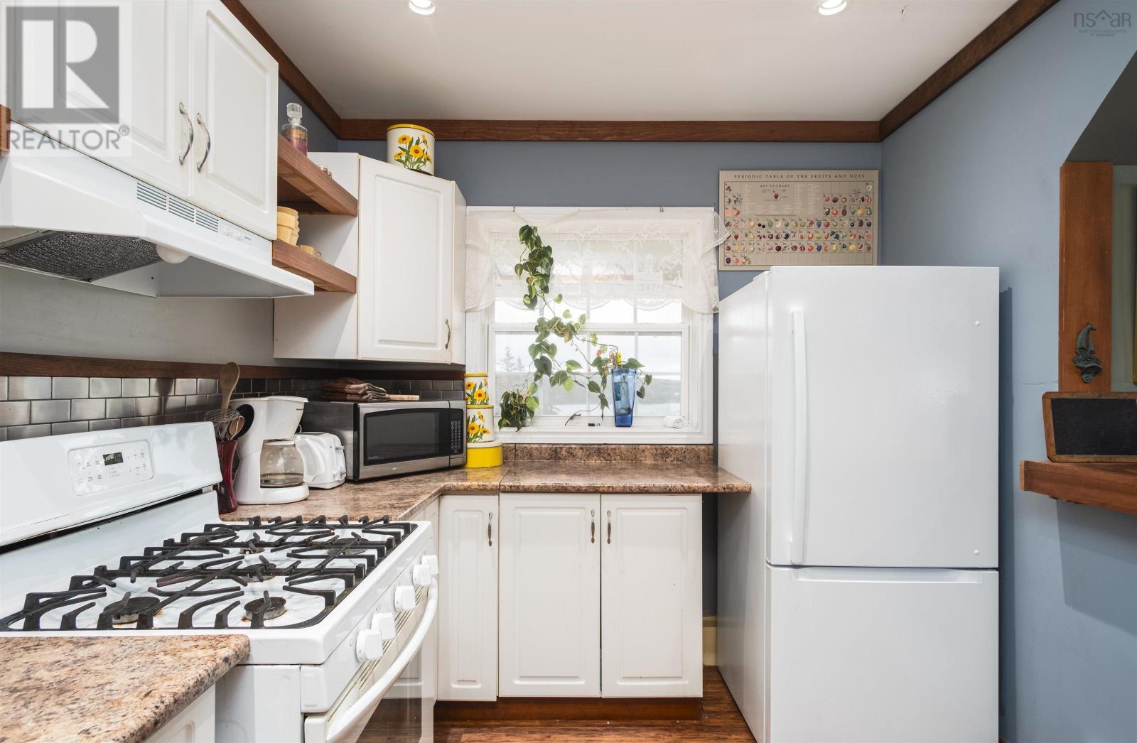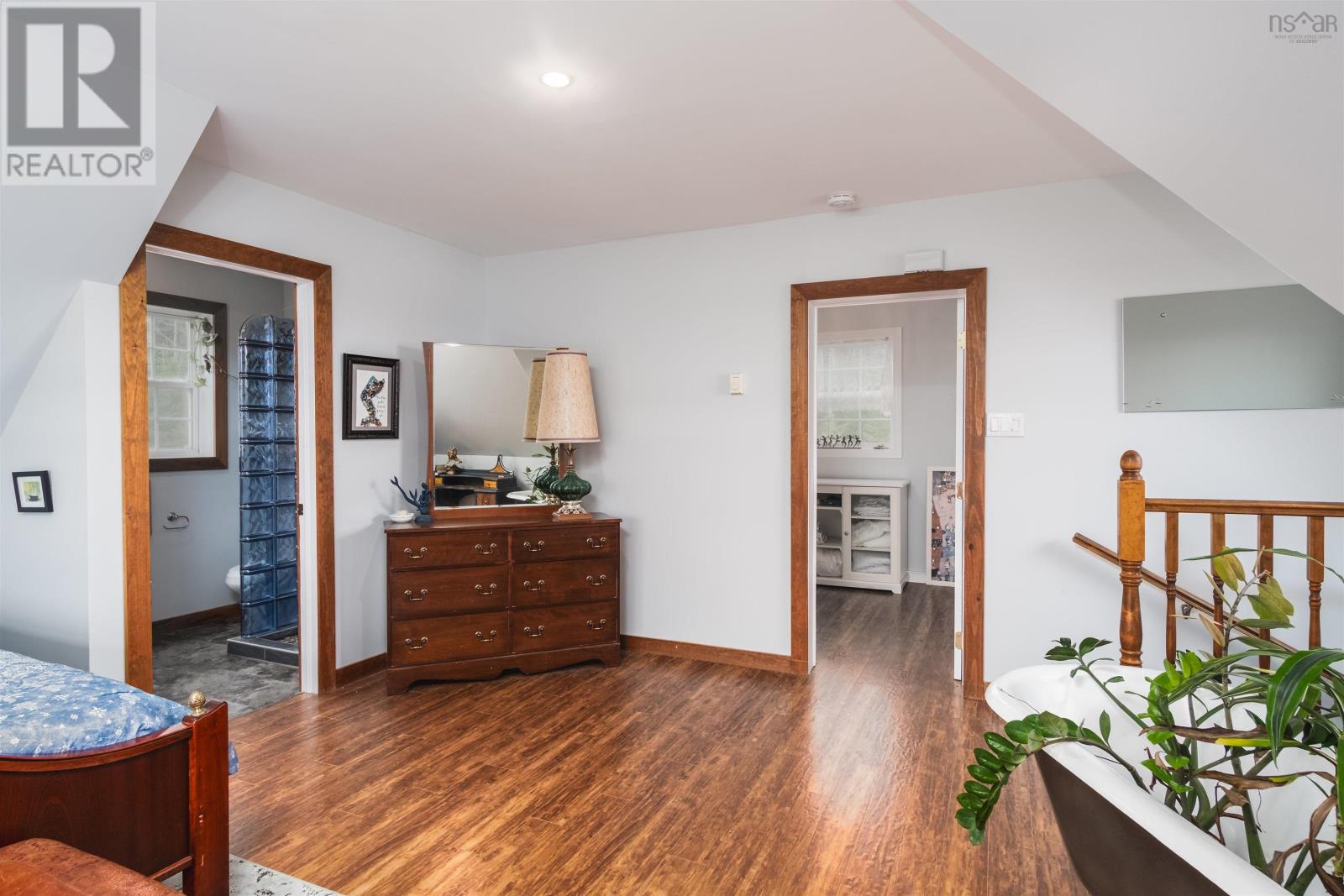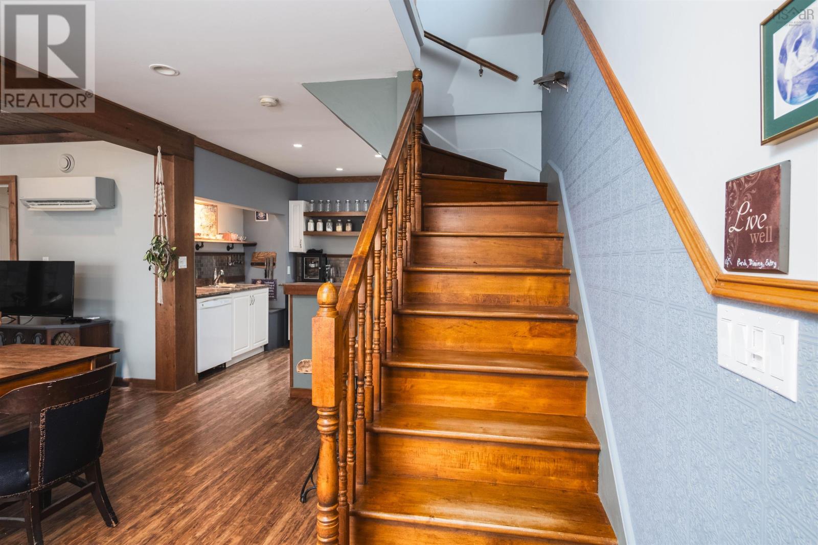 Whether youre watching the sun rise over the beautiful Bras DOr from the front porch, or winding down your day in your spacious living room where a crackling fire creates the most inviting atmosphere, you will fall in love with this property again and again. Perched atop a hillside in the quaint costal town of St. Peters, the home truly feels like a retreat from the noise of daily life. The front entrance welcomes you in with an enclosed mudroom housing a new, attractively rustic wood floor, then flows into a cozy open-concept living and dining area featuring large windows, engineered hardwood flooring, and a wood stove. Just beside is an absolutely charming kitchen home to new appliances - including a propane stove - and open shelving to showcase your culinary wares. Follow the staircase up to a spacious and cheerful primary bedroom filled with light thanks to a newly installed large window. A gorgeous ensuite bathroom boasting a high-end glass block-encased shower offers not only convenience but an unexpectedly artful space. An ample additional bedroom completes the second level. Head outside to the massive, 900 s.f. heated, wired, and insulated garage with room for three vehicles and a raised area that provides for a ton of storage. Recent improvements to the property include a half-bathroom with laundry on the main level; an additional external door on the main level and some new siding; a heat pump for the house and one for the garage; rain gutters on both the house and the garage; and more. Used previously as a highly sought-after Airbnb with excellent reviews and rebooking rates, this is your opportunity to own this exceptional property and determine its future. The property allows for two buildings, residential or commercial, and the garage was given approval to be developed into a living space with the addition of water and sewer. The land is just shy of 3/4 of an acre and is cleared. So much beauty and opportunity await! (231665110)