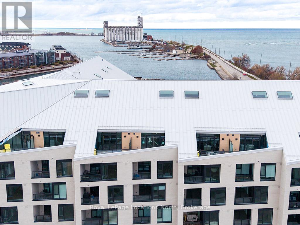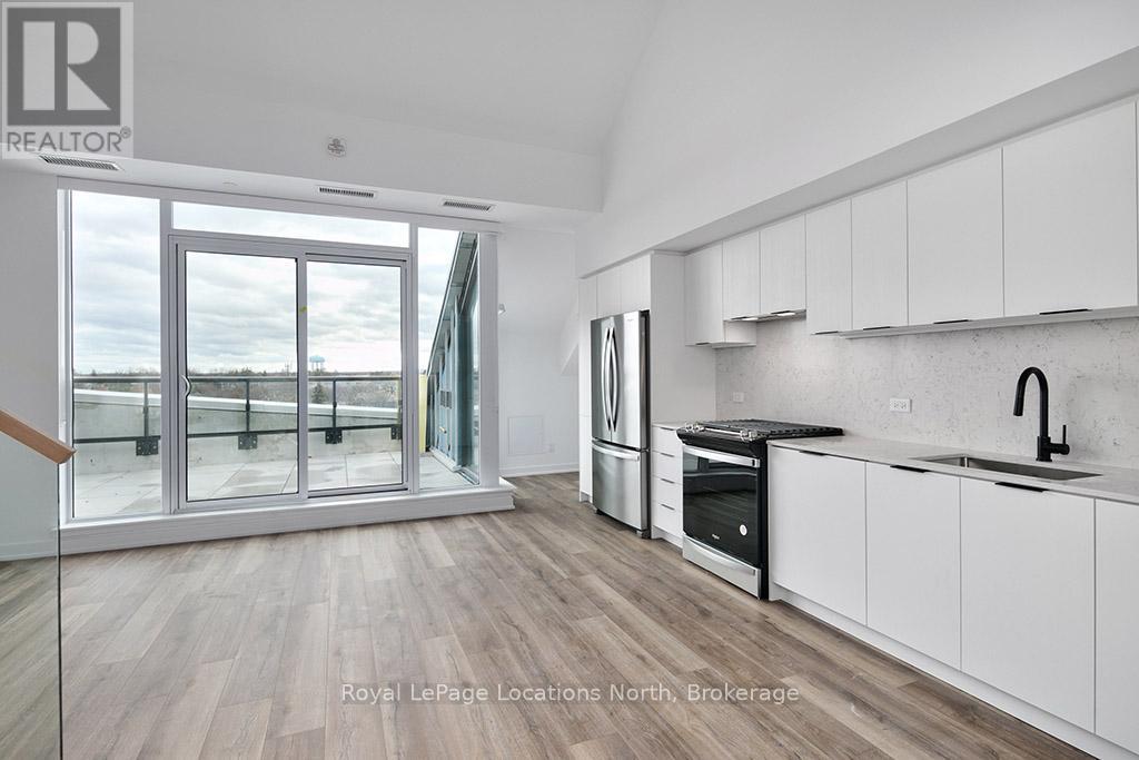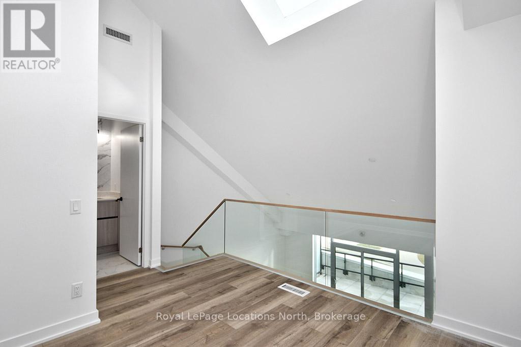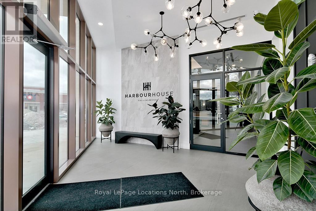 Elegant penthouse apartment, ANNUAL UNFURNISHED LEASE, in Harbour House: an exceptional waterfront condominium in downtown Collingwood. This 2 level, 900 sq ft modern, 2 bedroom, plus den unit is a mix of luxury and comfort and has plenty of natural light with vaulted ceilings and open-concept living space. The kitchen features quartz countertops with matching backsplash; built-in, hidden dishwasher; a gas stove; fridge/freezer and modern flooring. Step outside to your own private 135 sq ft terrace with natural gas hookup for bbq and enjoy unobstructed panoramic views of Georgian Bay, Blue Mountain Escarpment and downtown Collingwood - perfect for morning coffee or to unwind at the end of a busy day. The main floor bedroom and den provide comfort for your guests and the flexibility to have an office space if you work from home. The main floor 4-piece bathroom has a soaker tub and overhead shower. Upstairs, the spacious loft-style primary suite has an ensuite 3-piece bathroom with shower and sink, along with a large closet. The main floor in-suite laundry is an added convenience as is the storage locker and underground parking garage with exclusive parking spot and EV connection. You will love the well considered amenities of Harbour House which include a fully equipped exercise room, dog wash station, two guest suites, underground parking and bike lock-up and fobbed entry. And let's not forget location! You are just steps to the grocery store, restaurants, amenities of downtown Collingwood, waterfront and trails. Just a short drive away are the ski hills, beach and golf. This place has it all! (41713540)