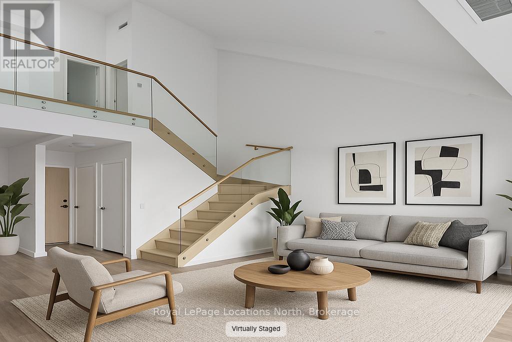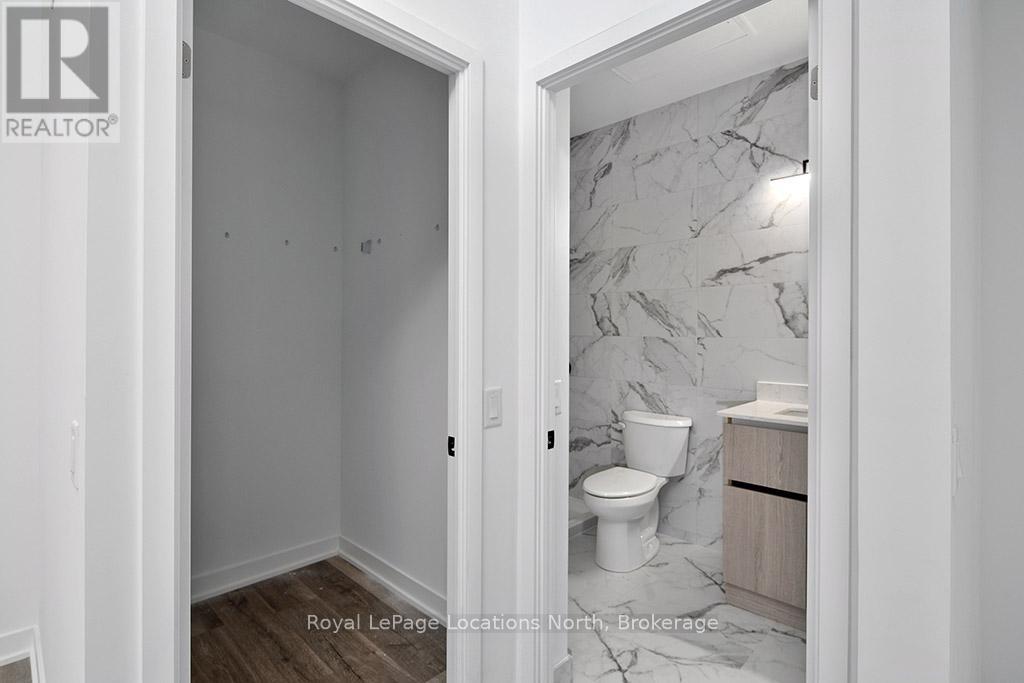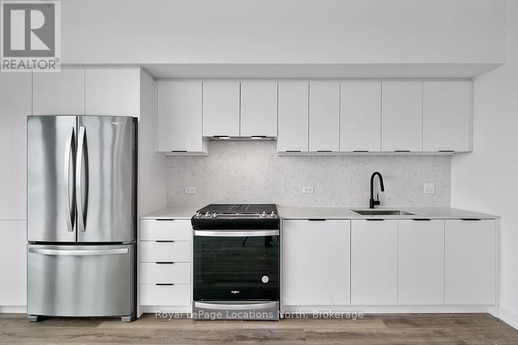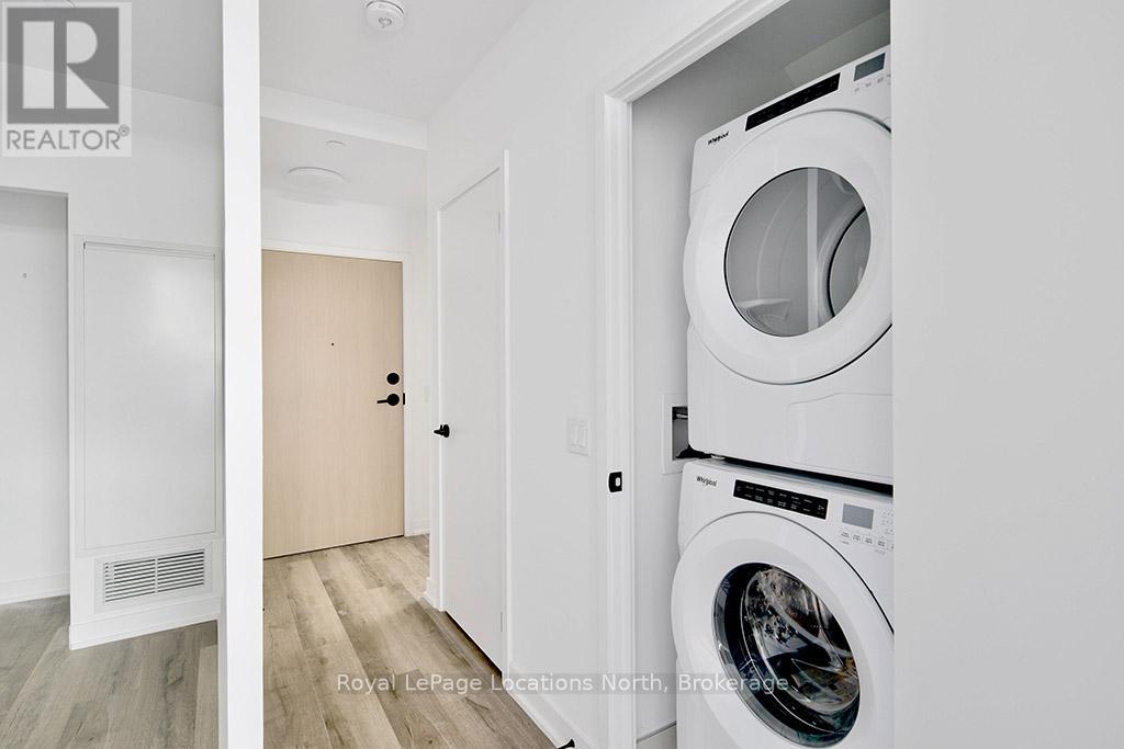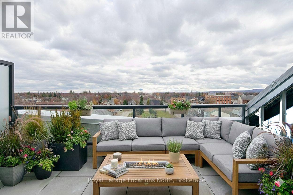 Elegant penthouse apartment, ANNUAL UNFURNISHED LEASE, in Harbour House: an exceptional waterfront condominium in downtown Collingwood. This 2 level, 900 sq ft modern, 2 bedroom, plus den unit is a mix of luxury and comfort and has plenty of natural light with vaulted ceilings and open-concept living space. The kitchen features quartz countertops with matching backsplash; built-in, hidden dishwasher; a gas stove; fridge/freezer and modern flooring. Step outside to your own private 135 sq ft terrace with natural gas hookup for bbq and enjoy unobstructed panoramic views of Georgian Bay, Blue Mountain Escarpment and downtown Collingwood - perfect for morning coffee or to unwind at the end of a busy day. The main floor bedroom and den provide comfort for your guests and the flexibility to have an office space if you work from home. The main floor 4-piece bathroom has a soaker tub and overhead shower. Upstairs, the spacious loft-style primary suite has an ensuite 3-piece bathroom with shower and sink, along with a large closet. The main floor in-suite laundry is an added convenience as is the storage locker and underground parking garage with exclusive parking spot and EV connection. You will love the well considered amenities of Harbour House which include a fully equipped exercise room, dog wash station, two guest suites, underground parking and bike lock-up and fobbed entry. And let's not forget location! You are just steps to the grocery store, restaurants, amenities of downtown Collingwood, waterfront and trails. Just a short drive away are the ski hills, beach and golf. This place has it all! (41713540)