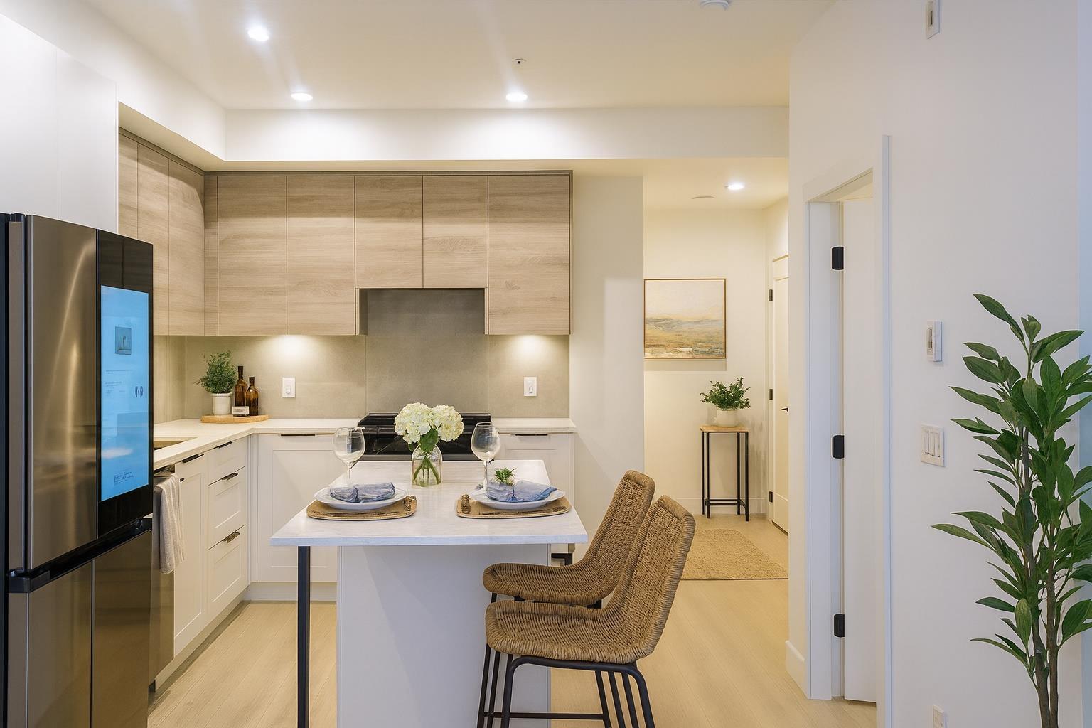 Welcome to Highstreet Village-Abbotsford's newest master-planned community! This modern 1-bed, 1-bath home offers bright, open-concept living with a designer kitchen featuring a gas range, stainless steel appliances, a smart fridge, quartz counters, and a large island. Enjoy air conditioning, quality finishes, and a layout that feels spacious and comfortable. Steps to Highstreet Shopping Centre, restaurants, and everyday essentials, with quick access to Highway 1 and only minutes to Abbotsford International Airport. Move-in ready with quick completion available! (32206712)