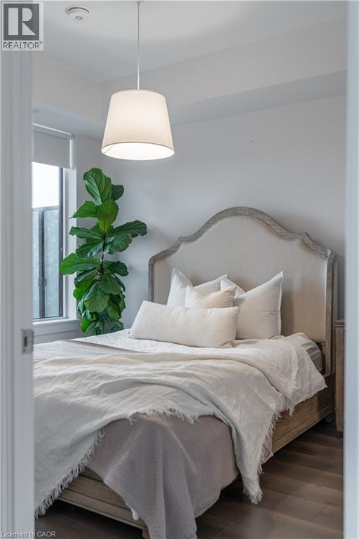 Unlock turn-key living at the Upper West Side Condos by Branthaven! This beautifully maintained 695 sq ft one-bedroom + den, one-bathroom suite on the fourth floor is truly one of a kind. Step inside to wide-plank flooring throughout, bright white walls in flawless condition, and a stunning kitchen featuring quartz countertops, subway tile backsplash, under-cabinet lighting, undermount sink, floor-to-ceiling cabinetry, seating for three at the peninsula, a dedicated coffee bar, and a fridge water line hook-up. The spacious living room boasts soaring ceilings, a builder-upgraded TV-ready package, and access to a private 50 sq ft south-facing balcony with serene views. The bedroom easily accommodates a queen bed with room to size up and offers an expansive closet with room for a dresser, plus a valued builder upgrade: ensuite access to the four-piece bathroom, complete with a large vanity, ample counter space, and pristine tilework. Additional highlights include in-suite laundry, an entry closet, geo-thermal heating and cooling, one storage locker, one underground parking space, and Bell internet included in the condo fees. Enjoy the convenience of keyless entry and the BH Home Technology system for a seamless living experience. Residents have access to top-tier amenities, including a concierge and security, fully equipped gym, pet wash and grooming station, media and party rooms, games rooms, rooftop deck and garden with BBQs, and ample visitor parking. Located in the heart of Joshua Meadows, you’re just a short drive to the Uptown Core for shopping, dining, and services, as well as nearby walking trails, golf, parks, and top-ranked schools. Commuting is effortless with quick access to highways 403, 407, and the QEW, making both work and play incredibly convenient. (69928938)