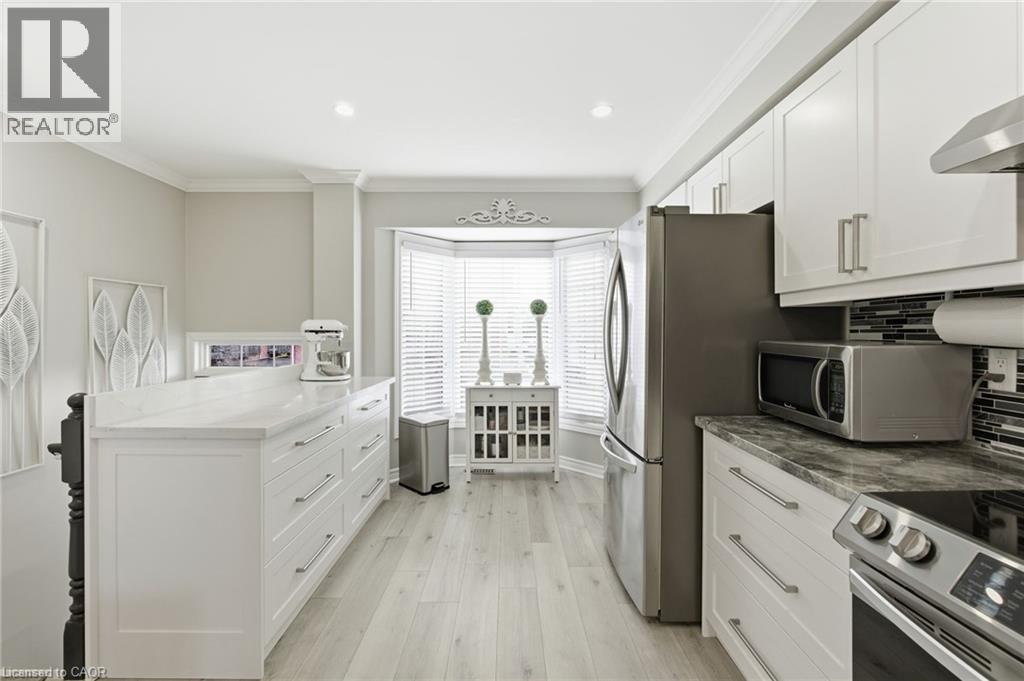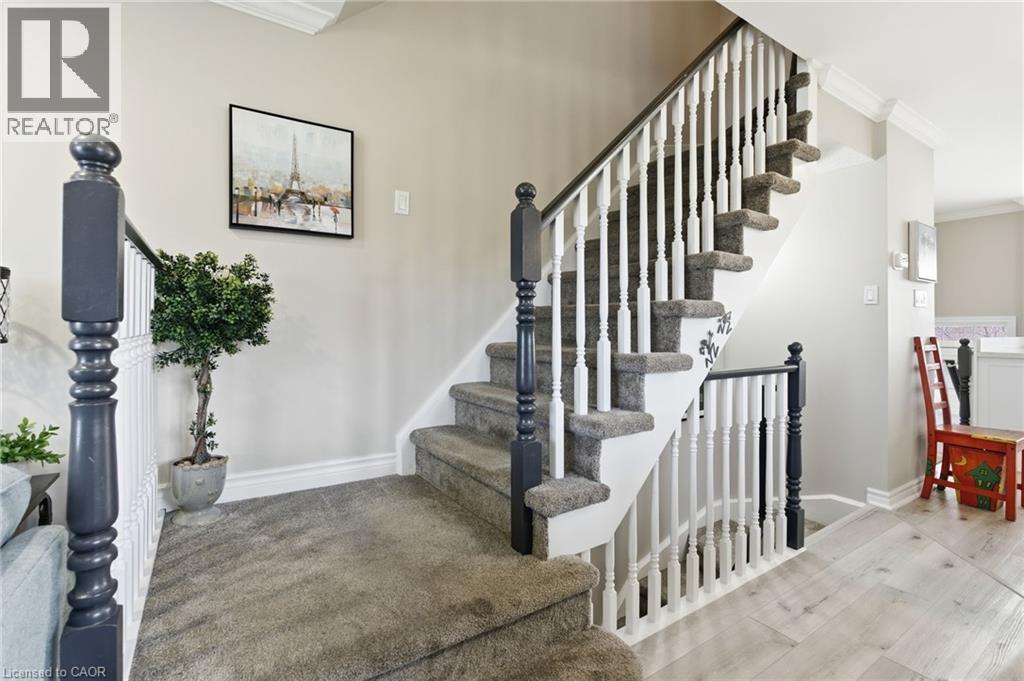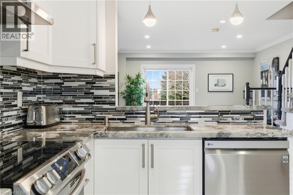 Impeccably maintained end-unit townhome in sought-after Tuck’s Forest. Welcome to this immaculate, beautifully updated 2-bedroom end-unit townhome. Bright, sun-filled, and set in one of Burlington’s most desirable communities. Updated throughout in 2021, this home features new flooring across all levels, fresh carpeting on the staircases, and a fully redesigned kitchen that truly elevates the space. The kitchen showcases stainless steel appliances, granite counters, a custom island with pot drawers and cutlery organizers, a stylish backsplash, a new larger kitchen sink, a full pantry, and a new kitchen window that brings in even more light. The entire home was professionally repainted top-to-bottom, offering a crisp, modern feel. The open-concept living and dining area flows effortlessly and walks out to a private balcony, perfect for morning coffee or an evening wind-down. The lower level features 9-foot ceilings, a spacious rec room or second family room, and a walkout to the backyard. Upstairs, both bedrooms offer vaulted 11-foot ceilings, large windows, and generous closet space. Second-floor laundry adds everyday convenience. Additional upgrades include a garage door opener, new water heater, and new furnace, all contributing to peace of mind and long-term comfort. The attached garage with inside entry and private driveway add to the everyday ease. And the location? Hard to beat. Steps to top-rated schools, surrounded by walking trails, close to parks, transit, and shopping… and yes, there’s even a Tim Hortons next door for the easiest mornings ever. (69927207)