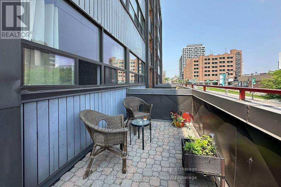 Affordable Opportunity To Own In The Heart Of Downtown Oshawa. Spacious 1 Bedroom With Oversized Interlock Terrace, Ensuite Laundry And Large Ensuite Storage Room. Updated Maple Kitchen Cabinets, Updated Counter, Marble Flooring. B/I Microwave And Dishwasher. Updated Bath With Soaker Tub. Garden Door Onto Spacious 2 Tiered Private Terrace. Small Quiet Condo Building. Walk To Shops, Restaurants, Entertainment Venues And Transit. Well-Maintained Building, Underground Parking, Newer Windows & Garden Door, Heat/Air Conditioning Unit New June 2025. New Front Walkway, Roof, Windows, Hallways and Underground All Updated. Steps to Restaurants, Sports Events, Oshawa Generals, Firewolves Lacrosse & Entertainment Venues, Transit And Much More. (41716729)