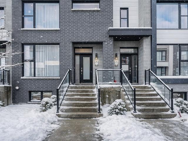 ** BEAUTIFUL TOWNHOUSE, PRIVATE DOUBLE GARAGE & MEZZANINE ** Square Candiac neighborhood. Open ground floor, hardwood floors on 3 floors. Two-tone kitchen, numerous cabinets, large work surface, double sink. Living room with gas fireplace, patio door leading to a first terrace. 4 bedrooms! 3 on the 2nd floor, bathroom and separate laundry room. On the 3rd floor, a 4th bedroom with w-in closet, private bathroom and access to the 2nd terrace. Versatile basement to be used according to your needs, access to garage. Central and wall-mounted heat pump. Project with shared swimming pool + central park with children's playground. See addendum (55966580)