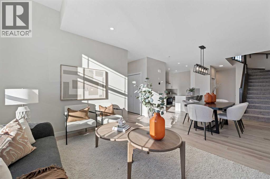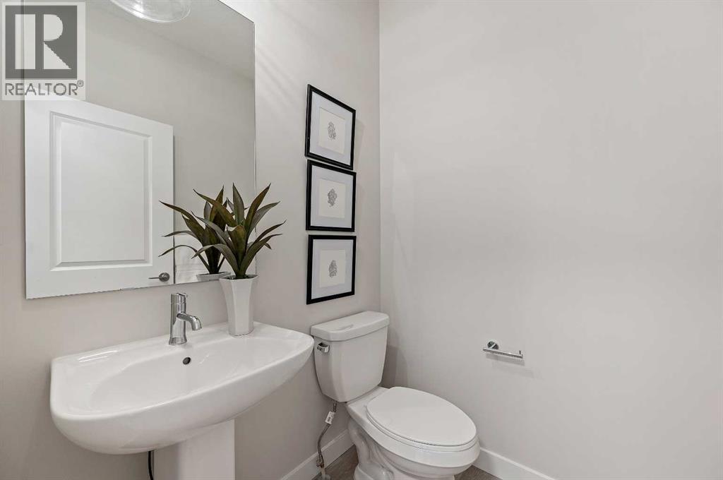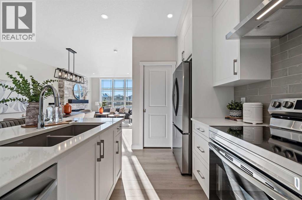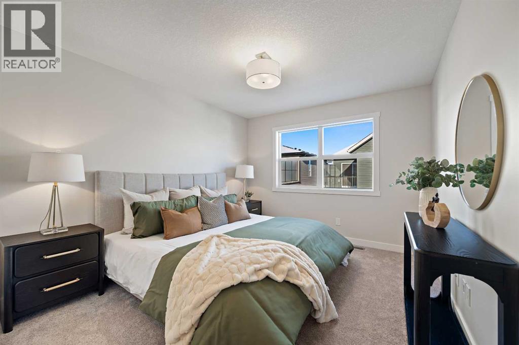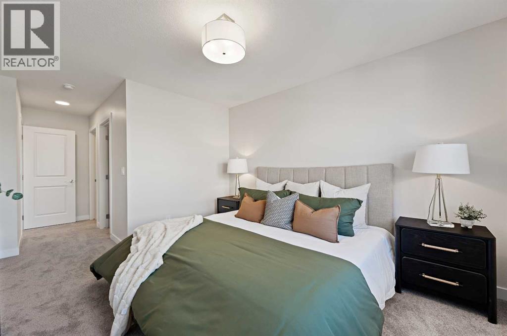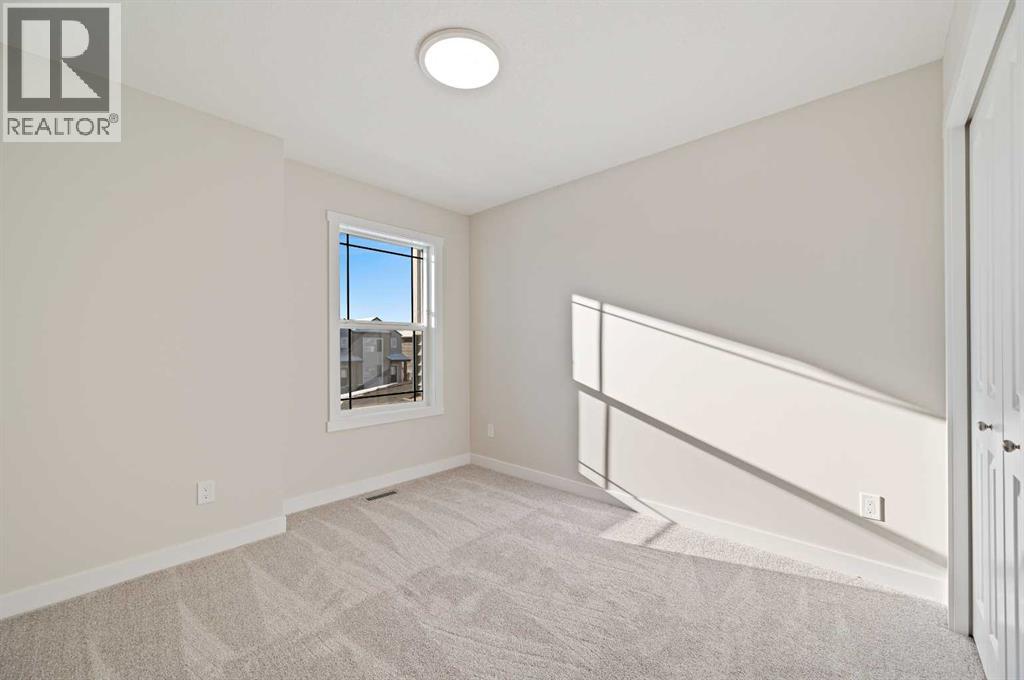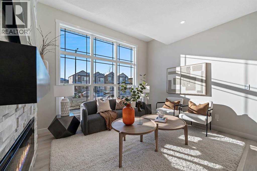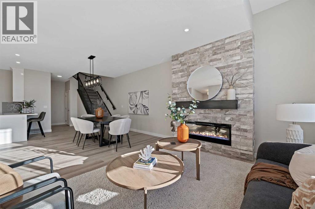 Genesis Builders introduces the Eli - a luxury street-side luxury townhome with NO CONDO FEES! The Eli townhome features an attached double garage and a rooftop patio, offering low-maintenance living. The thoughtfully designed home offers almost 1600 sq ft. plus an unfinished basement with 9-foot ceilings, ready for your ideas. Large windows and soaring ceilings on the main floor let natural light fill the open-concept living space. The chef-inspired kitchen features sleek cabinetry and stone countertops and is well-equipped with stainless-steel appliances. The kitchen is tucked away yet still feels open and inviting, providing ample room for activities in the open-concept dining and living room. A floor-to-ceiling tiled fireplace is the living room's focal point. Complementing the main floor is a convenient half bath, storage, and access to the attached double garage, which is large enough for a truck. Venturing upstairs, you will find a spacious primary retreat with a spa-like ensuite featuring a shower, his-and-hers sinks, and a walk-in closet. Two additional bedrooms, a full bathroom, a flex room, a 4-piece bathroom, and laundry facilities complete the upper level. Enjoy spending time on your upper rooftop patio, situated above the garage, which is an excellent space for entertaining. Bayview is a beautiful community with parks, benches and pathways that meander throughout the community and along the canals. Kids and adults alike will enjoy the outdoor basketball nets, gym, amphitheatre, and tennis courts, which will convert into a skating rink in the winter. Come and see for yourself all the amenities the community has to offer! (31399751)