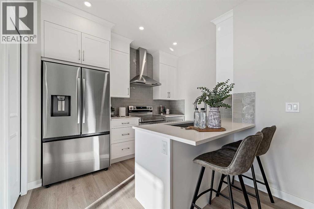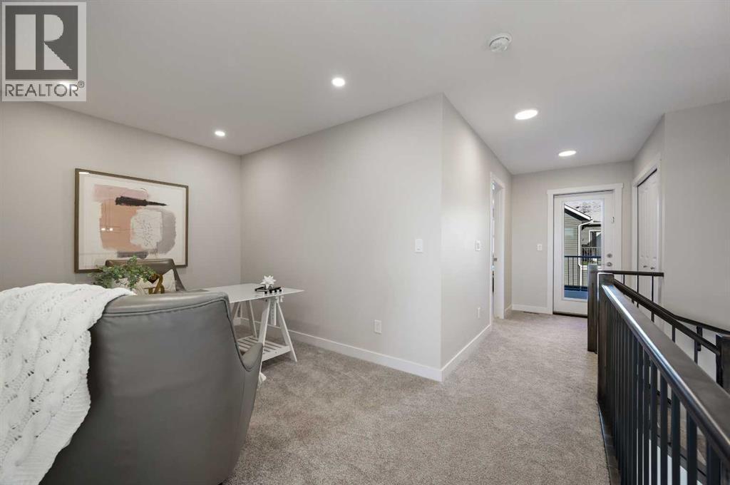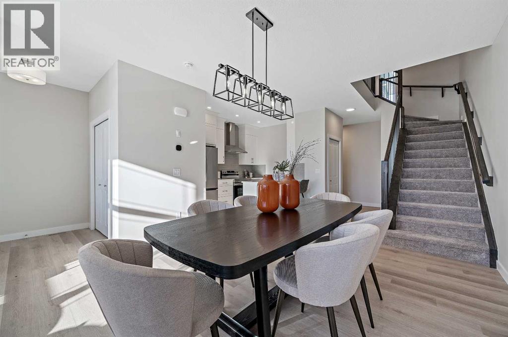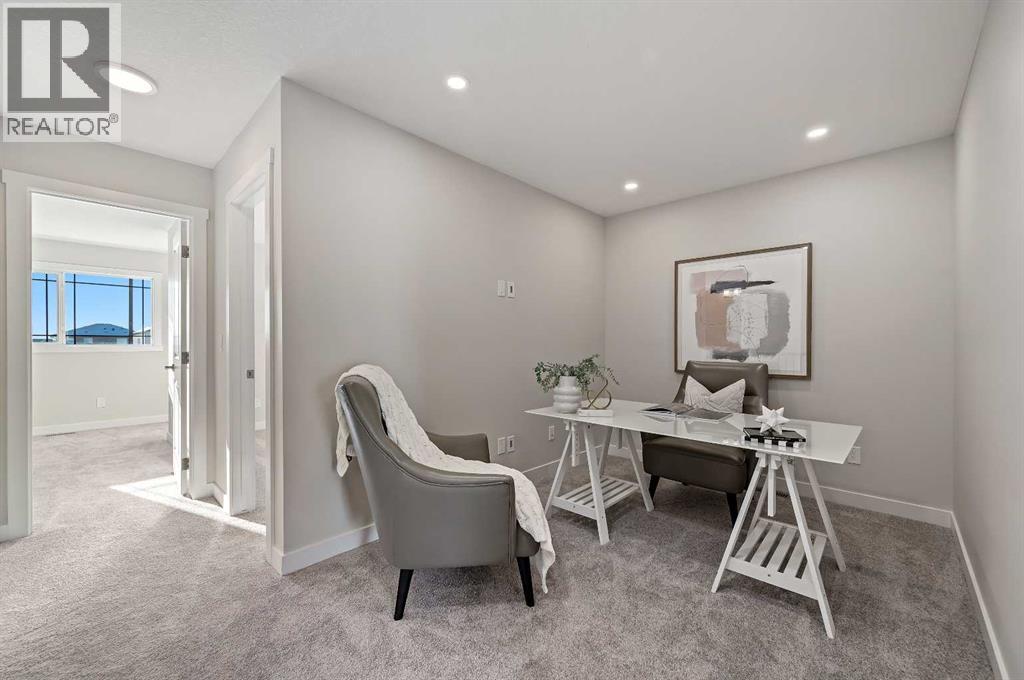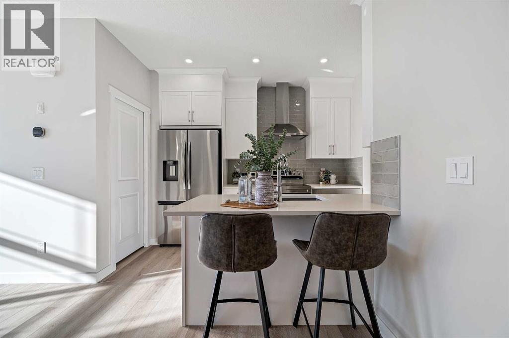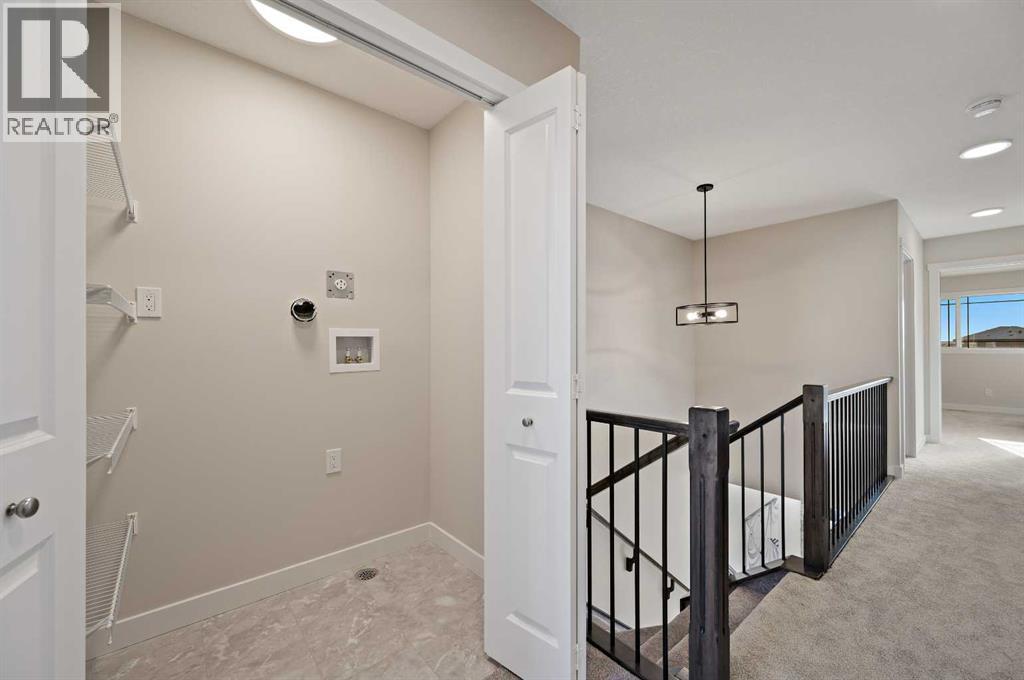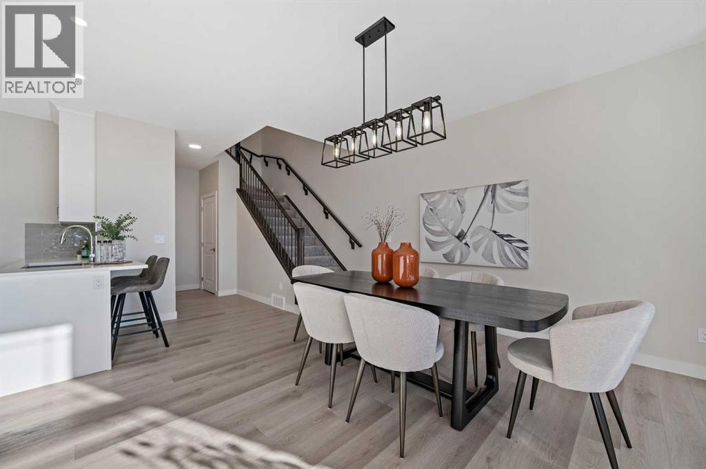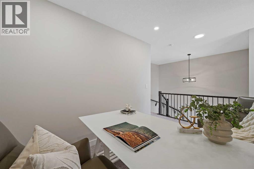 Genesis Builders introduces the Eli - a luxury street-side luxury townhome with NO CONDO FEES! The Eli townhome features an attached double garage and a rooftop patio, offering low-maintenance living. The thoughtfully designed home offers almost 1600 sq ft. plus an unfinished basement with 9-foot ceilings, ready for your ideas. Large windows and soaring ceilings on the main floor let natural light fill the open-concept living space. The chef-inspired kitchen features sleek cabinetry and stone countertops and is well-equipped with stainless-steel appliances. The kitchen is tucked away yet still feels open and inviting, providing ample room for activities in the open-concept dining and living room. A floor-to-ceiling tiled fireplace is the living room's focal point. Complementing the main floor is a convenient half bath, storage, and access to the attached double garage, which is large enough for a truck. Venturing upstairs, you will find a spacious primary retreat with a spa-like ensuite featuring a shower, his-and-hers sinks, and a walk-in closet. Two additional bedrooms, a full bathroom, a flex room, a 4-piece bathroom, and laundry facilities complete the upper level. Enjoy spending time on your upper rooftop patio, situated above the garage, which is an excellent space for entertaining. Bayview is a beautiful community with parks, benches and pathways that meander throughout the community and along the canals. Kids and adults alike will enjoy the outdoor basketball nets, gym, amphitheatre, and tennis courts, which will convert into a skating rink in the winter. Come and see for yourself all the amenities the community has to offer! (31399751)