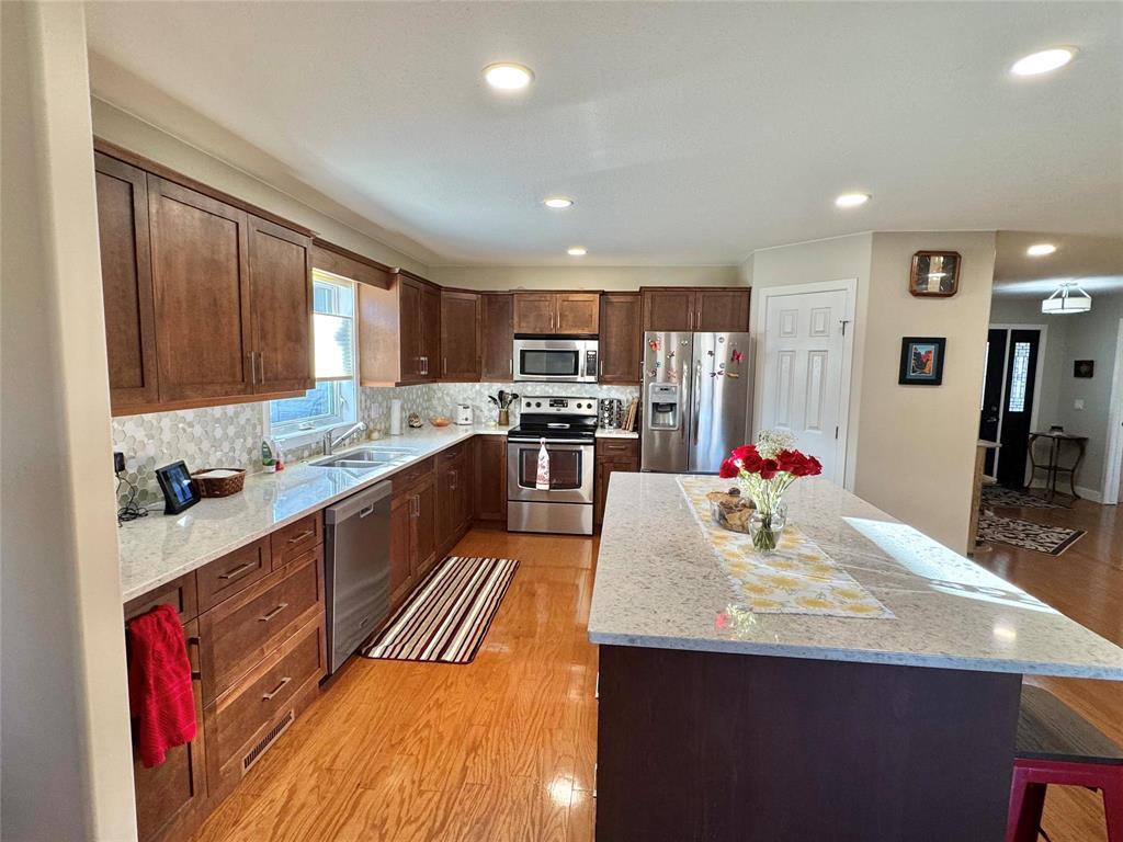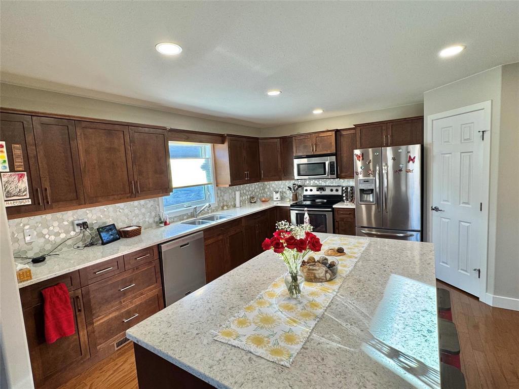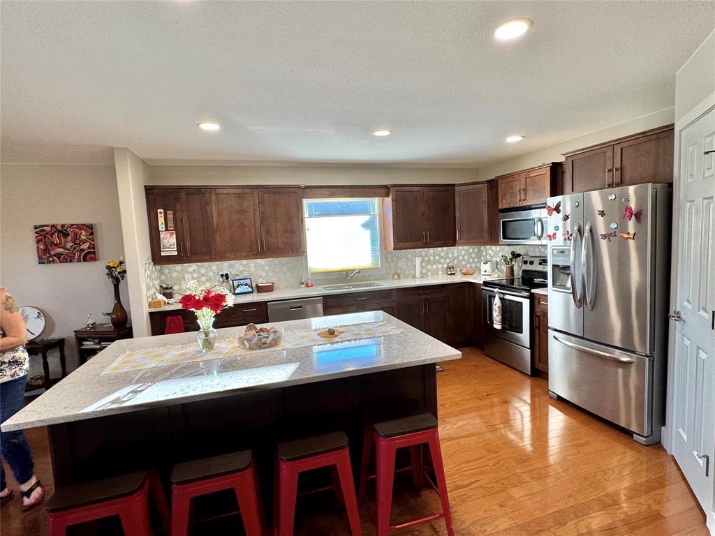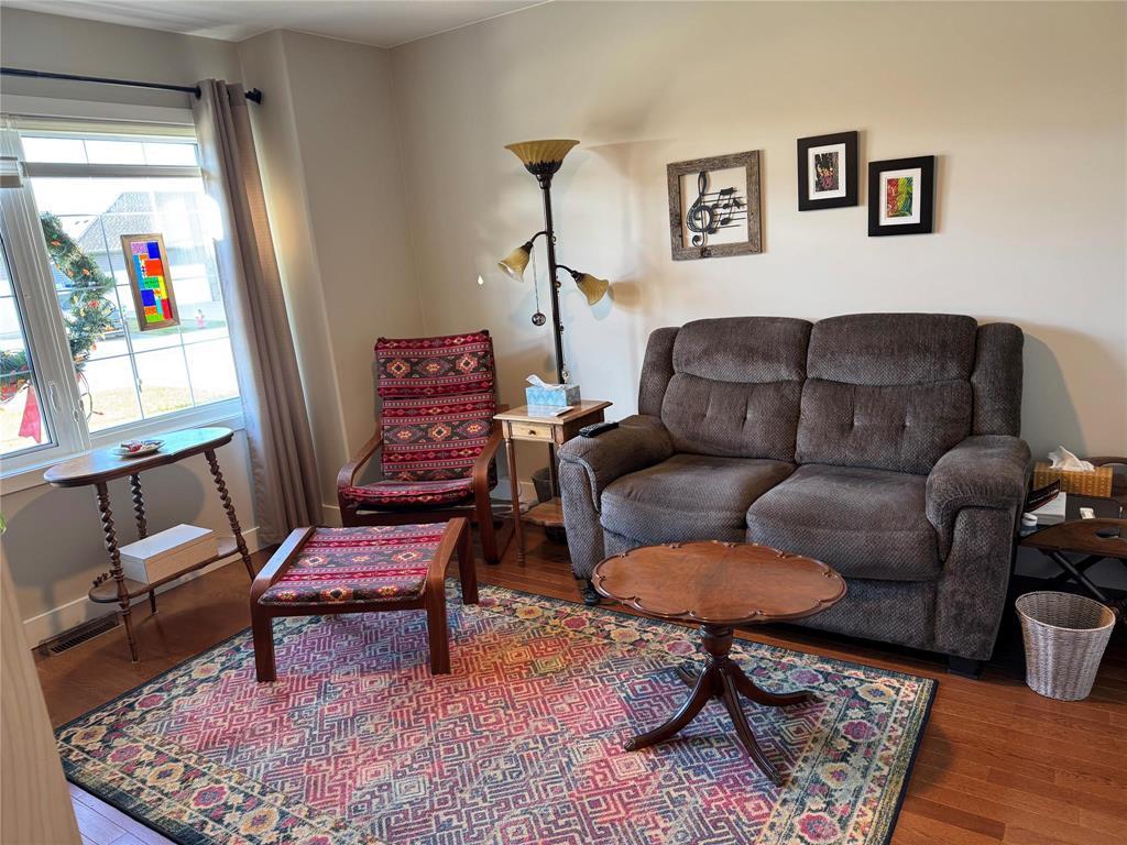R35//Morden/Step into this lovely 1368 sq ft condo designed for comfort and style. The large, open kitchen features a generous island with quartz countertops, stainless steel appliances, and plenty of workspace for cooking and entertaining, along side the ample dining area. The cozy living area offers a warm gas fireplace, perfect for relaxing.With 2 bedrooms on the main floor and an additional bedroom in the fully finished basement, this home provides flexible living options with a large family room and storage room. The home is complete with 3 well-appointed bathrooms, and main floor laundry.Enjoy summer evenings in the 3 season sunroom. This move-in-ready condo combines modern upgrades with a smart layout don t miss your chance to make it yours! (231670063)