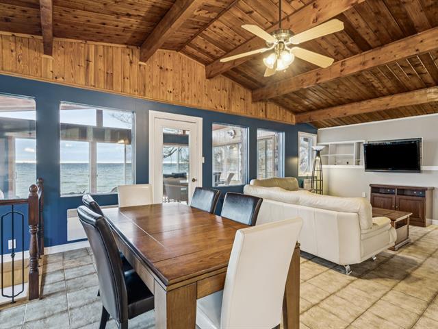 Magnificent property located in a beautiful sandy bay, offering a rustic and warm charm with a wood-burning fireplace and stone chimney, a cathedral ceiling, and spacious open-concept living areas including a kitchen with plenty of storage, a living room, and a dining room. The home also features two bedrooms, two bathrooms, and a four-season veranda with a stunning view of the lake. Outside, a concrete terrace and a treated-wood deck complete the space, along with an included dock--perfect for your watercraft. A peaceful and inviting place for various water sports. All furniture and appliances included. (54464682)