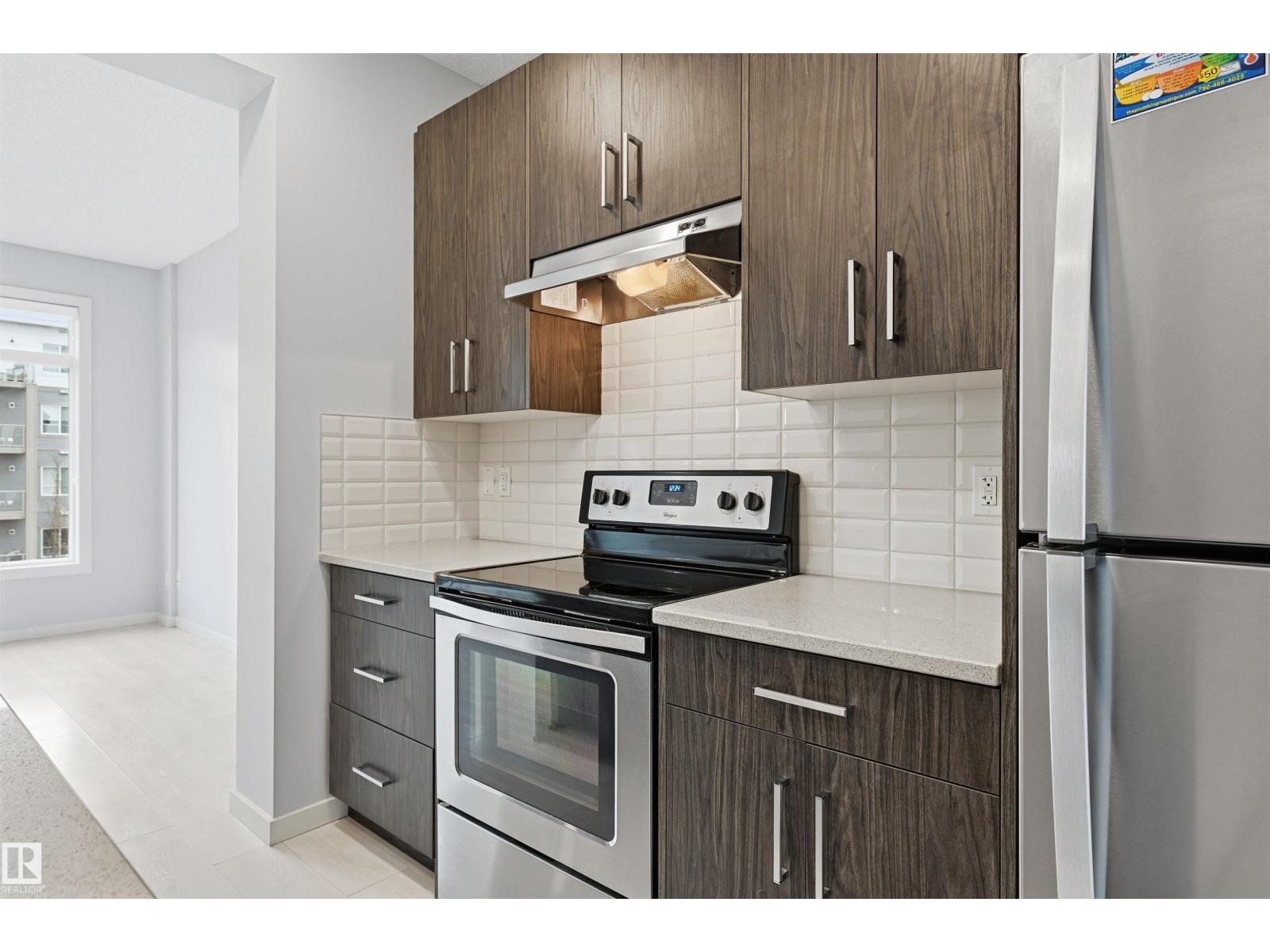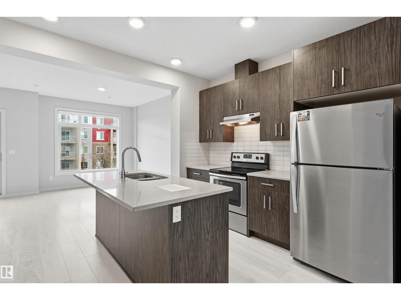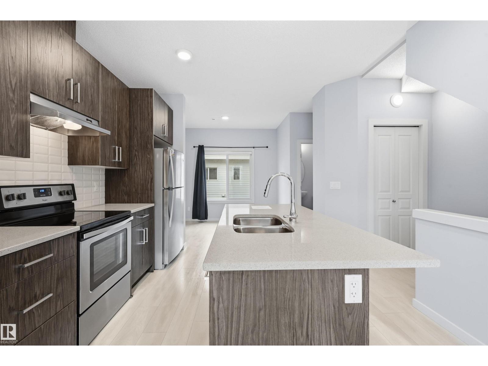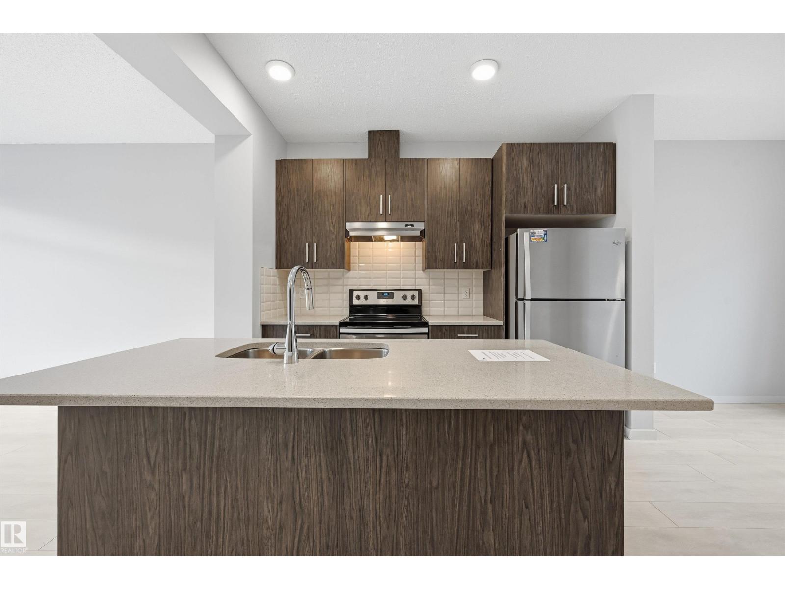 Absolutely stunning and spacious 2 BDR TOWNHOUSE W/ 2 ENSUITES and 2 car tandem garage in desirable Walker! Main floor features 9' ceilings & quality finishings incl quartz counters, wide plank vinyl floors. The functional kitchen has SS appliances, walk-in pantry & generously sized eating bar. Bright living room features a large window & attached balcony to enjoy the fresh air & green space. Upstairs, you'll find two generously sized bedrooms, both with their own full 4-pc bath ensuites and walk in closets - perfect for two roommates or a couple. Energy-efficient mechanical including HRV & tankless hot water for a lower utility bill. This well maintained complex offers visitor parking and nearby walking trails & lake. Excellent location conveniently close to everything you need incl shopping, schools & public transit. Quick access to major routes incl Anthony Henday and Ellerslie Rd (33608104)