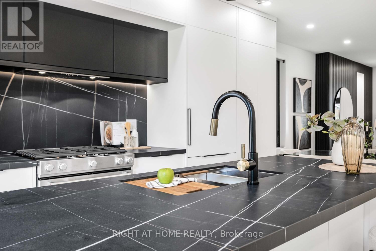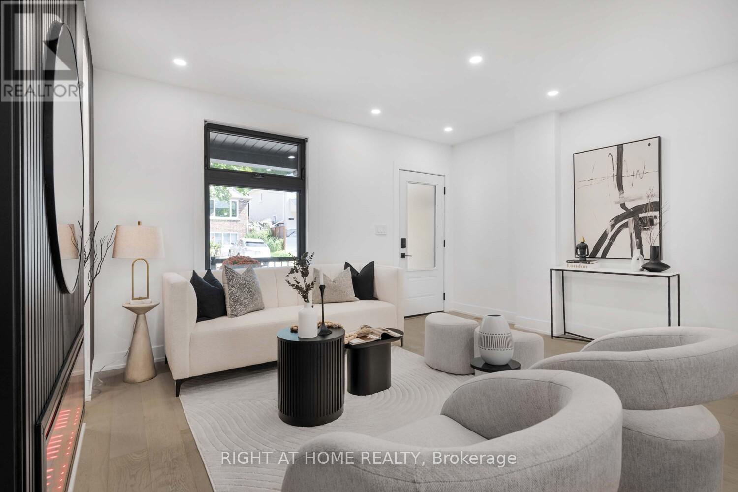 Welcome to this stunning reimagined luxury 2.5-storey residence in the heart of The Beaches. Offering approx. 1,880 sq. ft. of refined living space, this home features 3 spacious bedrooms plus a versatile loft that can serve as a 4th bedroom, 4 beautifully designed bathrooms, and a fully finished walkout basement with its own kitchen. Renovated from top to bottom, this home combines timeless design with modern convenience, showcasing engineered European wide-plank hardwood, refined millwork, sleek matte finishes, and a striking feature wall with an elongated fireplace. The custom chefs kitchen showcases Italian Sahara slab counters with an oversized waterfall island, Fulgor Milano & KitchenAid appliances, and designer lighting ideal for entertaining. Dramatic 10-ft sliding doors open to a landscaped backyard oasis with custom deck, interlocking, and stone patio. A private driveway with 2 parking spaces adds rare convenience. Upstairs, bright bedrooms include custom closets, spa-inspired bathrooms with Italian tile, and a primary suite with a glass shower and brushed-gold fixtures, while a second-floor laundry enhances daily living. With all-new mechanicals including a new furnace, 200-amp service, plumbing, waterproofing, and smart-home features, this turnkey home provides peace of mind. Steps to Queen St., Kew Gardens, and top schools including Williamson Rd. (French Immersion), and less than a 10-minute walk to sandy beaches and the boardwalks that define this lifestyle. (41722225)