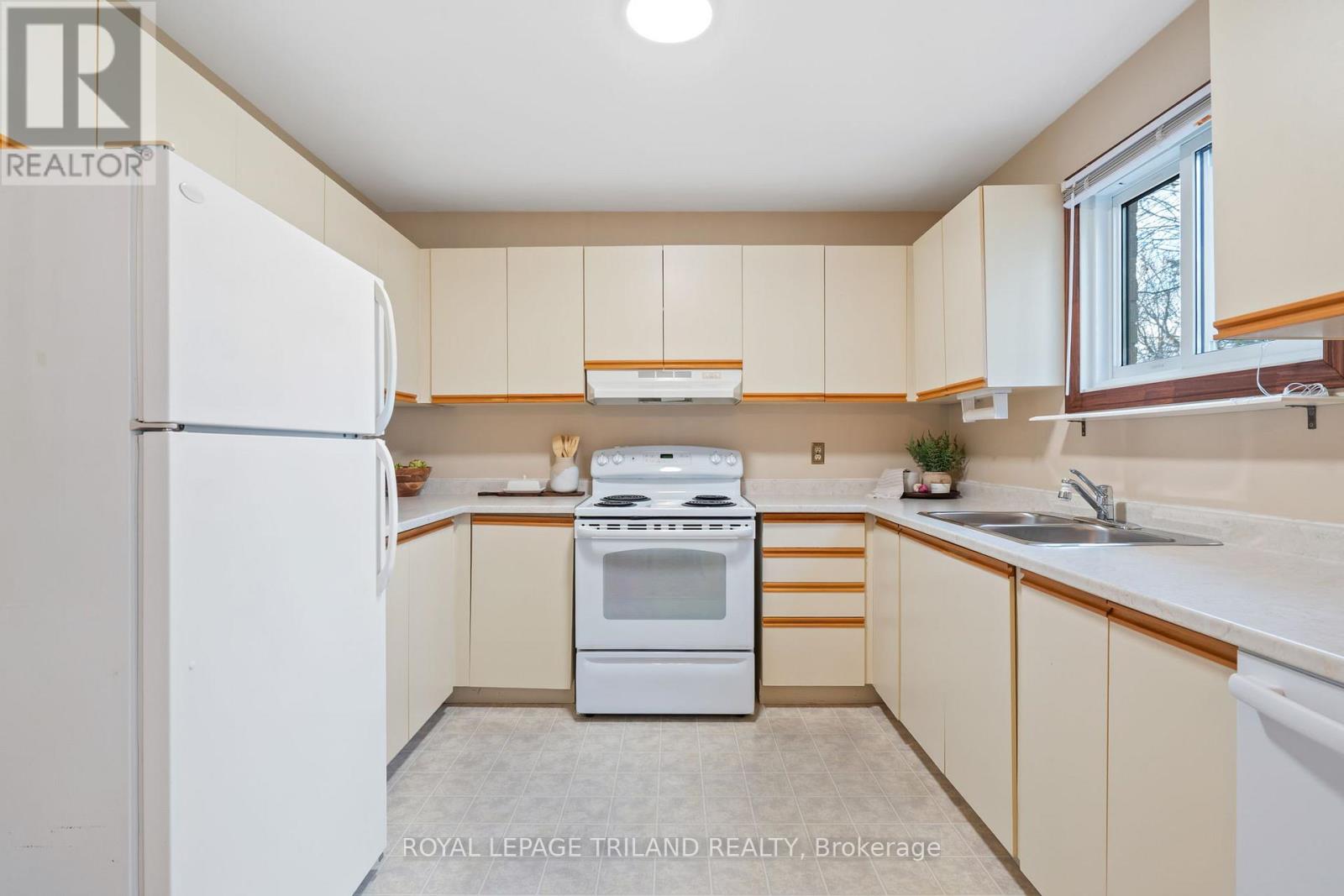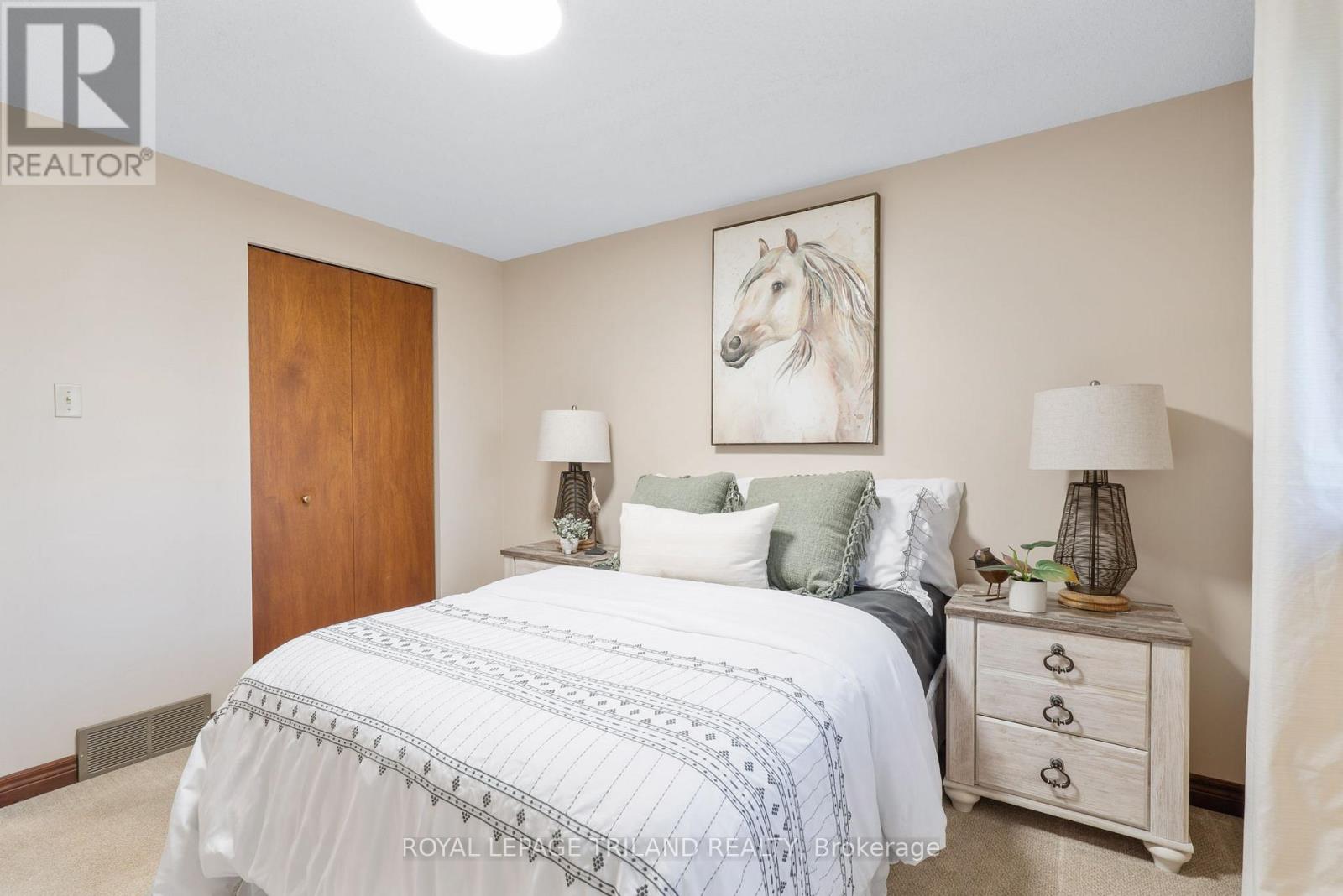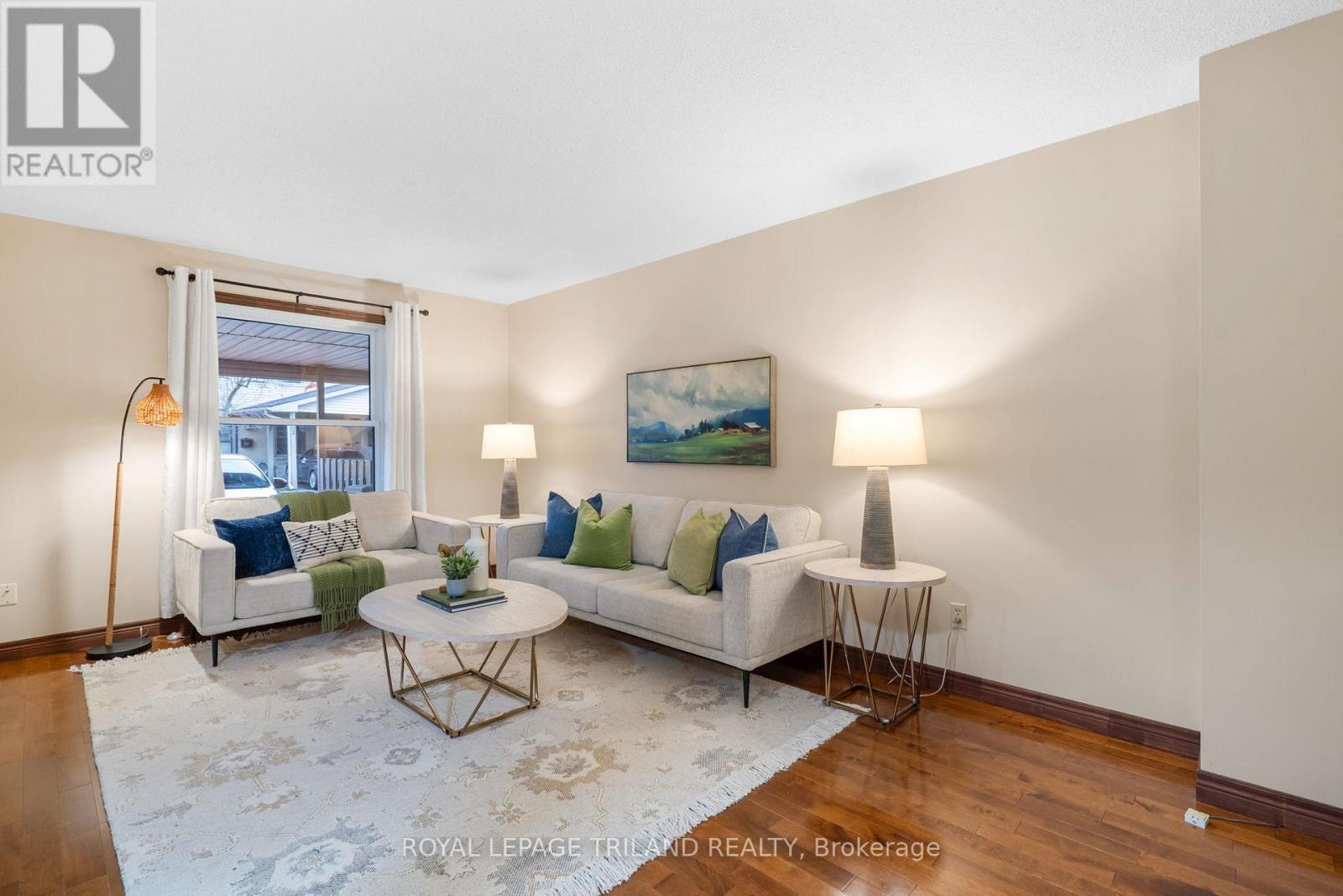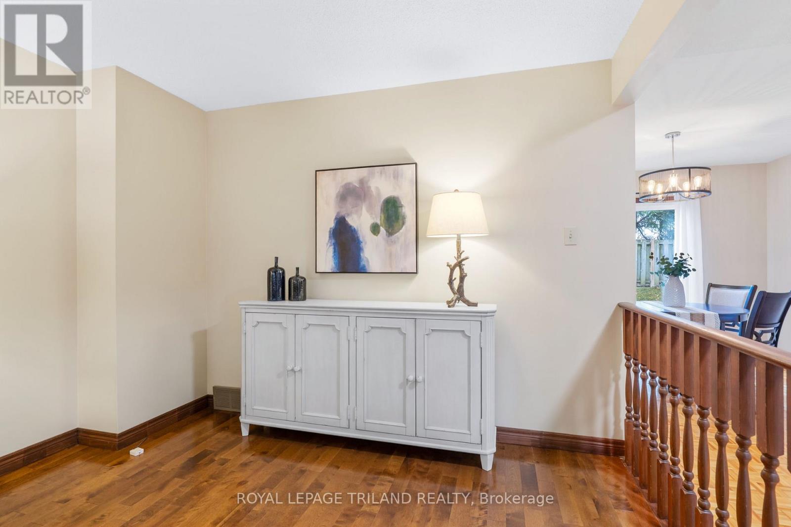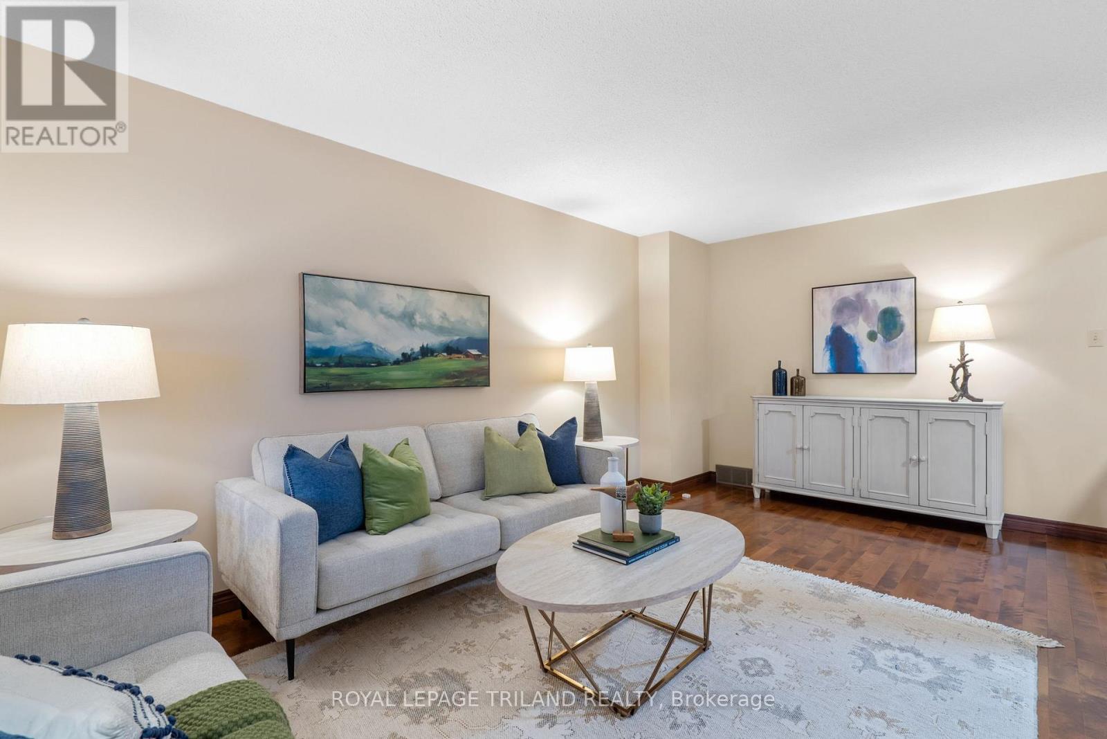 Welcome to Carriage Park Estates! This spacious 3-bedroom townhome offers incredible value for first-time buyers, downsizers, or investors, featuring a carport and low condo fees. The main floor provides a large living area, 2-piece bath, and a kitchen/dining space with sliding doors to a private, fenced patio overlooking greenspace. Upstairs, find three generously sized bedrooms, including the primary with double closets and ensuite access to the main 4-piece bath. The finished basement adds a large rec room, laundry, and utility/storage space. 2025 upgrades include: new heat pump, full interior painting, new lighting throughout, new hardwood (living room), new carpet (basement stairs), new laminate (rec room). This well-managed complex is ideally located in Northeast London, just minutes from Masonville Mall, Fanshawe College, parks, schools, shopping, public transit, and 401 access. (41722754)