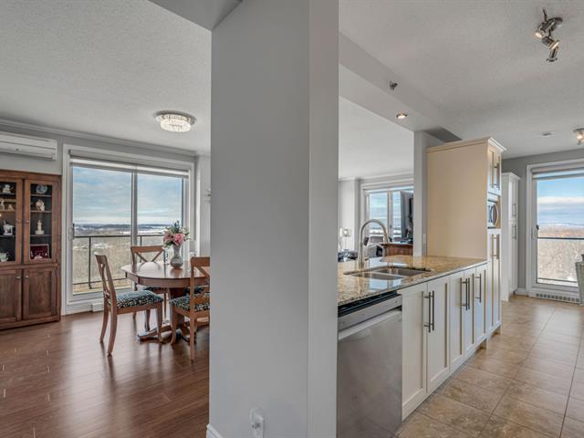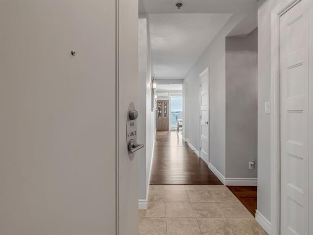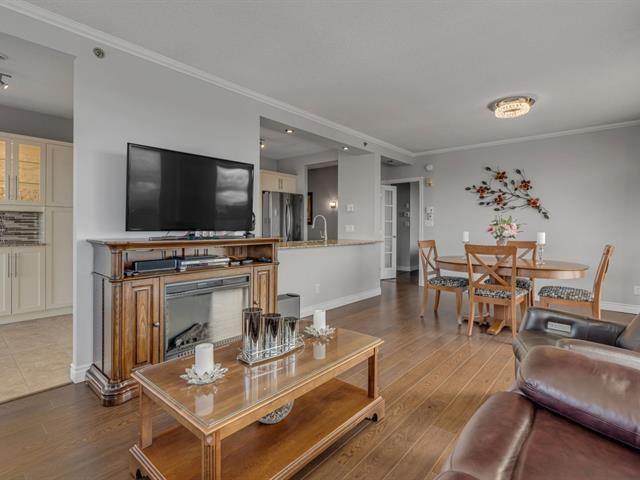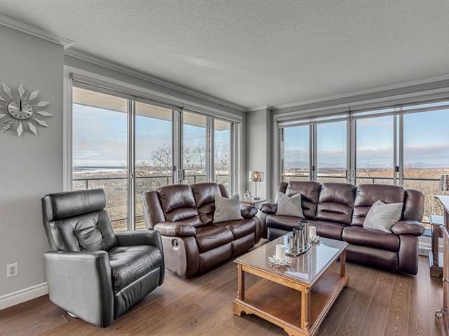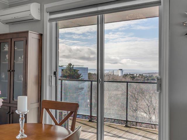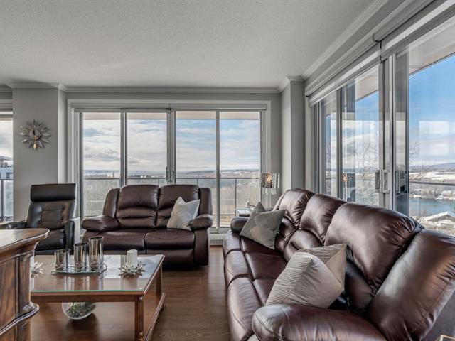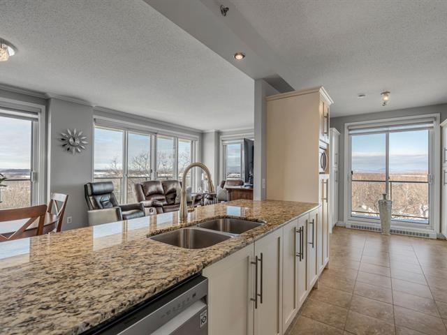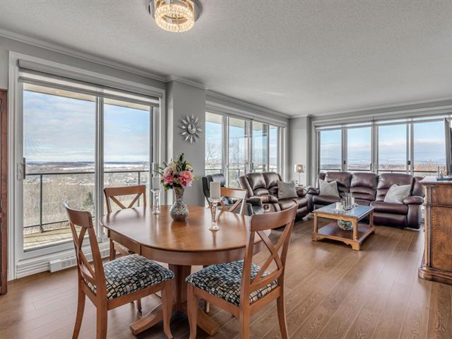 Magnifique unité de coin située au 6e étage, offrant une vue panoramique sur le fleuve et le lac Saint-Augustin. Elle comprend trois chambres de belles dimensions, dont une chambre principale avec salle de bains attenante et vue sur le fleuve, ainsi qu'une deuxième salle de bains complète.Vous profiterez d'un vaste espace de vie à aire ouverte incluant une cuisine moderne avec îlot central. Le balcon privé, orienté à l'ouest, permet d'admirer l'eau et les couchers de soleil. L'unité donne accès à deux stationnements intérieurs dans le garage souterrain, en plus des commodités suivantes : piscine, golf virtuel, terrasse, salle de jeux et gym. (53825496)