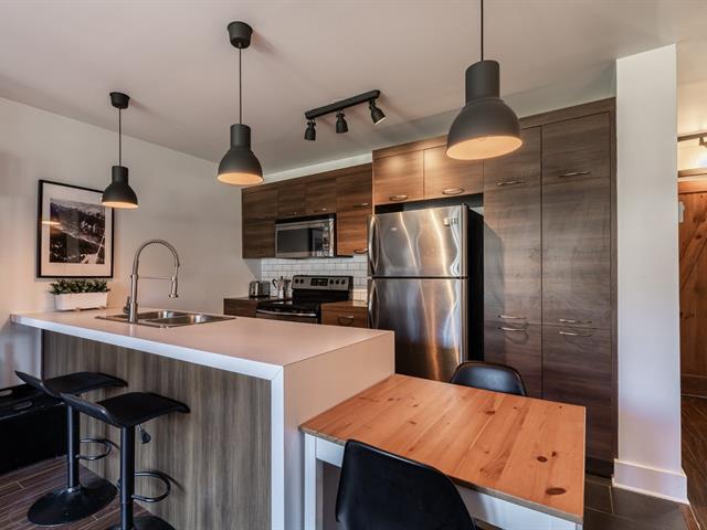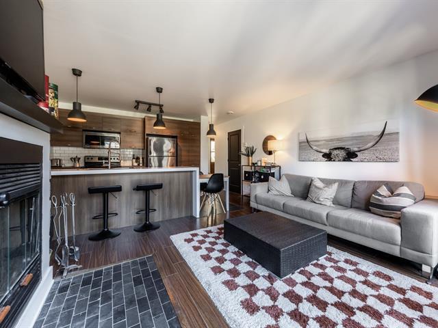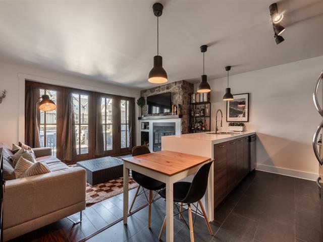 Magnifique condo vendu entièrement meublé. Espaces de vie à aire ouverte, grande cuisine toute équipée avec îlot central, salon avec foyer au bois, grand mur fenêtre assurant un maximum de luminosité avec vue directe sur le jardin et la piscine creusée, immense terrasse en pavé-uni de 13x10 pieds, 2 espaces de stationnement, espace rangement, copropriété en santé et bien gérée. À proximité de la montagne de ski Bromont, des sentiers pédestres, de la piste cyclable, de l'épicerie, SAQ, terrain de tennis, golf, des restaurants etc. À NE PAS MANQUER! FAITES VITE! (45962534)