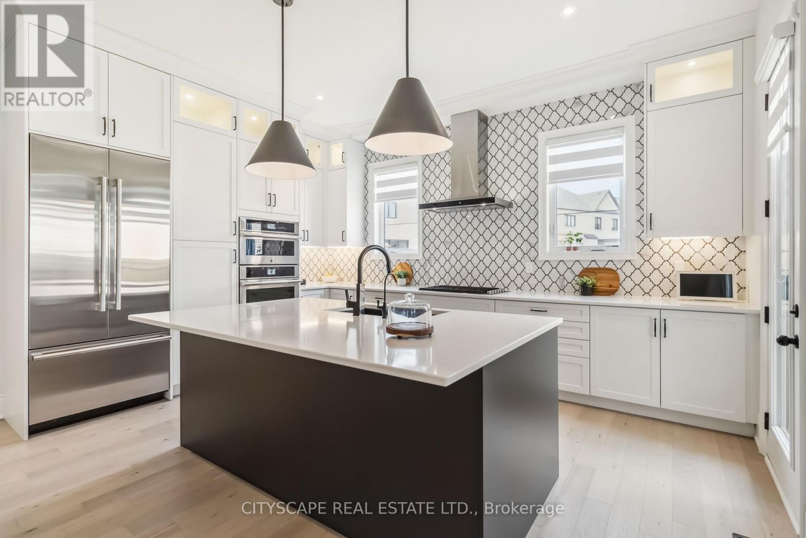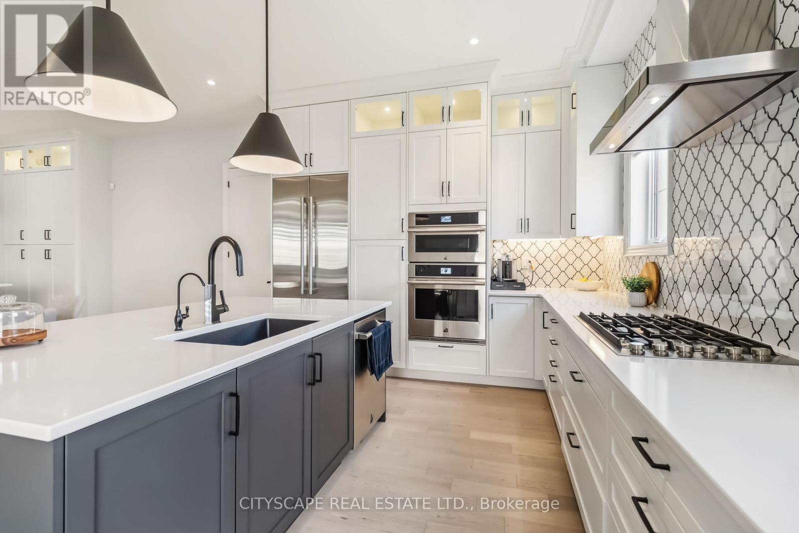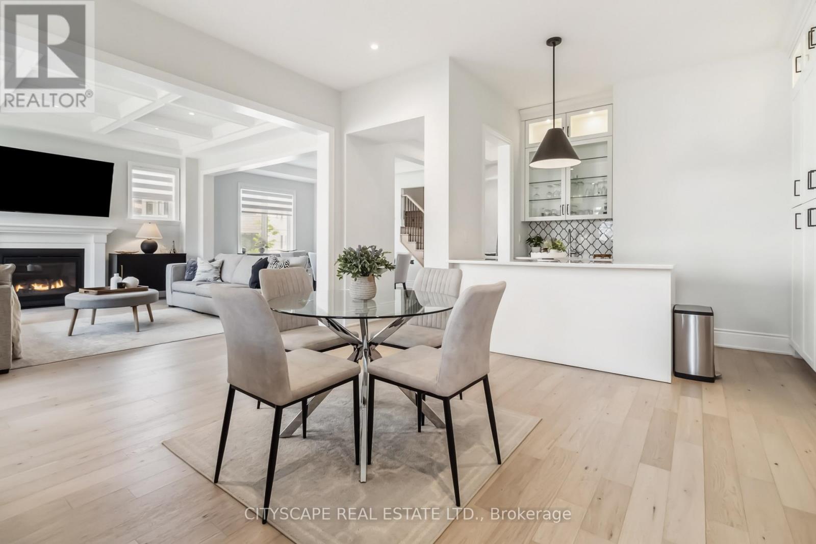 Welcome to Glen Abbey Encore - Where Your Fairytale Begins. Step into luxury with this exquisite executive Vanderbilt model by Hallet Homes- a 5-bedroom, 5-bathroom stone and brick masterpiece. Boasting 3,590 sq. ft. of elegant living space (excluding the basement) and situated on a premium reverse pie-shaped lot with a 105-ft wide frontage, this residence is as rare as it is refined. Ideally located near top-ranked, provincially recognized schools, this home is perfectly suited for growing families. Over $150,000 in upgrades elevate every corner of this property, starting with a grand entrance that leads to an open-concept main floor-ideal for entertaining. Enjoy a gourmet chef's kitchen featuring Cambria quartz countertops, built-in Jenn Air appliances, and an expansive eat-in area. The main level also includes a formal dining room, a dedicated office, and a richly appointed wine room, all adorned with elegant wainscoting, pot lights, gleaming hardwood floors, and fireplaces that bring warmth and character. Large sliding patio doors flood the space with natural light, seamlessly connecting the interior to the outdoors. A 3-car garage with a Tesla EV charger adds both convenience and modern efficiency. Nestled on a quiet, forest-facing street, this home offers the perfect balance of tranquility and accessibility, with easy access to major highways and the scenic 14 Mile Creek Trail. A rare blend of sophistication, functionality, and family-friendly living-this home is truly a dream come true. (41727784)