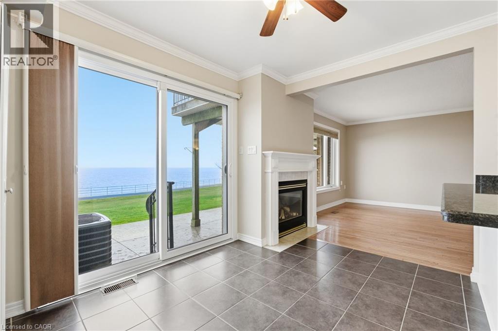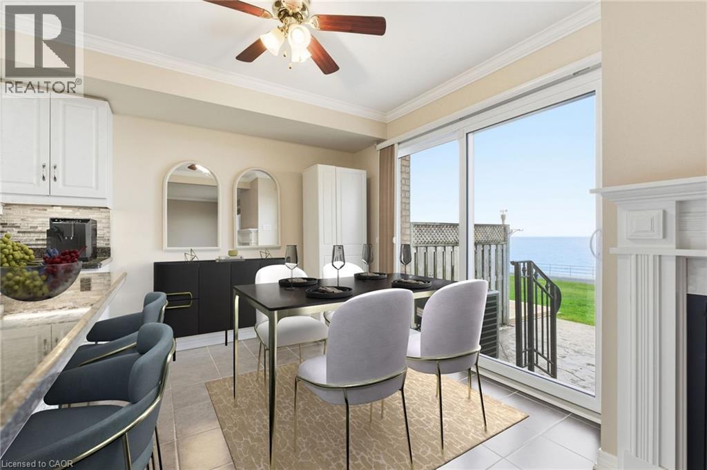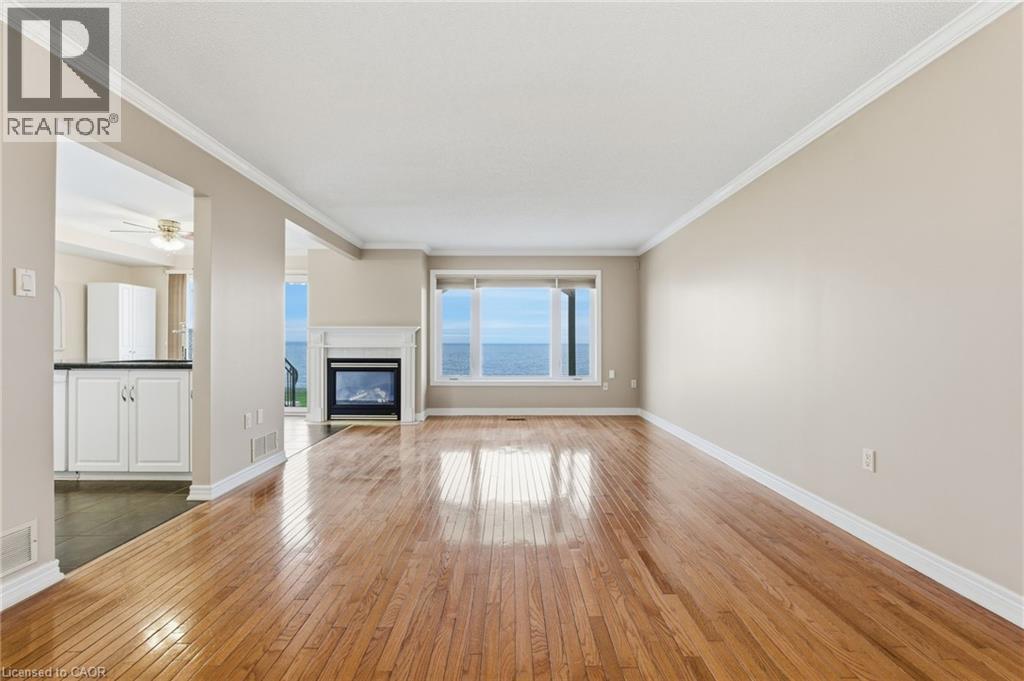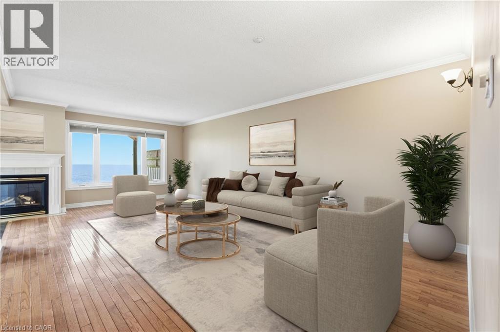 Waterfront, sunsets, beautiful breezes & unobstructed Toronto skyline LAKE VIEWS that take your breath away! Unique bungalow 2 bd, 2.5 bath main lvl condo in SEASIDE VILLAGE, perfect for folks who need low maintenance lifestyle but don’t want to compromise on size style or comfort. A redesigned floor plan features expanded primary KING-SIZE suite on main level w/ensuite incl step-in tub w/jets & convenient hand-held shower.If desired this expanded master suite can be returned to original design to include a master bdrm PLUSden/office with a simple & inexpensive remodel of the space.Gorgeous STRIP HARDWOOD throughout the main level including lliving/dining room with stunning water views & walkout to stamped concrete patio w/greenspace & private community lakeside trail. Fresh & bright kitchen features granite counters,breakfast bar w/white appliances, lovely corner gas fireplace at the heart of it all. New washer and dryer conveniently located in main floor laundry/utility room.A 2nd bdrm is downstairs perfect for guests or extended family w/large walk-in closet & 3 pc ensuite bathroom. The spacious rec room offers LIMITLESS OPPORTUNITY & potential from casual family living to home-gym workout space.You’ll also find abundant storage incl large cold cellar, furnace/utility room, under-the-stairs closet, &workshop w/work bench. This extraordinary home features many upgrades including:new air conditioner('23) high efficiency furnace with humidifier('24)all new windows('22)dishwasher('23) washer/dryer('24) owned hot water heater ('23),auto garage door opener,gas hookup for BBQ on patio,waterproofed exterior underside of deck, covered front porch,beautifully landscaped gardens.There is a separate single car garage with paved driveway for your 2nd vehicle plus convenient visitor parking at the curb.Just minutes from local amenities, parks, schools, waterfront walking trails, Winona Crossings plaza,dining&easy highway access for efficient commute. This home is a rare find. (69929938)