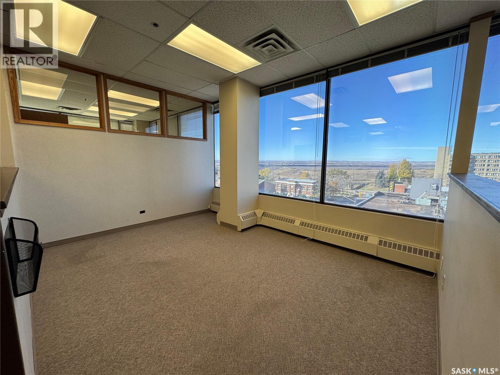 Prime Downtown Office Opportunity – North Battleford’s Most Prestigious Building. Looking to expand or downsize your office space? This space offers approx 1400 SQ FT, 2 Entrances, Amazing View of the river valley, Boardroom, Managers office, Staff room, file room and plenty of additional workspace.. This landmark 8-storey high-rise is perfectly situated on a prominent corner lot in the heart of North Battleford’s downtown core. Share a building with established tenants including RBC Bank, Water Security Agency, and SAMA, this property provides both stability and opportunity. Secure access for staff and customers, Elevator service for convenience, Sprinkler systems throughout for safety. This building stands as a symbol of prestige and professionalism in the city—North Battleford’s premier address for business. Monthly lease rate includes utilities except for phone and internet fees. (29170141)